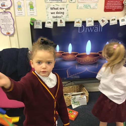 In Music the children have been learning about music from a range of cultural and religious celebrations, including Diwali and Hanukkah. We enjoyed dancing with streamers to Diwali music and playing traditional Jewish instruments.