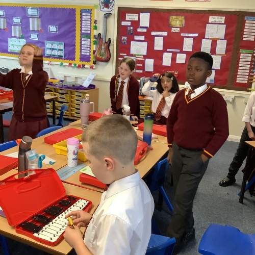The children in year 5, learnt about chords and how they are structured from different pitches of sound. They then used this information to learn the first line of the 12-bar blues.