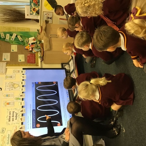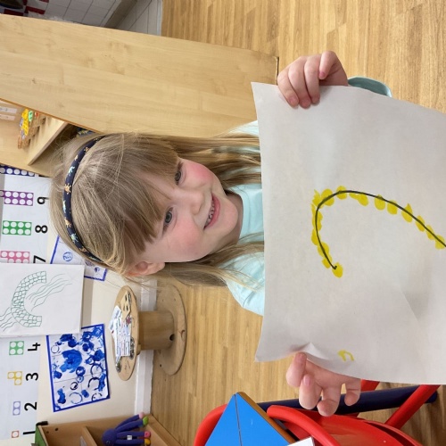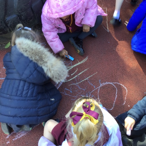The nursery children have been exploring mark making through movement! They created a special dance, moving up and down, and side to side and then turned their wonderful wiggles into colourful squiggles on card and using chalk outside. A fantastic way to develop their early writing skills!