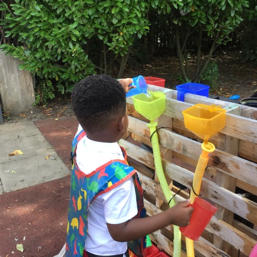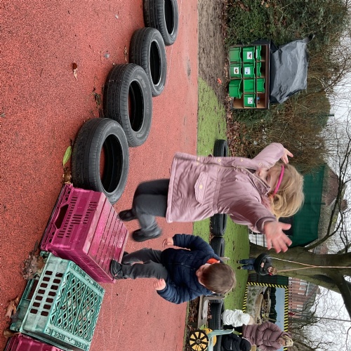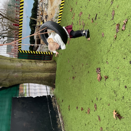 The nursery children enjoy developing their gross motor skills in the outdoor area. They love using the swing, balancing on planks and stilts, and jumping from crates. The children also enjoy moving around the space in lots of different ways, building confidence, coordination, and strength through active play.