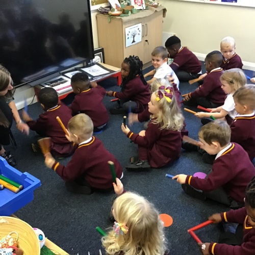 As part of their Phase 1 Phonics learning, the nursery children have been exploring instrumental sounds. They’ve enjoyed discovering the names of different instruments and learning how to play them. The children also had great fun experimenting with playing loudly and quietly, developing their listening and sound discrimination skills along the way.