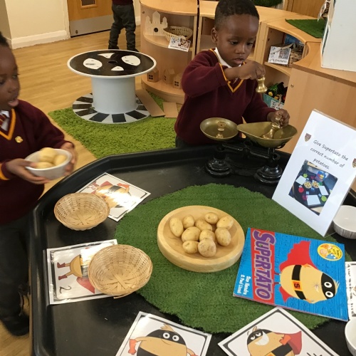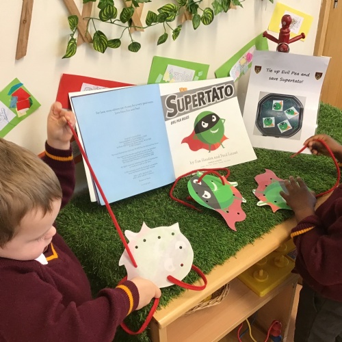 The children have been thoroughly enjoying our class text Supertato! They’ve responded to the story in lots of creative and exciting ways. The children used their imaginations to draw Supertato and Evil Pea. There was lots of laughter as the children took part in catching and tying up Evil Pea, just like in the story. The children made their own peas out of playdough and completed lots of other Supertato activities too.