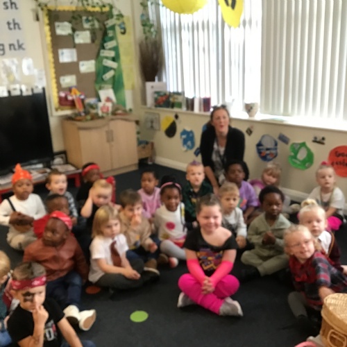 Nursery children have had a fantastic time taking part in our whole school TT Rockstars Day!
