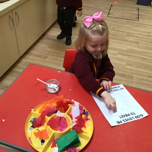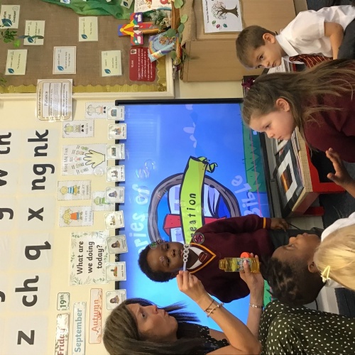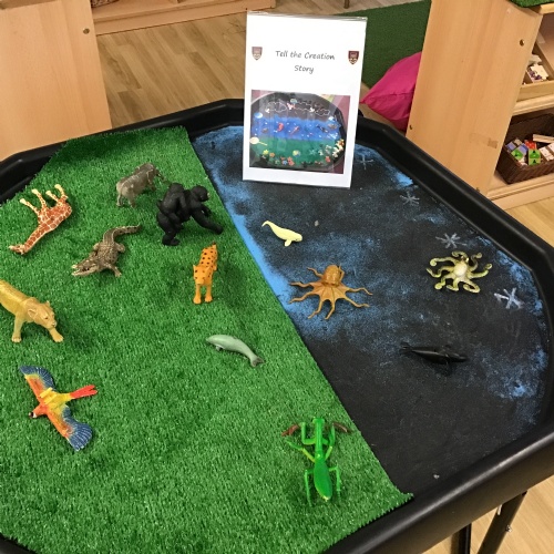 The children have been listening to the story of Creation and how God made our world and everything in it. They have learnt that God made each of them and knows all their names. The children decorated their names and remembered that their names are special. They sent 'Bubble Prayers' to God to say thank you for the things he has created.