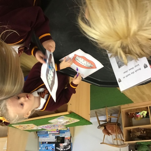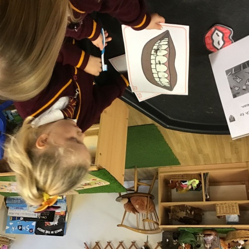 The nursery children have been learning that our bodies are good and we need to look after them. We have been talking about keeping healthy and the importance of looking after our teeth and visiting the dentist.