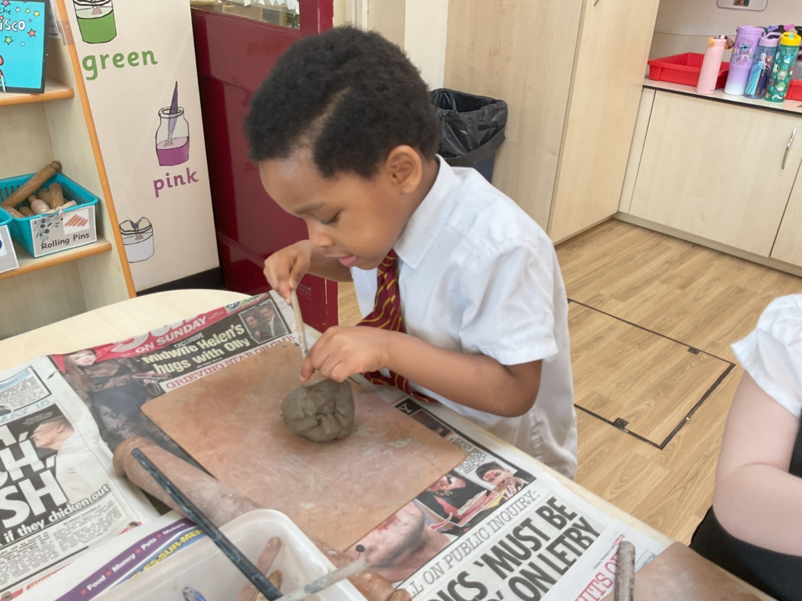 The children in the nursery have been busy exploring clay and playdough, discovering their different textures and properties through hands-on play. They have particularly enjoyed spending time at our clay station, where they have been squeezing, rolling, shaping and moulding the clay to create their own wonderful models. The children have also loved taking part in Dough Disco.