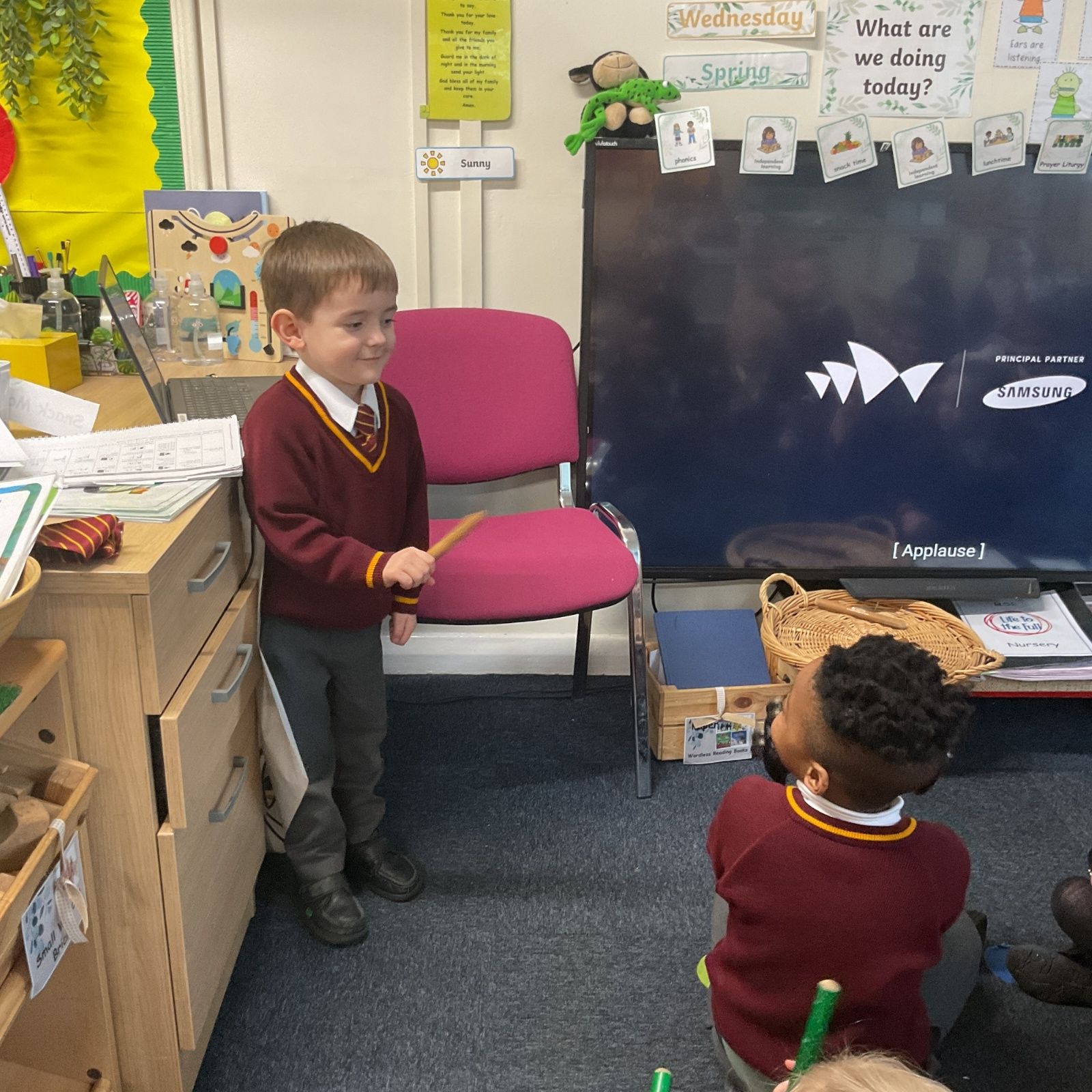 The children have also been learning about what an orchestra is and the different roles within it. To bring this learning to life, we created our very own class orchestra, with one child taking on the role of conductor.