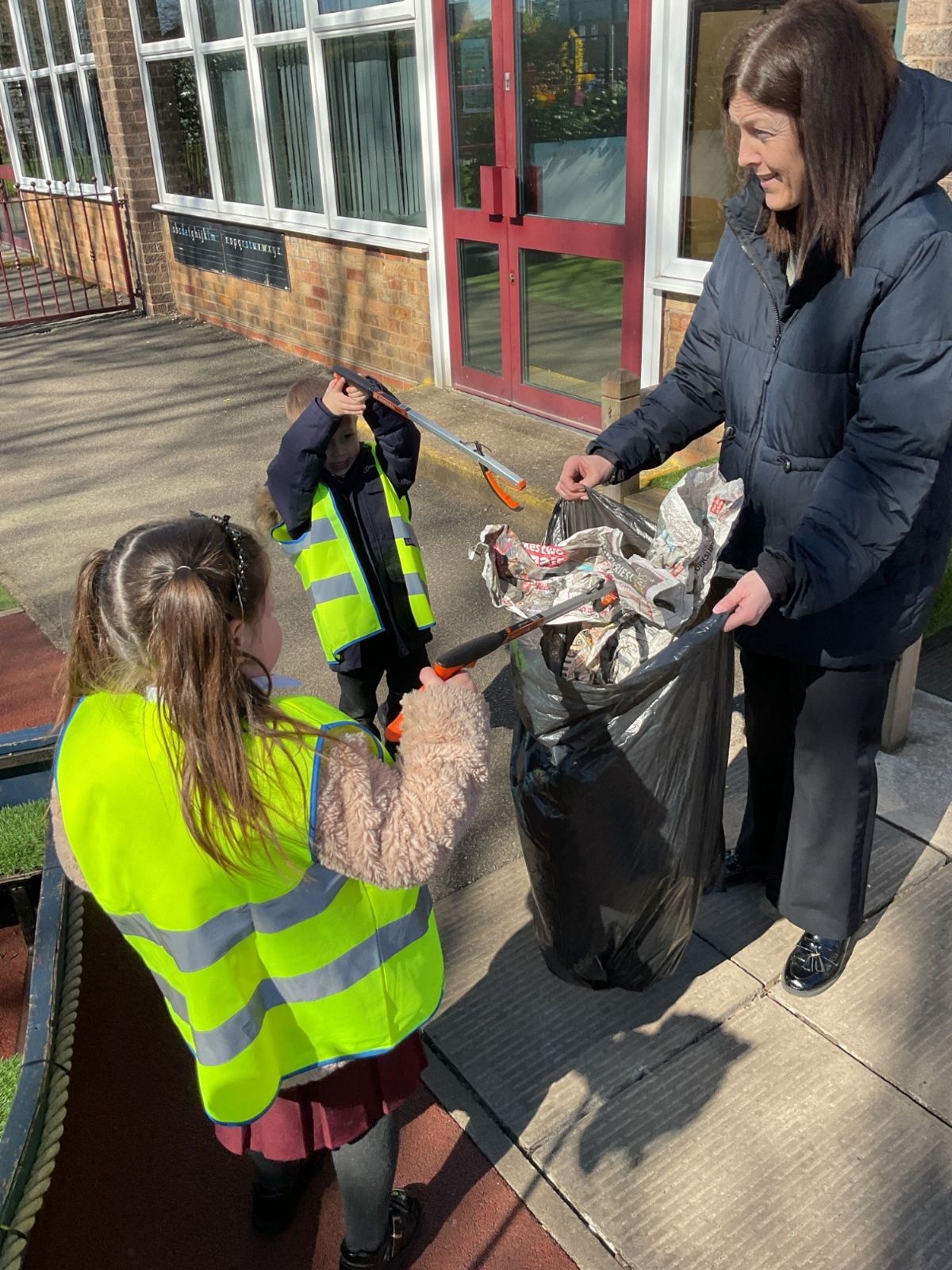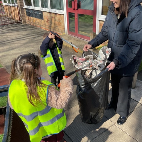 The nursery children were very enthusiastic about taking part in the Great Big School Clean. Before heading outside, we practised using litter pickers, which helped to develop our fine motor skills. The children then worked together to collect litter in the outdoor area, successfully filling an entire bin bag with rubbish. It was a fantastic team effort, and our outdoor space looks much cleaner and more enjoyable as a result.