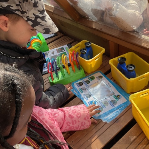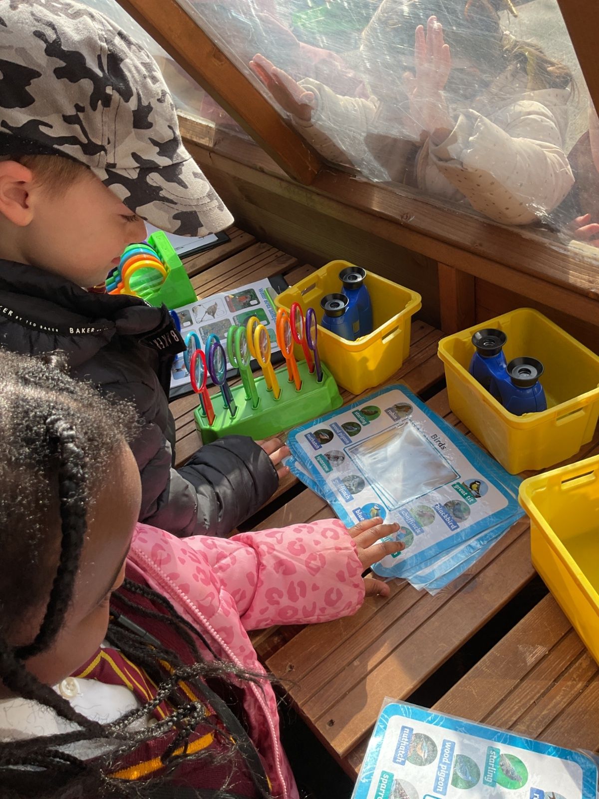 The nursery children have really enjoyed taking part in the Big Schools’ Birdwatch. They learnt about some of the different birds we might see and talked about how to spot them. The children made their own binoculars and had lots of fun using them to look out for birds in the outdoor area, developing their curiosity about the natural world.