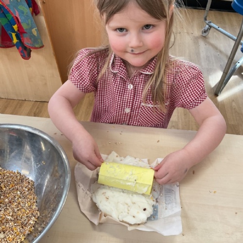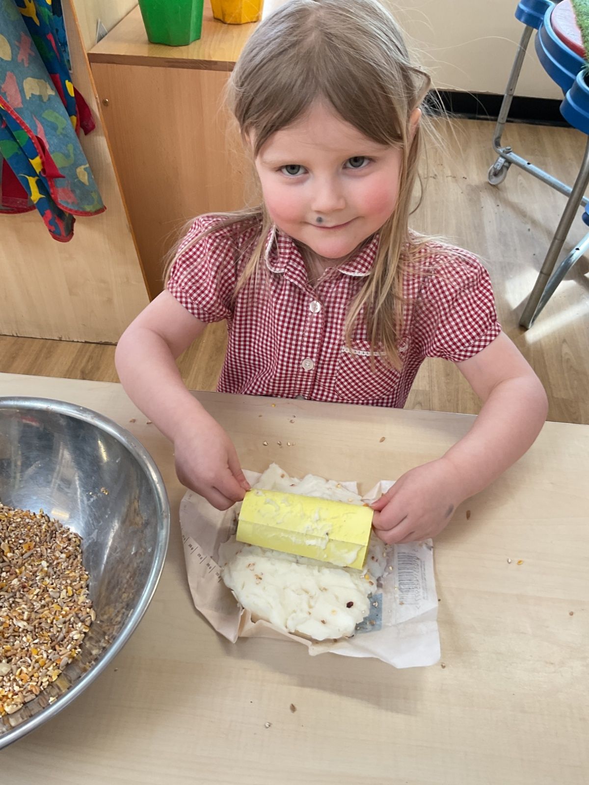 The children at nursery have been busy creating a welcoming space for wildlife in their outdoor area. They were excited to explore their new bird hut and worked together to make bird feeders to hang outside. The children showed great enthusiasm and curiosity as they prepared for their feathered visitors.