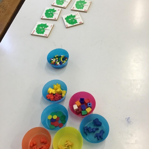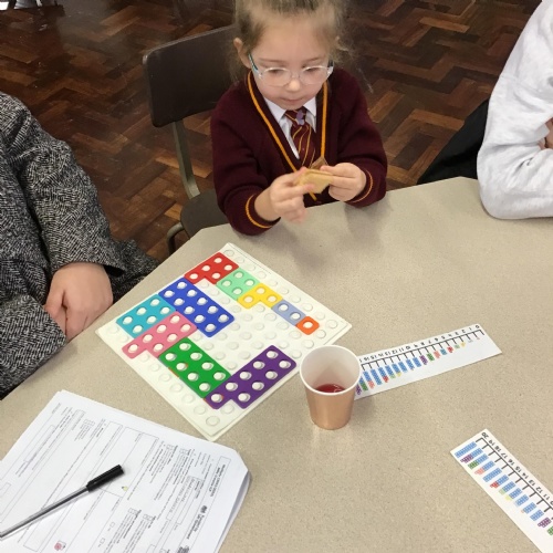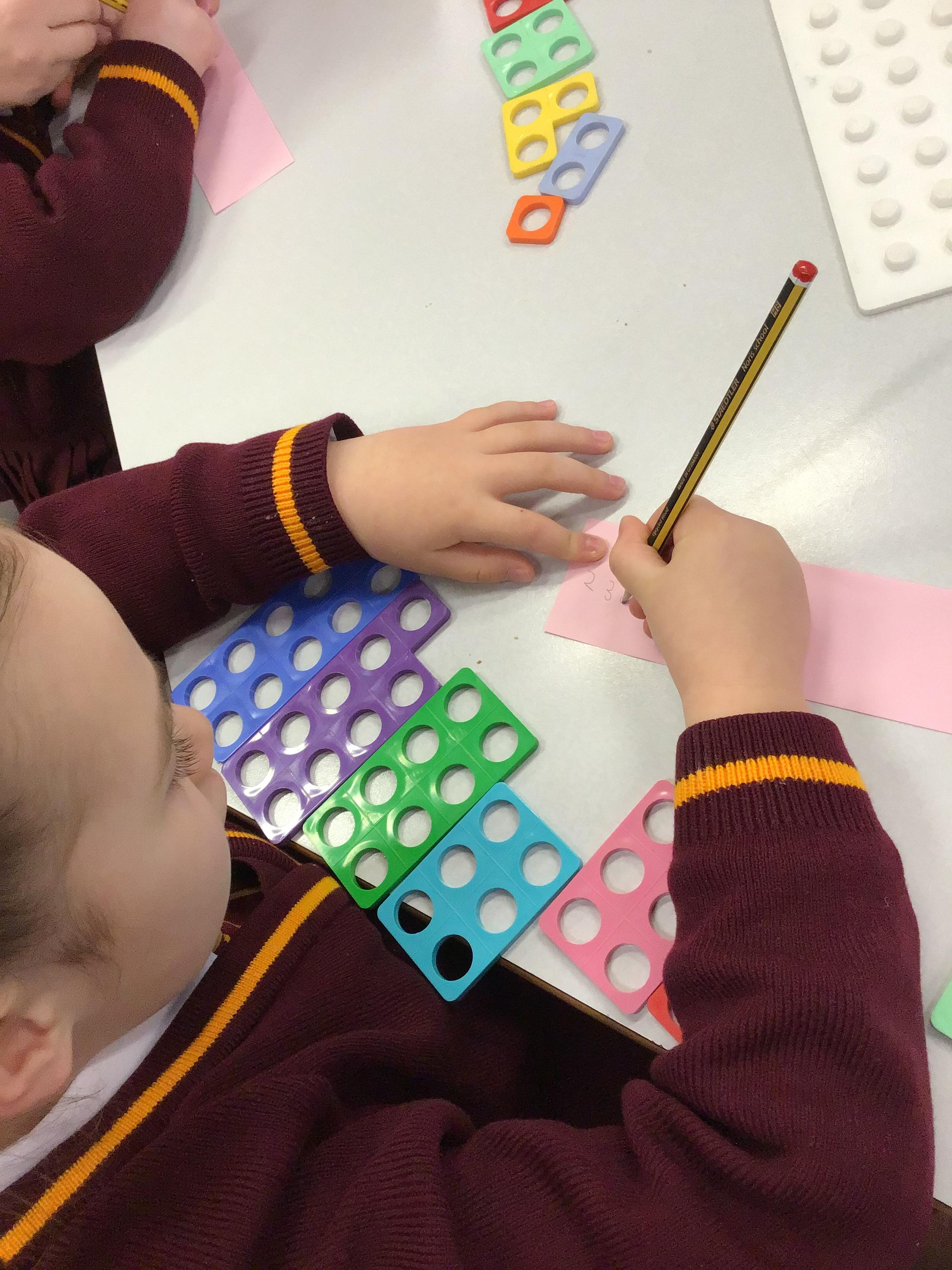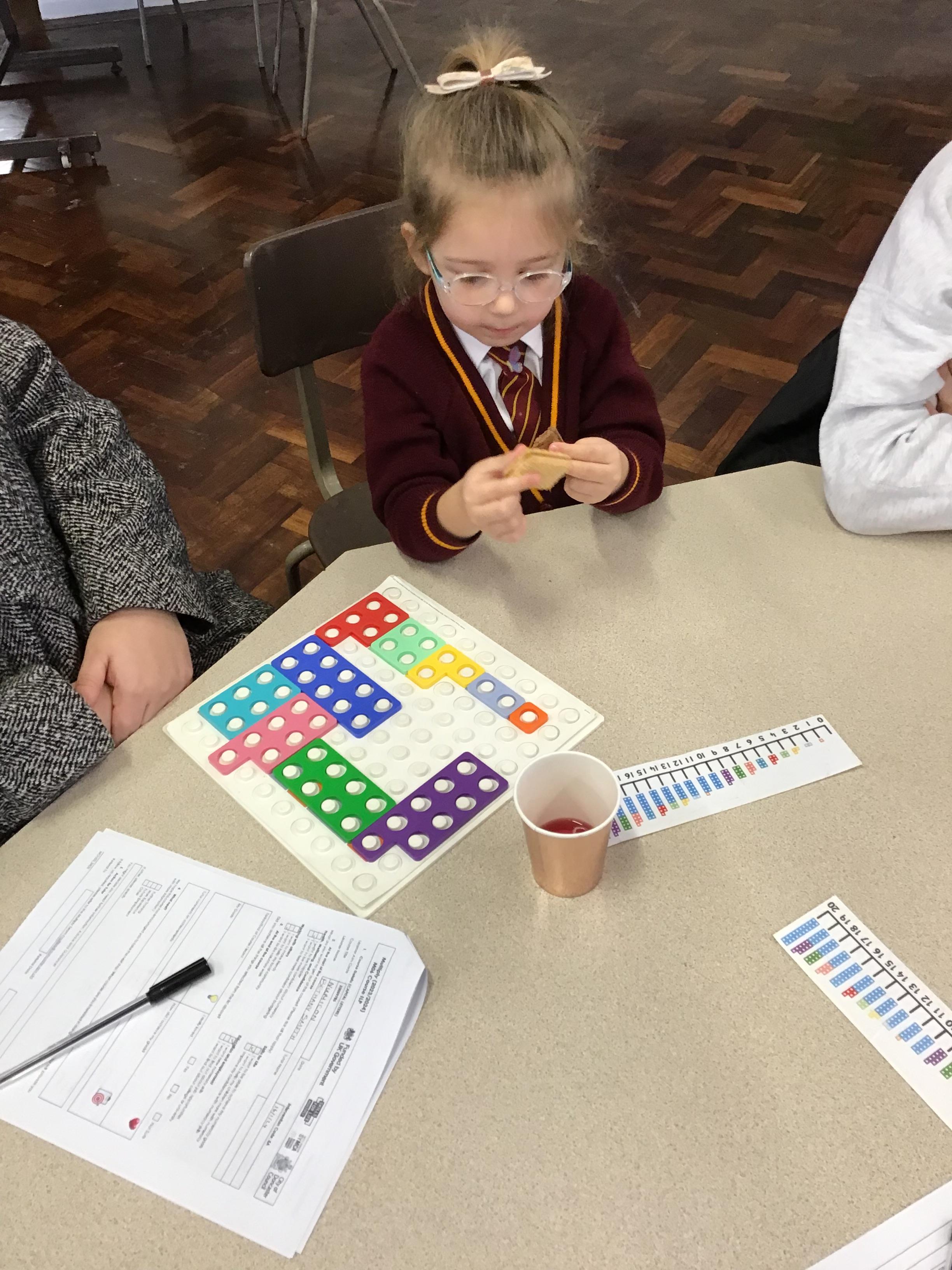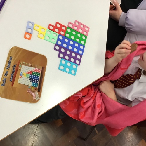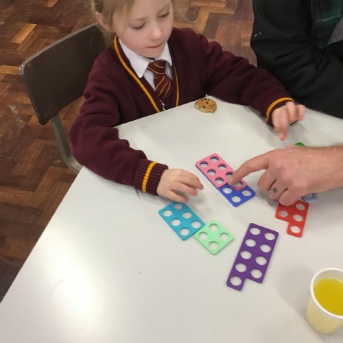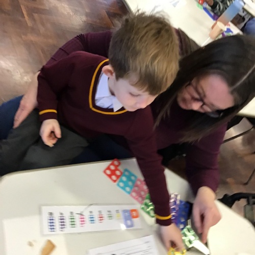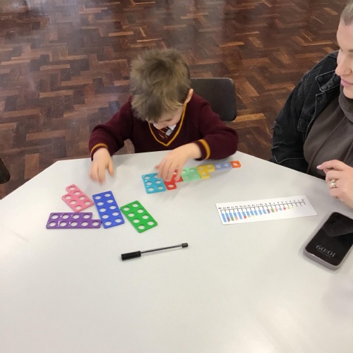 Matching Numicon shapes to a Numicon number line.