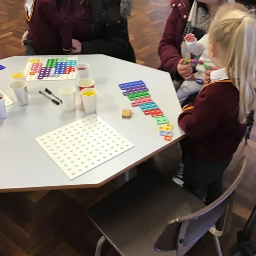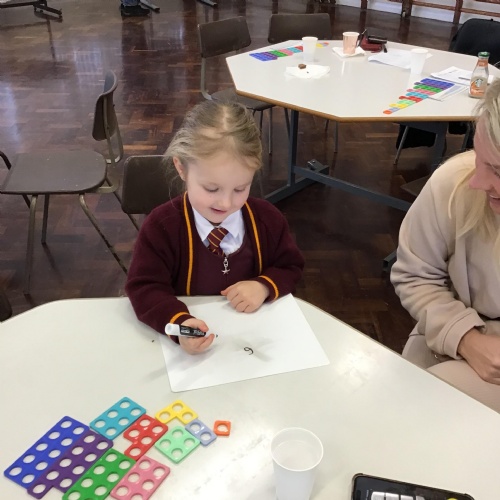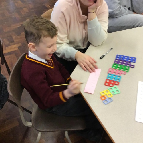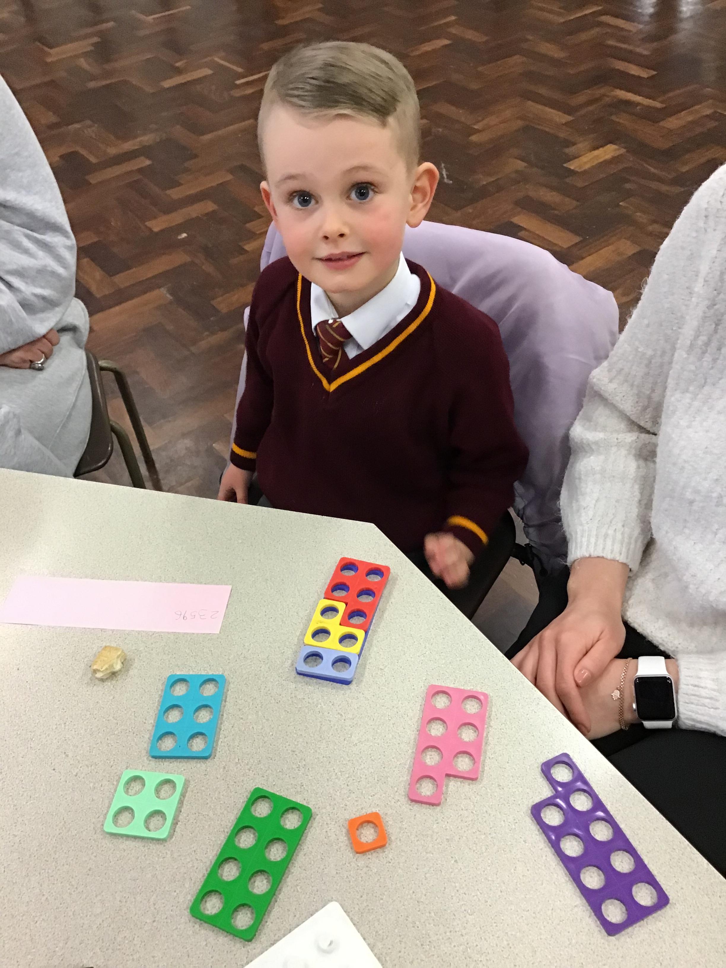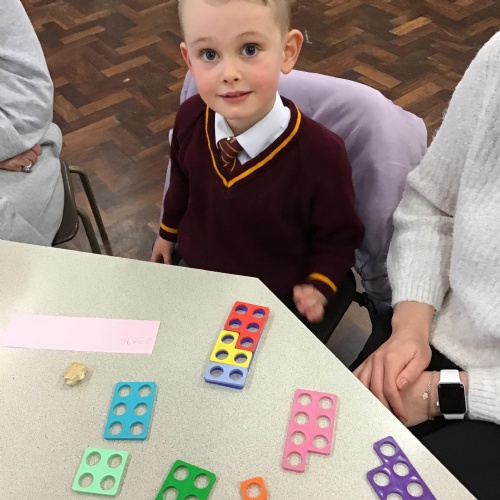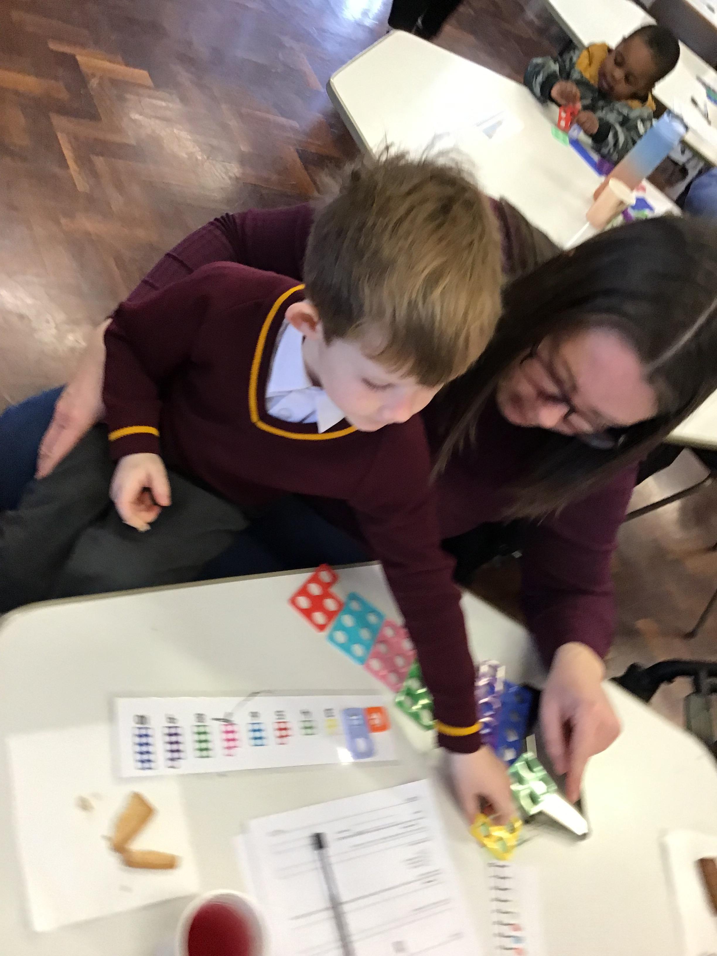 This second maths session was all about matching Numicon shapes to numerals, combining, equivalence, pattern and generalising and using Numicon to add. All the children worked extremely hard and completed some really tuff challenges.