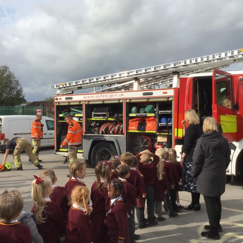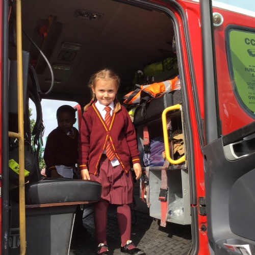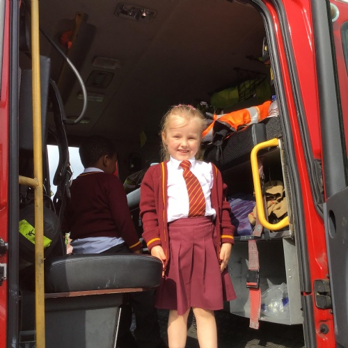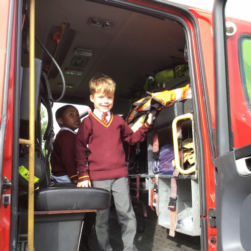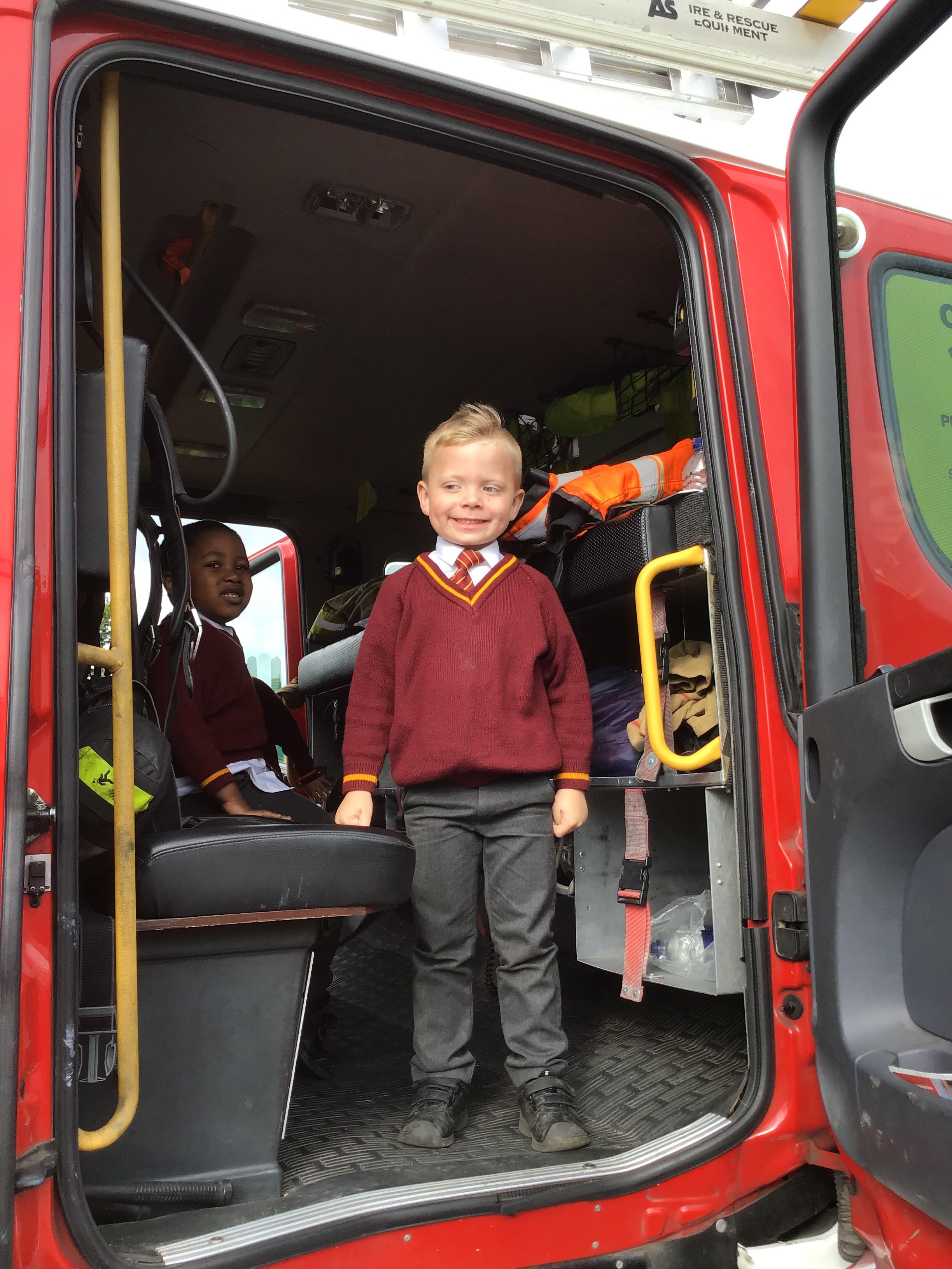 Fire Fighters came to the rescue of a stranded cat on top of a neighboring roof and stayed to share their experience and expertise with the children in EYFS.