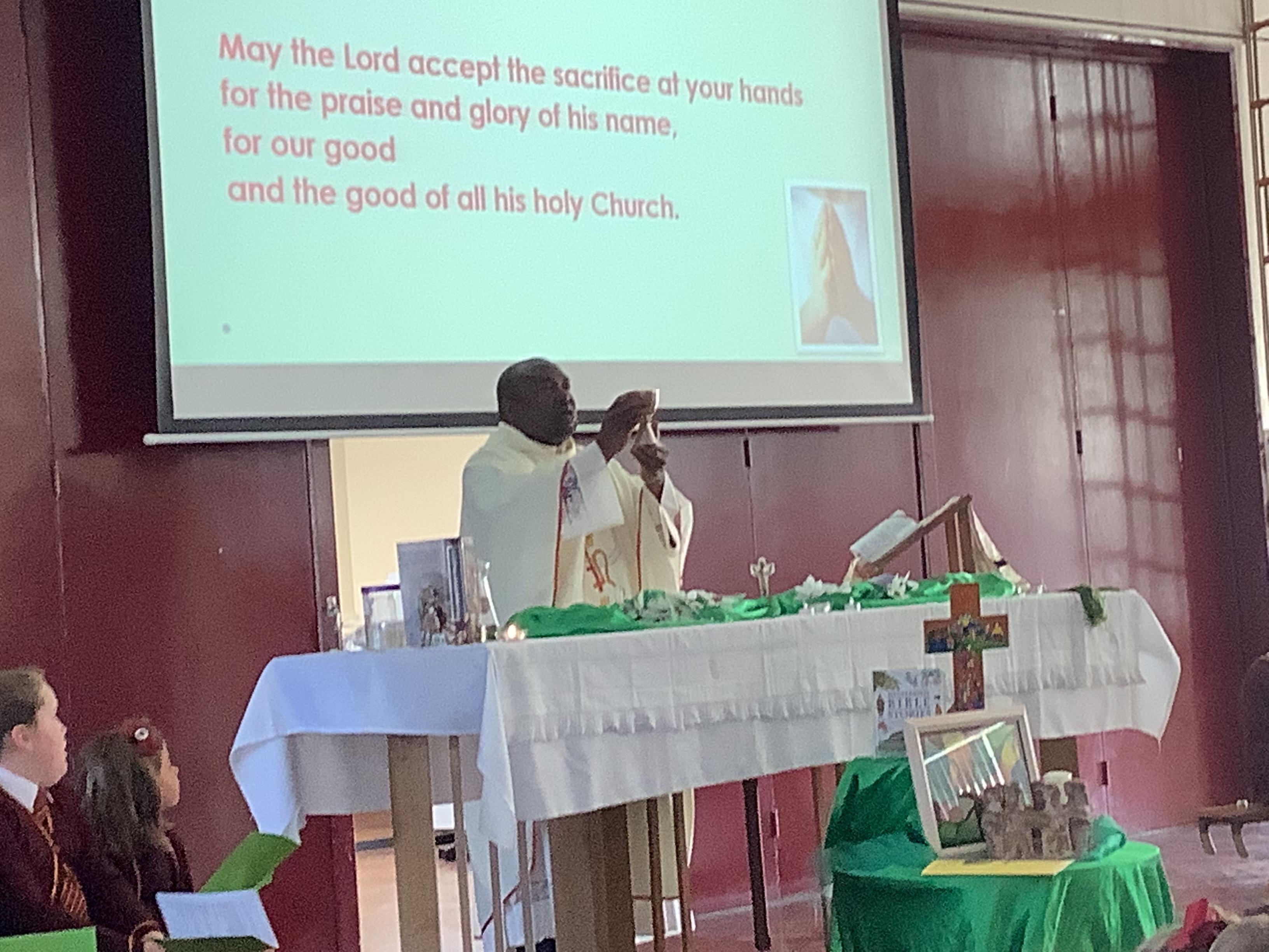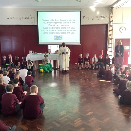 To celebrate the return to school, children and staff took part in a welcome mass led by Father Joseph.