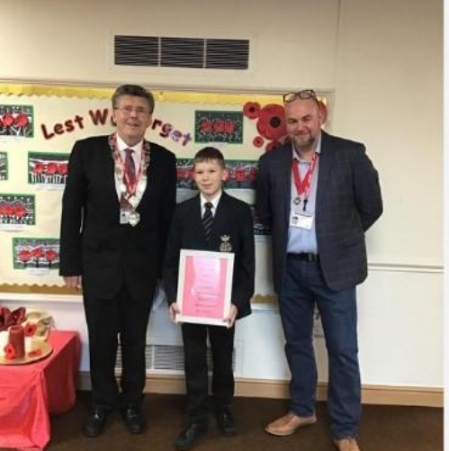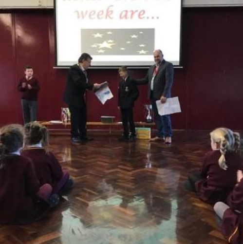 A past Holy Family student was recently invited back to school to attend a our weekly celebration assembly to receive a very special award from the mayor and deputy mayor of Stainforth. The award was given in recognition of the positive contribution that was made to the lives of those that live locally, by designing plans with a view to improve the land use in the local area. We were all very proud of this wonderful achievement!