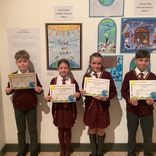 Well done to the members of Year 5 and 6 who took part in this year's Earth Day art competition. Out of all the schools in Doncaster, the art work our children created was chosen to be placed in an exhibition at Doncaster Museum, Art Gallery and Library with other winners.