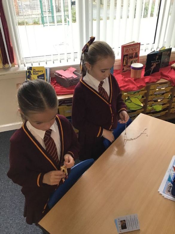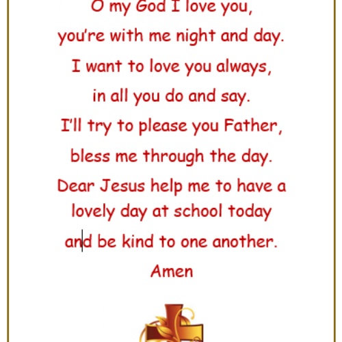 At our school, children are taught traditional Catholic prayers which start with the Sign of the Cross. These prayers include the Our Father, Hail Mary and the Glory Be. Whether we are celebrating or asking for help, we understand how to connect with God.