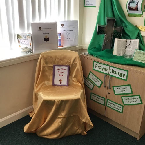 Provision is differentiated across key stages. Younger pupils are guided through simple, structured prayers with visual symbols and repetitive responses. In Key Stage 2, children take increasing responsibility for preparing elements of worship, including writing prayers and selecting Scripture. In Upper Key Stage 2, pupils plan and lead prayer and liturgy more independently, demonstrating deeper theological understanding and reflective response.