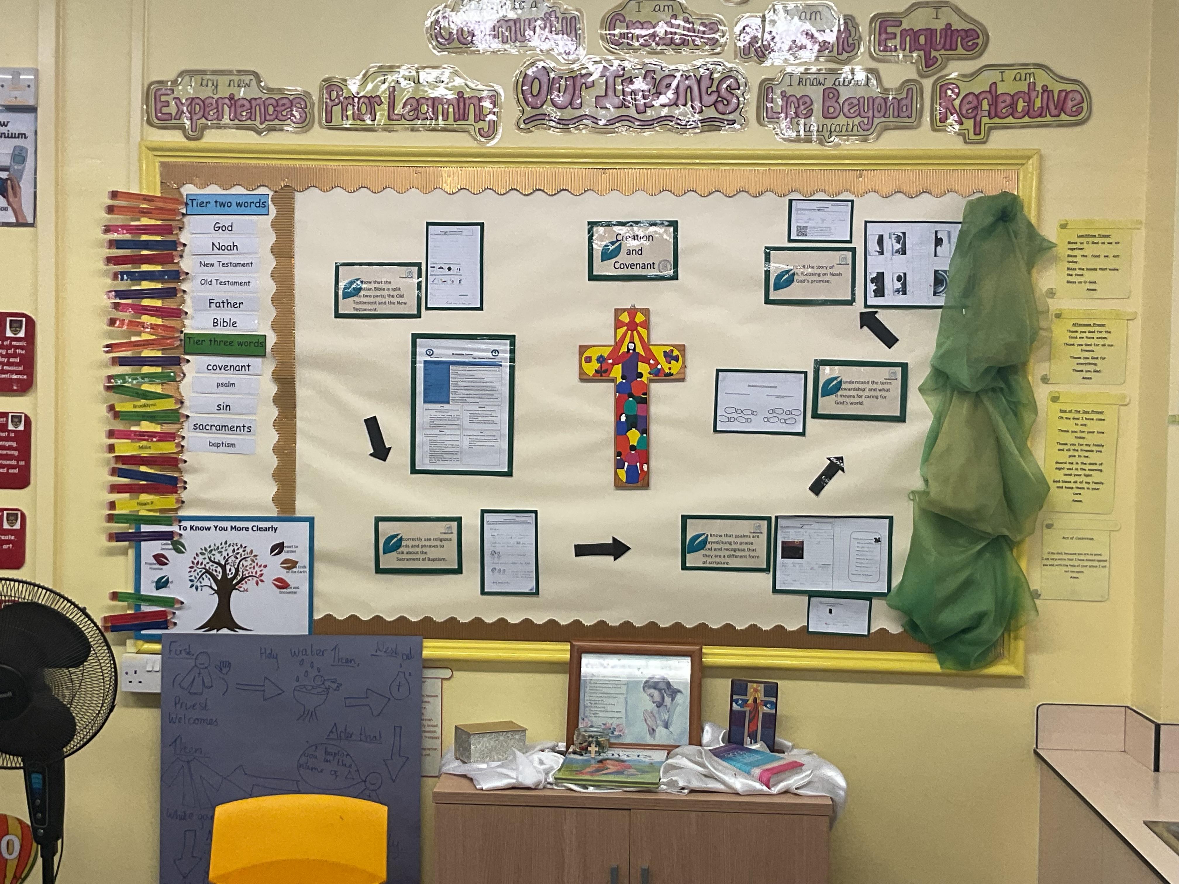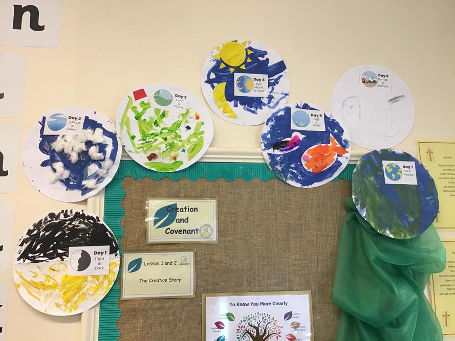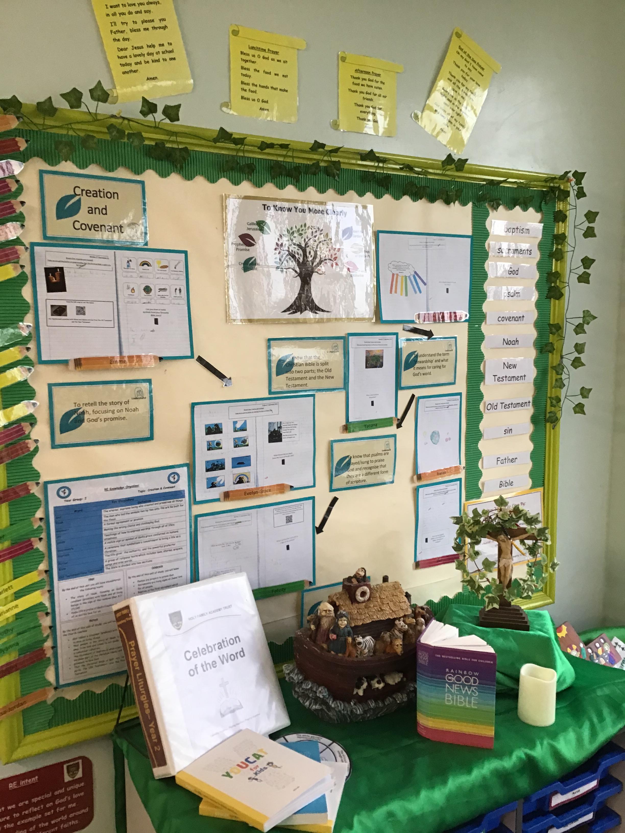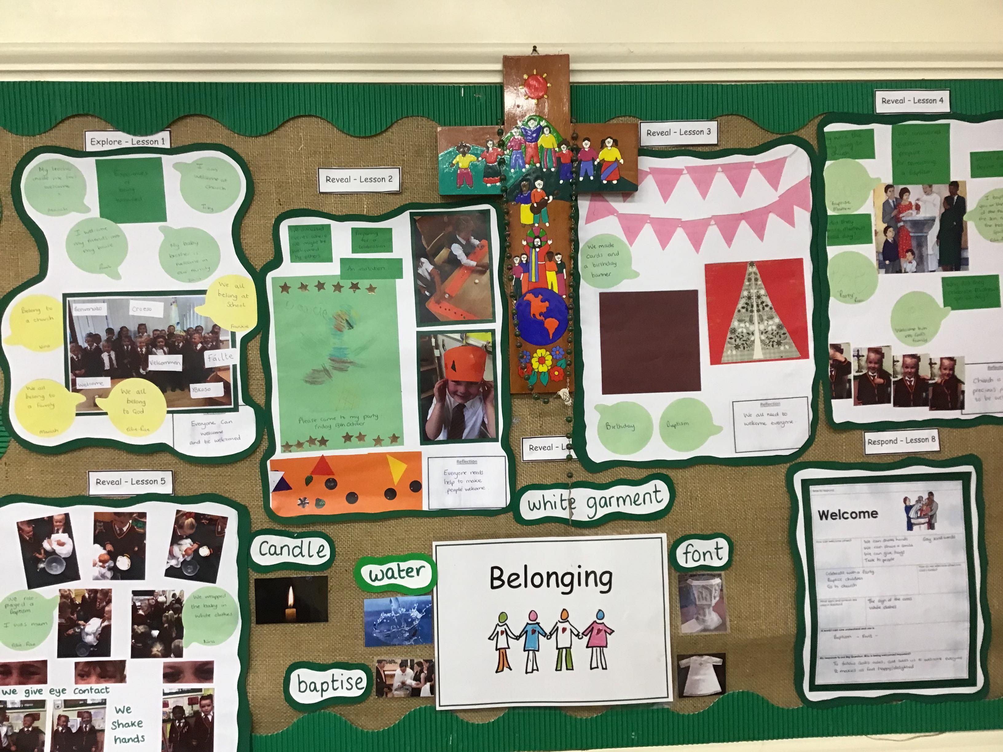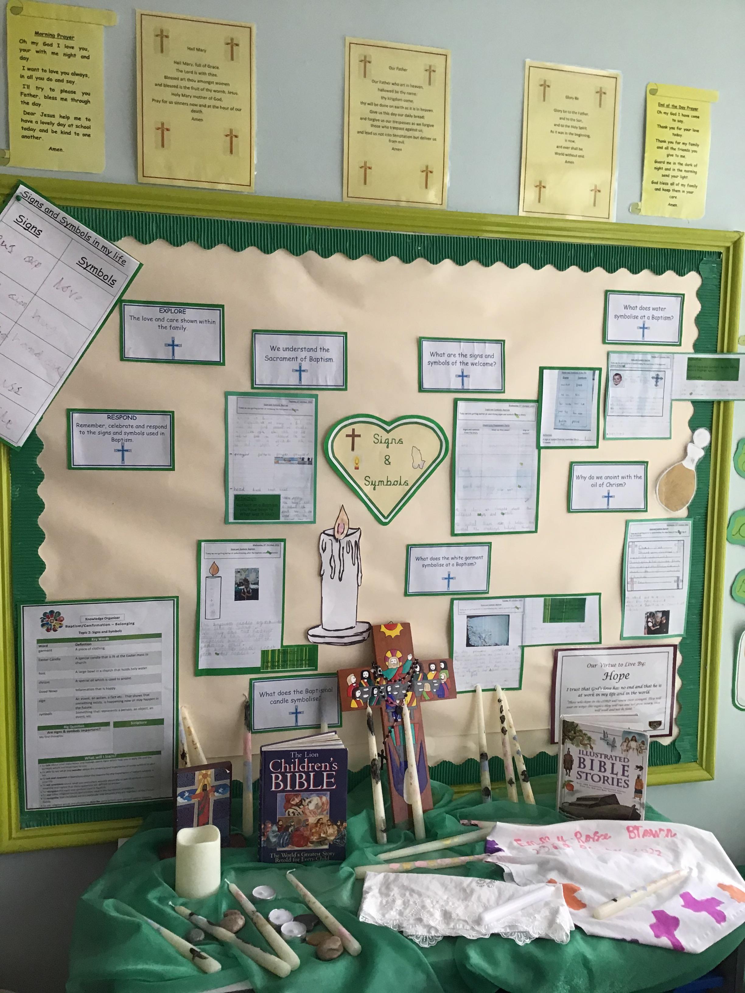 This is Y2’s display of learning. The children enjoyed learning about the different elements of Baptism, and God’s creations.