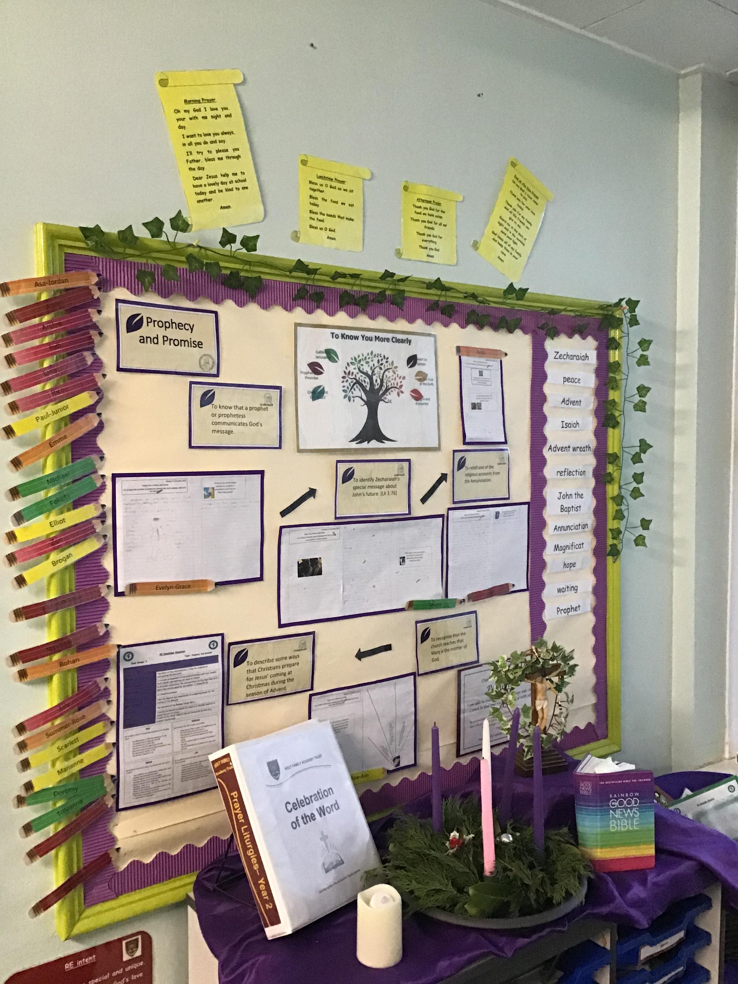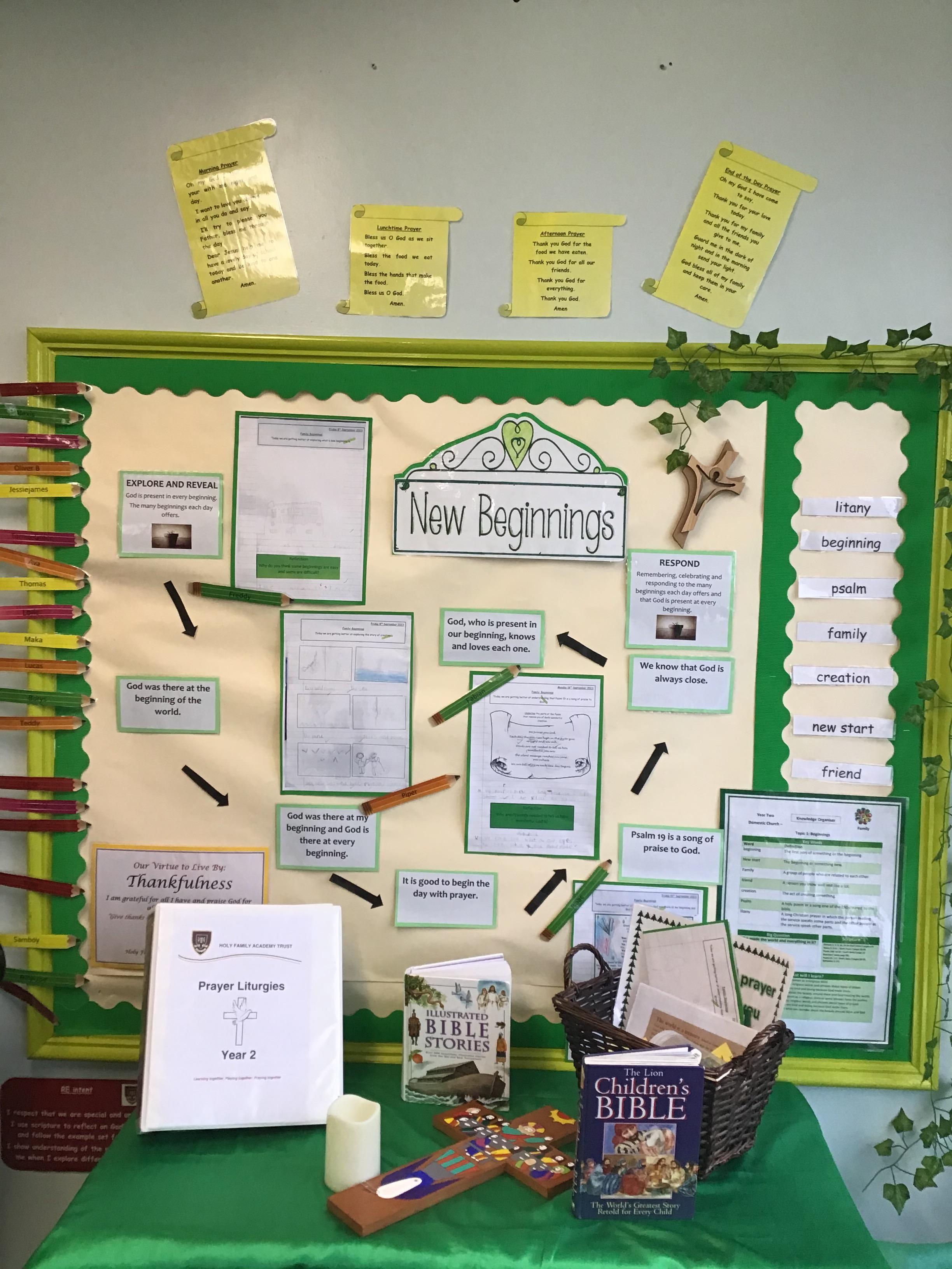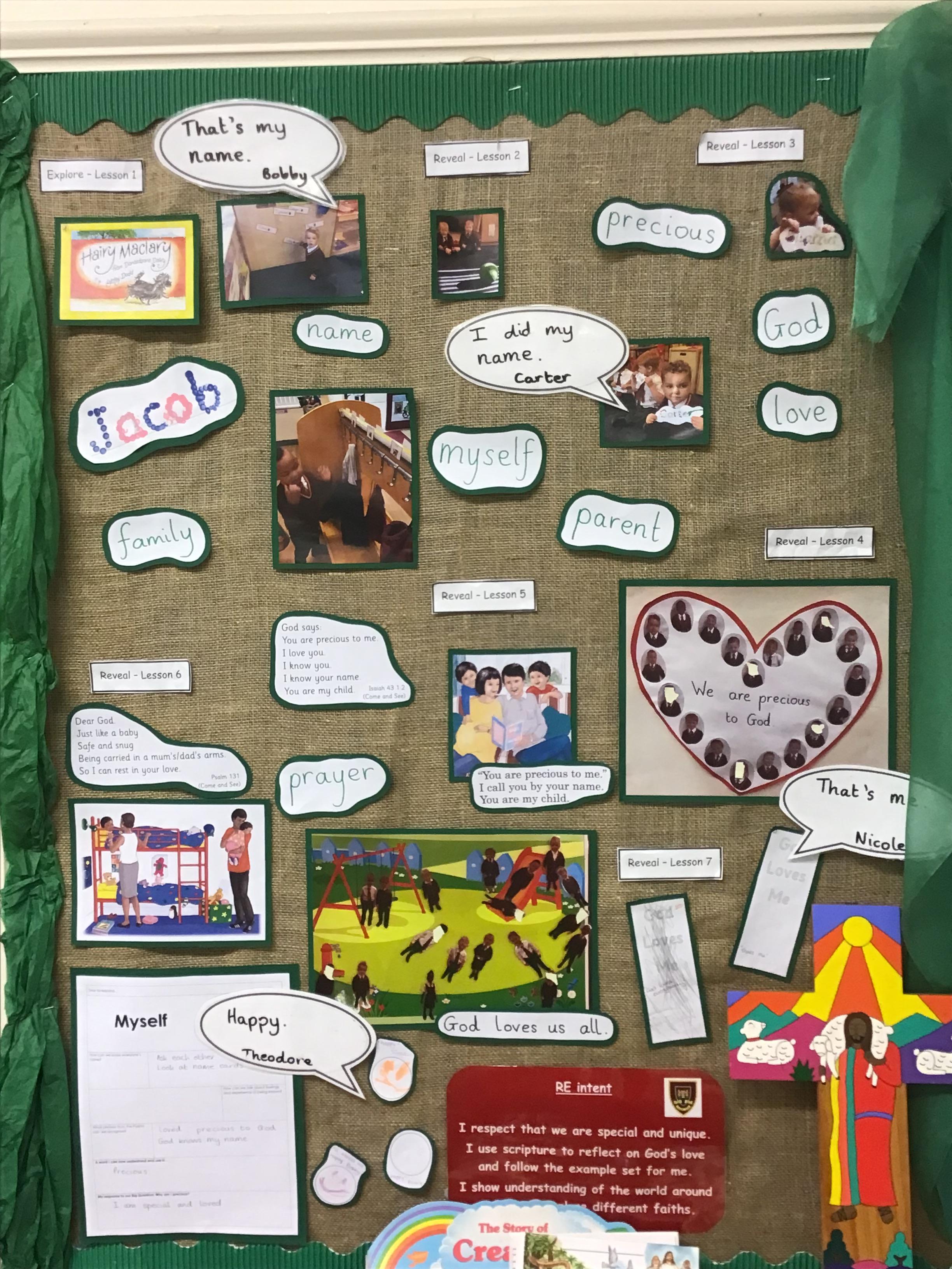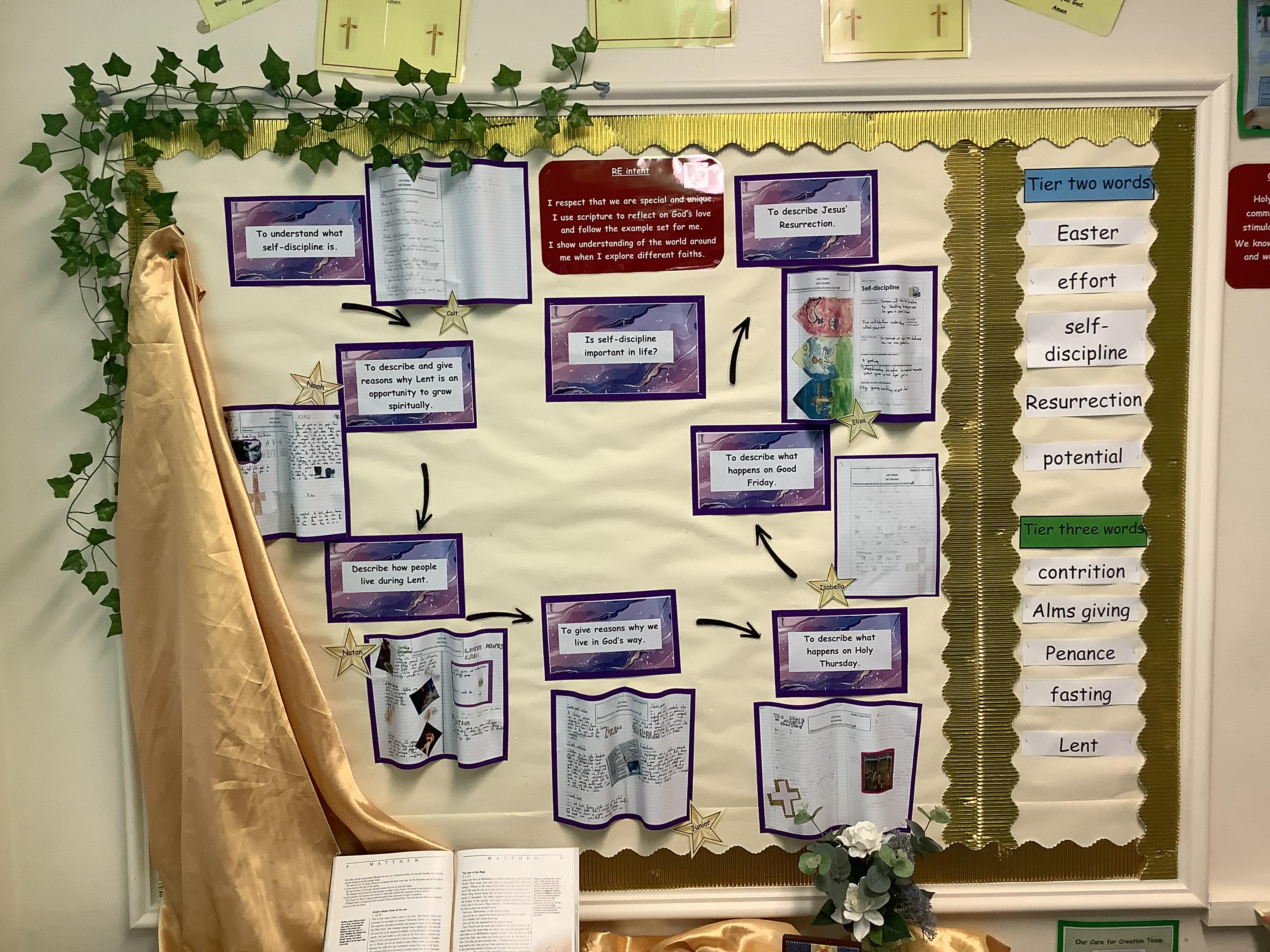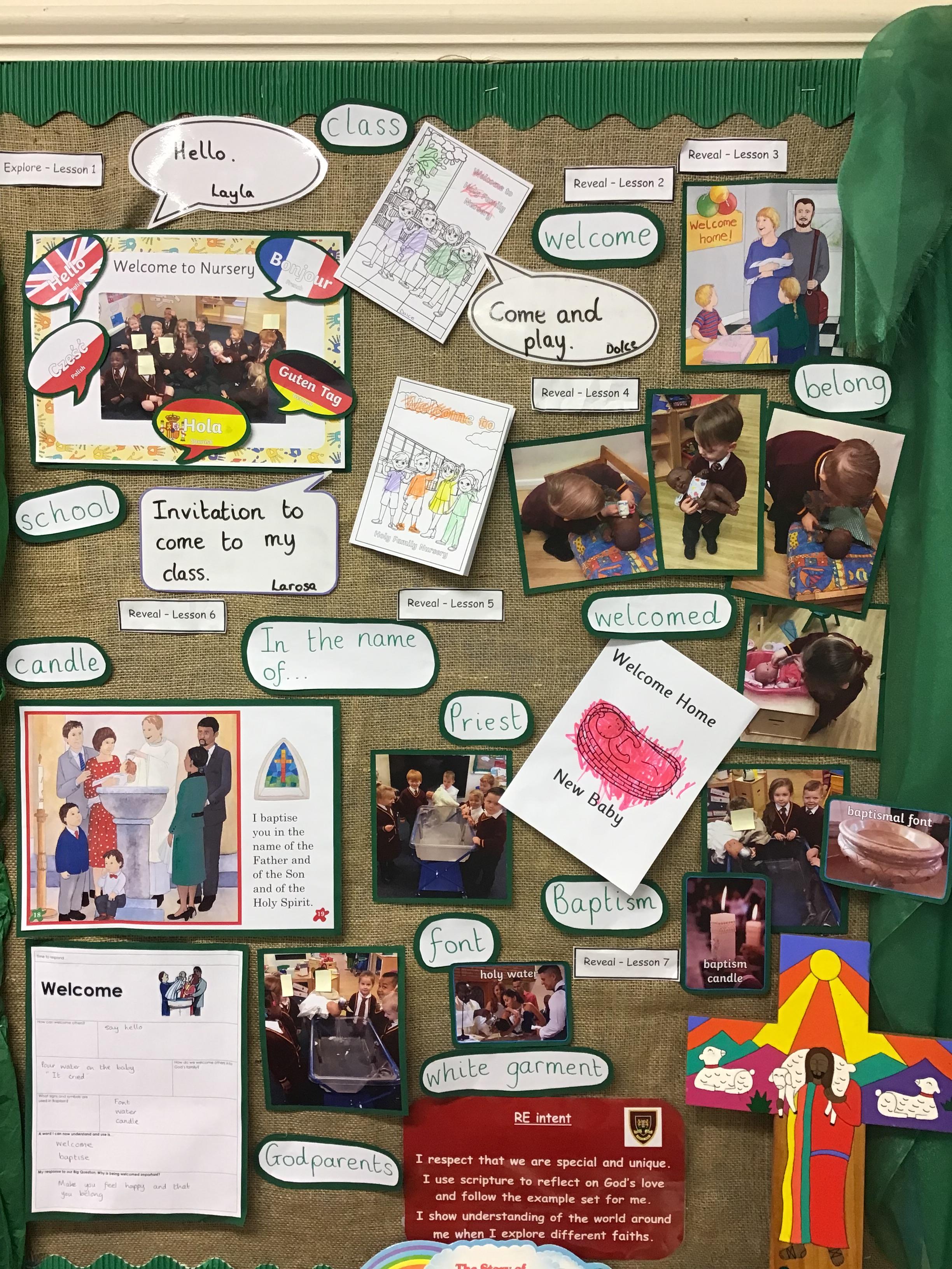 This is Y2’s display of learning. The children enjoyed learning about the different elements of Baptism, and God’s creations.
