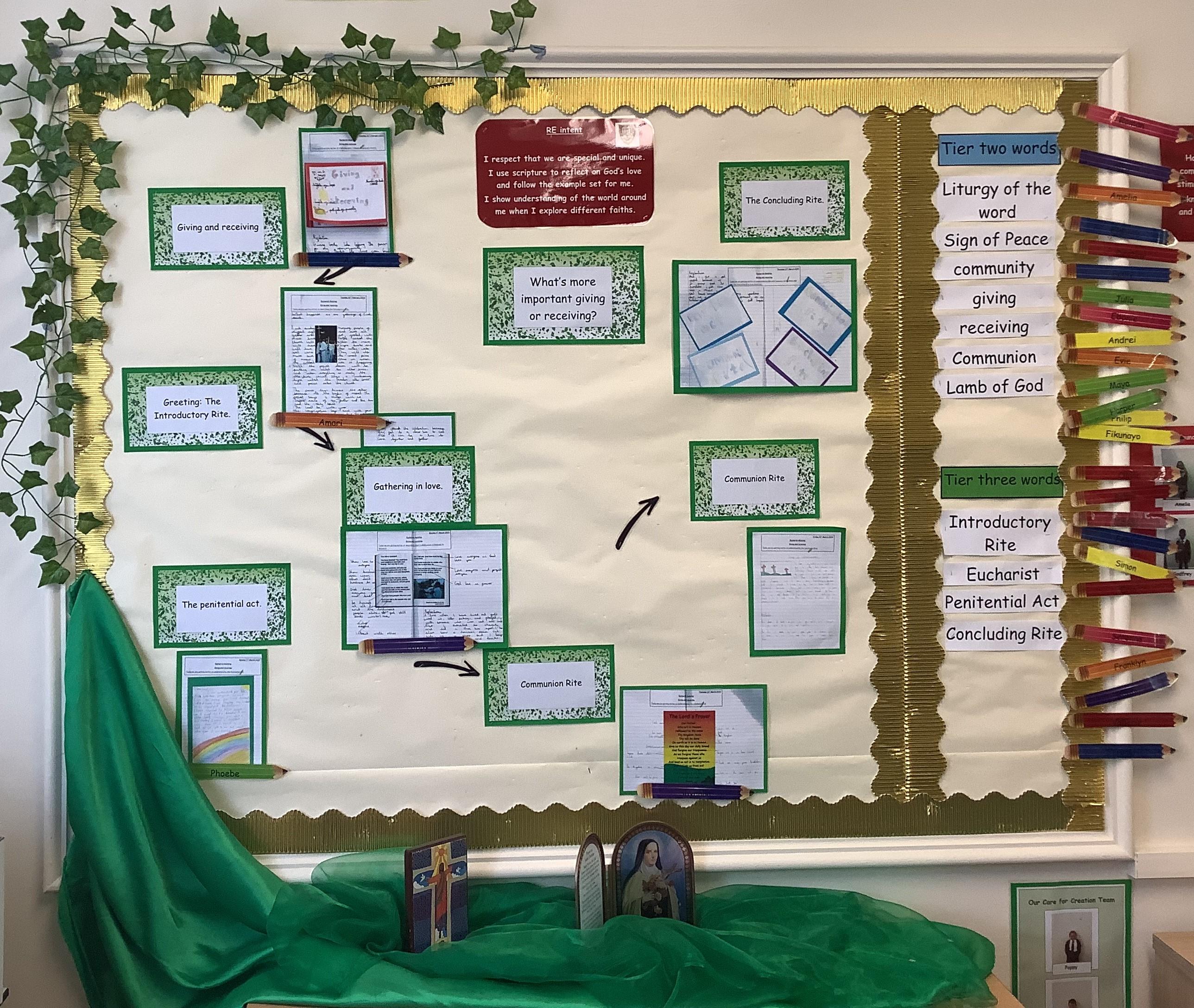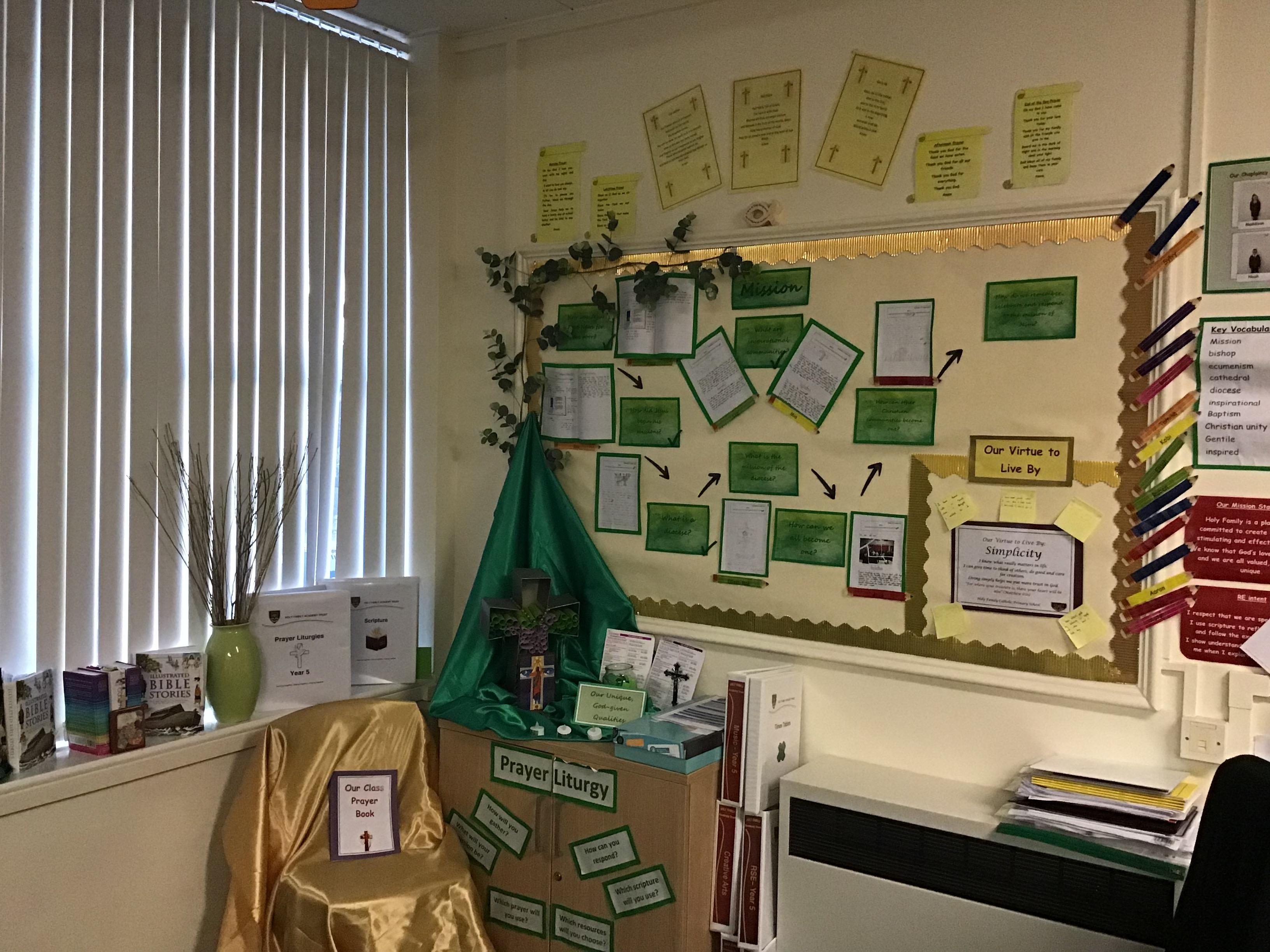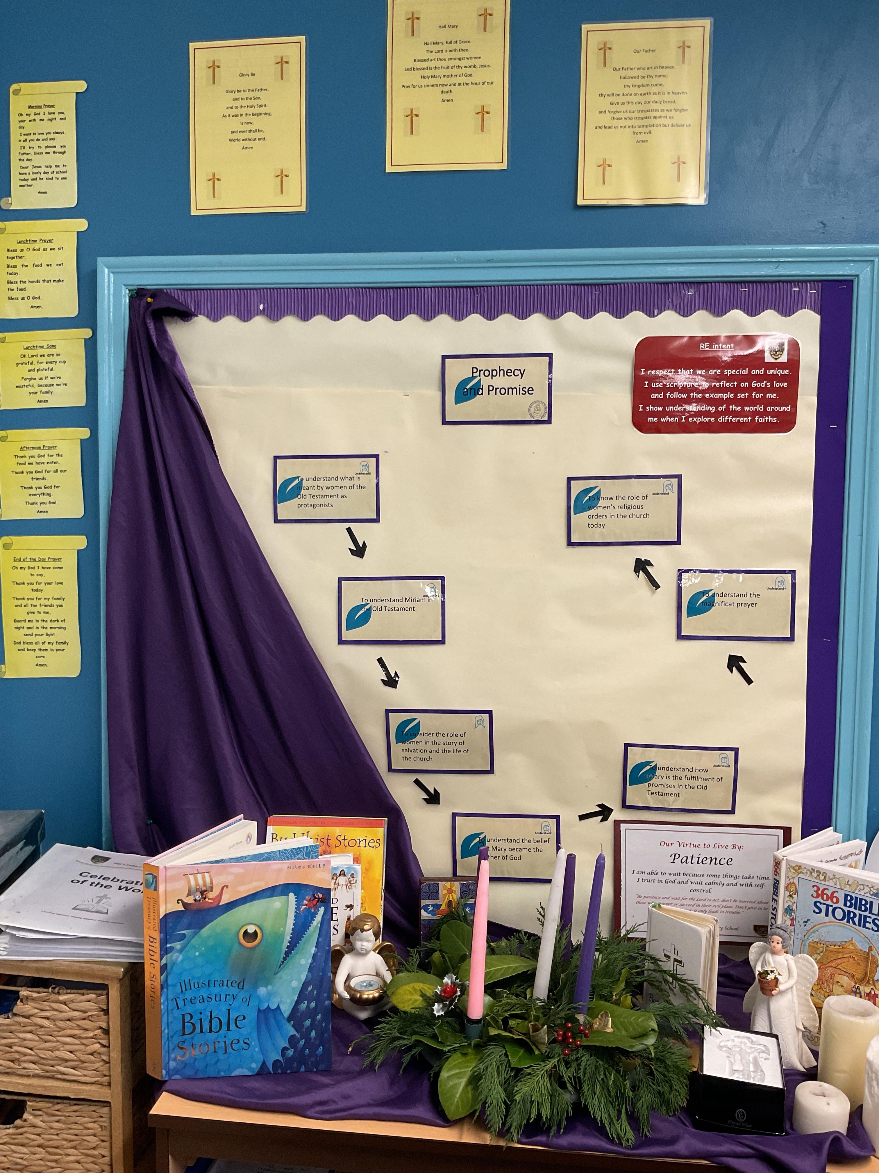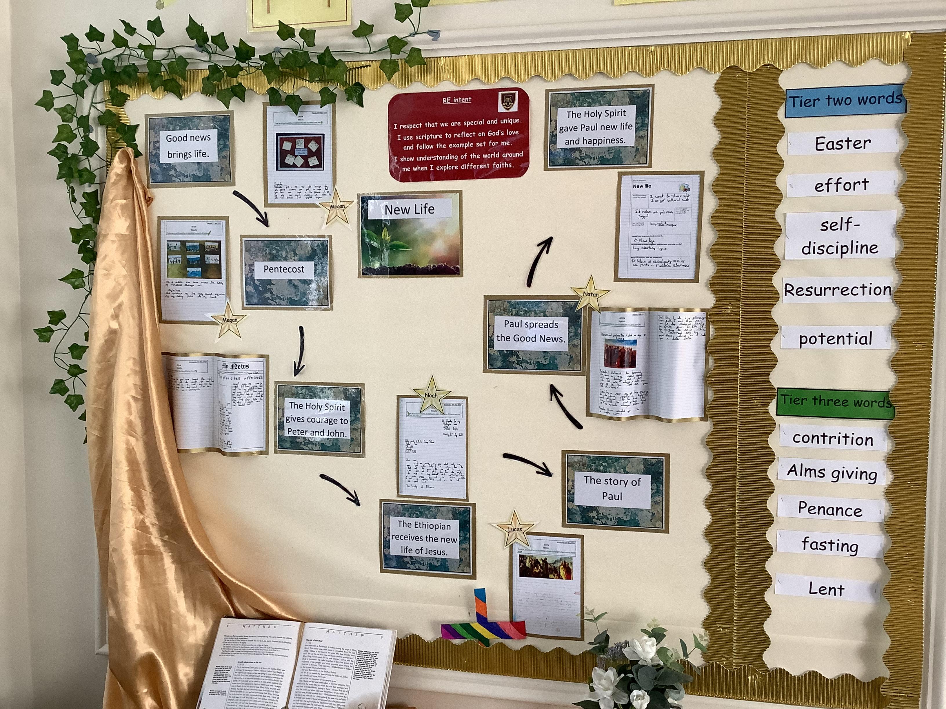 This is Y2’s display of learning. The children enjoyed learning about the different elements of Baptism, and God’s creations.