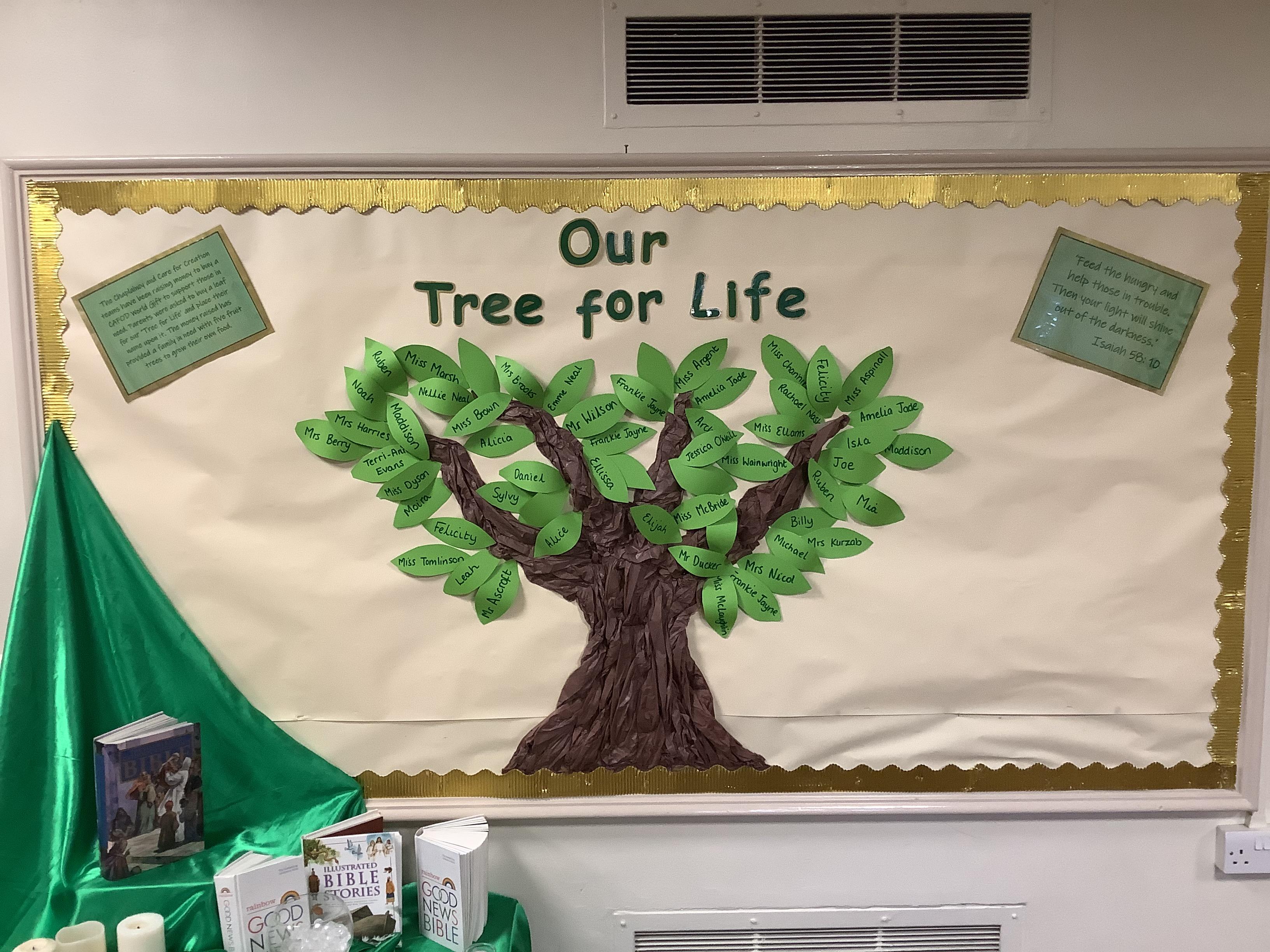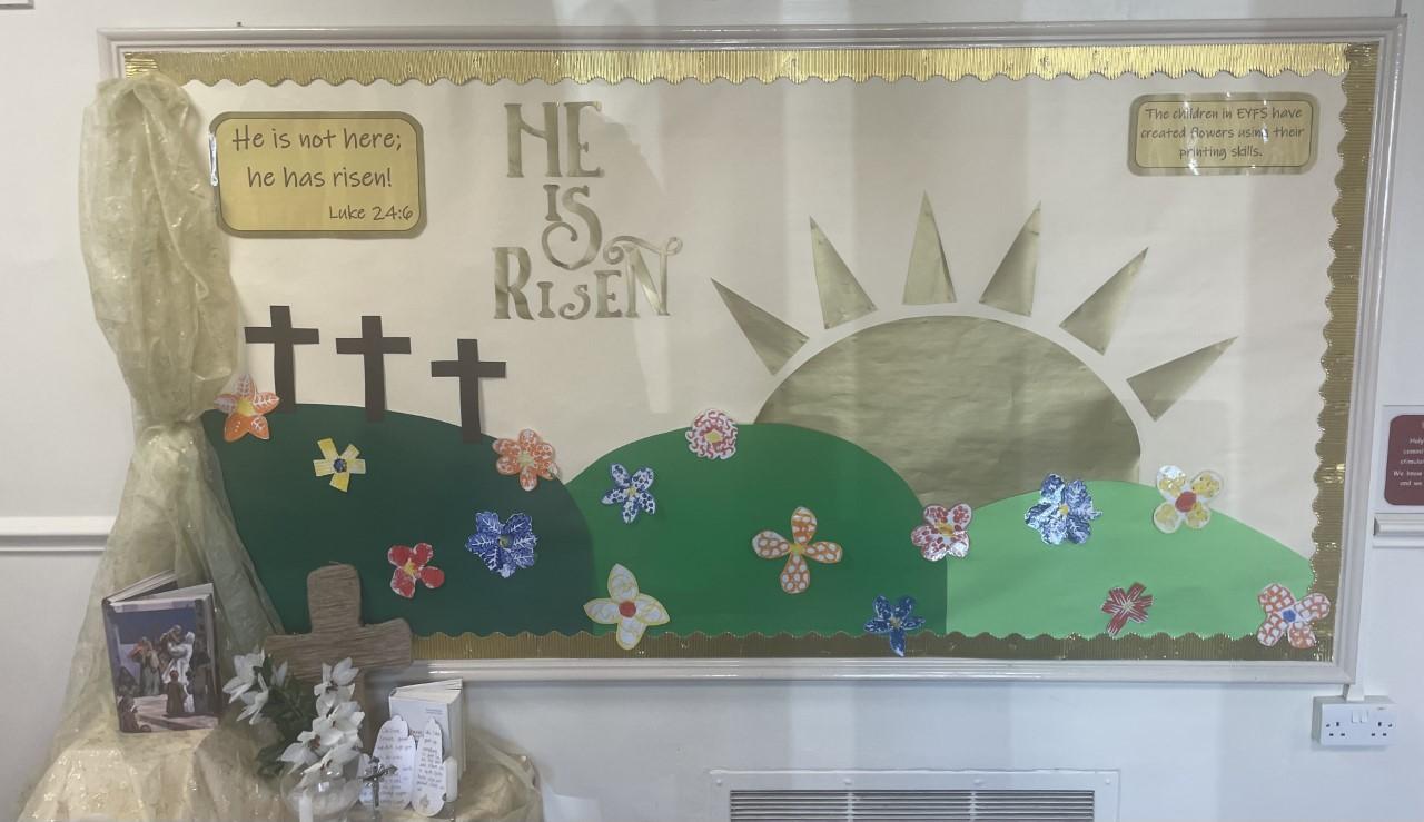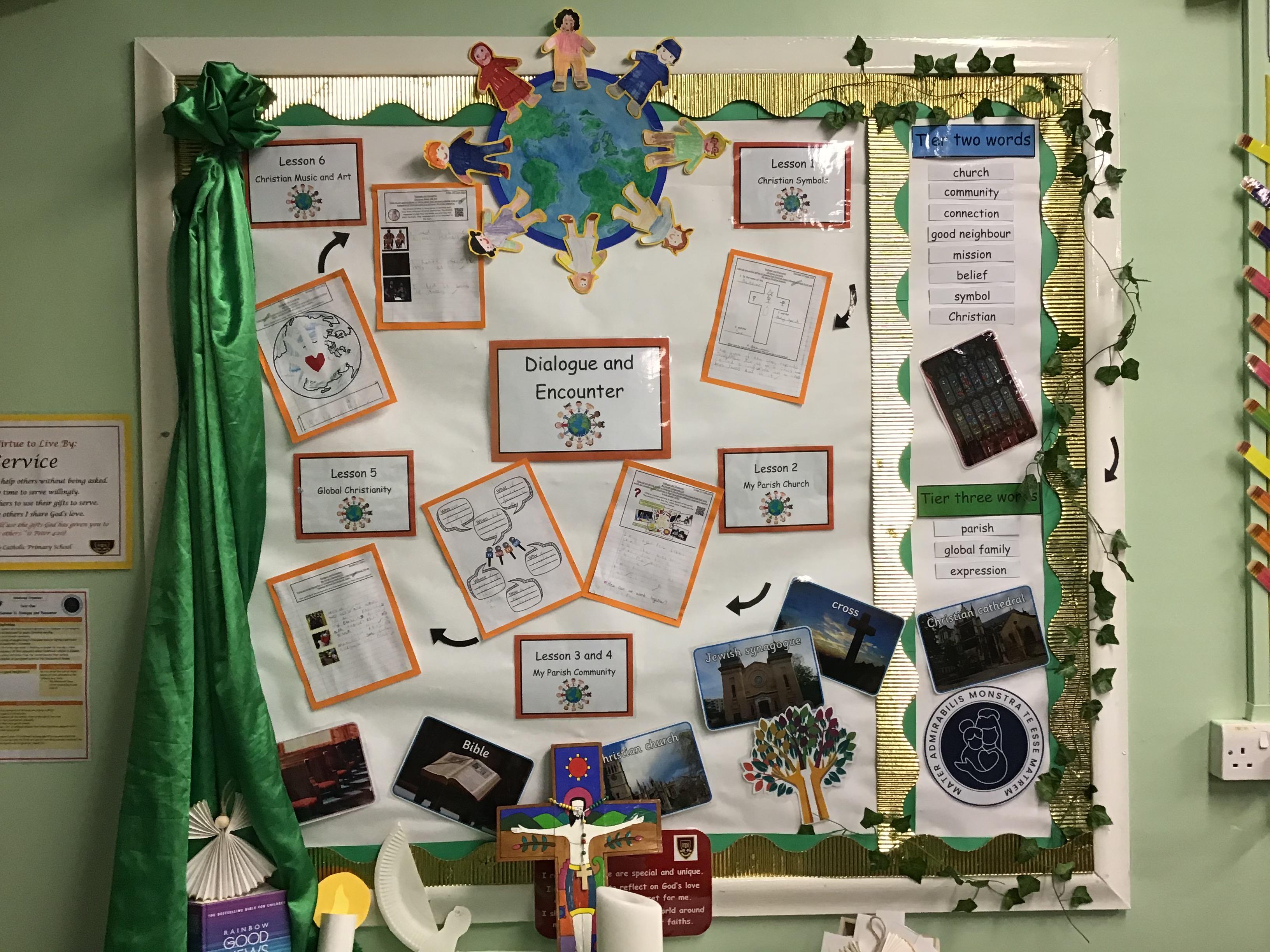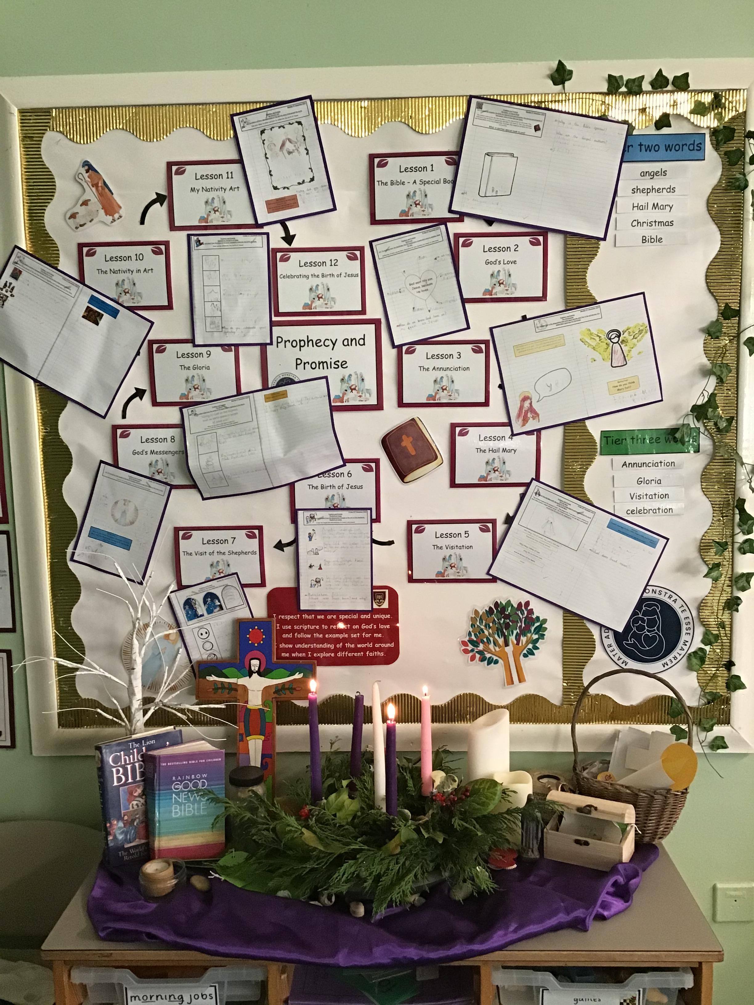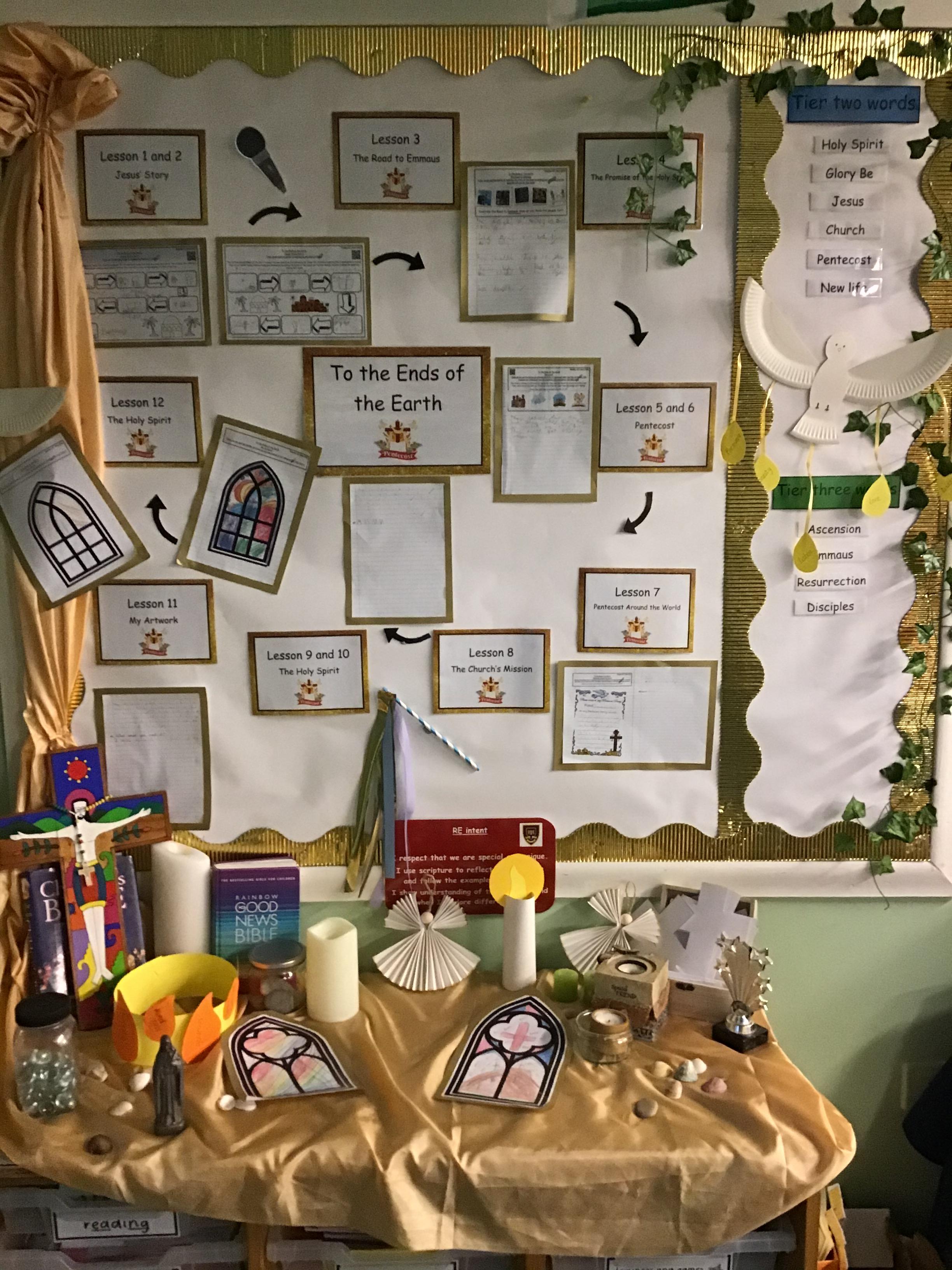 This is Y2’s display of learning. The children enjoyed learning about the different elements of Baptism, and God’s creations.