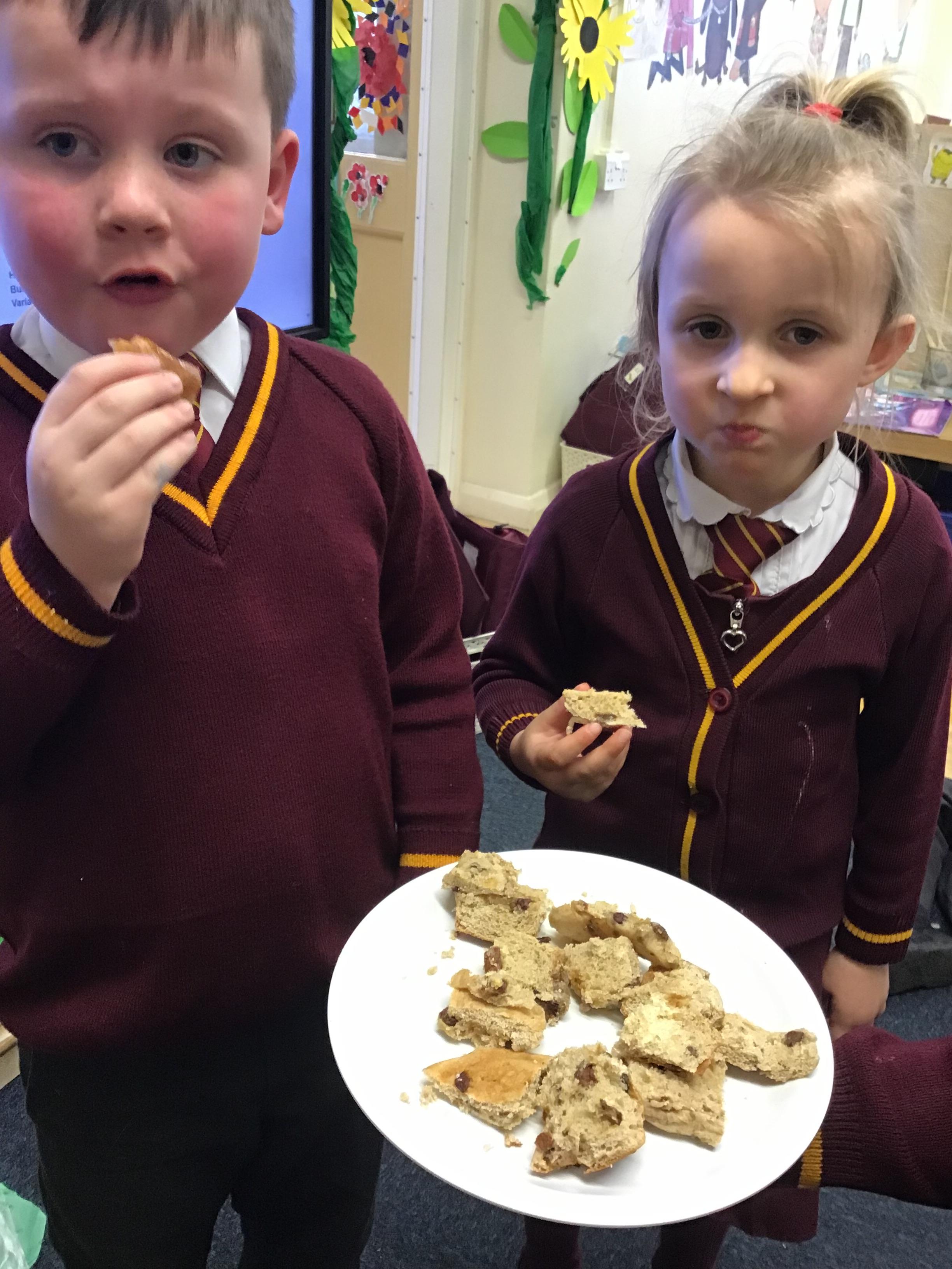 To help children understand Holy Week, Reception children tasted Hot Cross Buns as part of celebrating with signs and symbols.