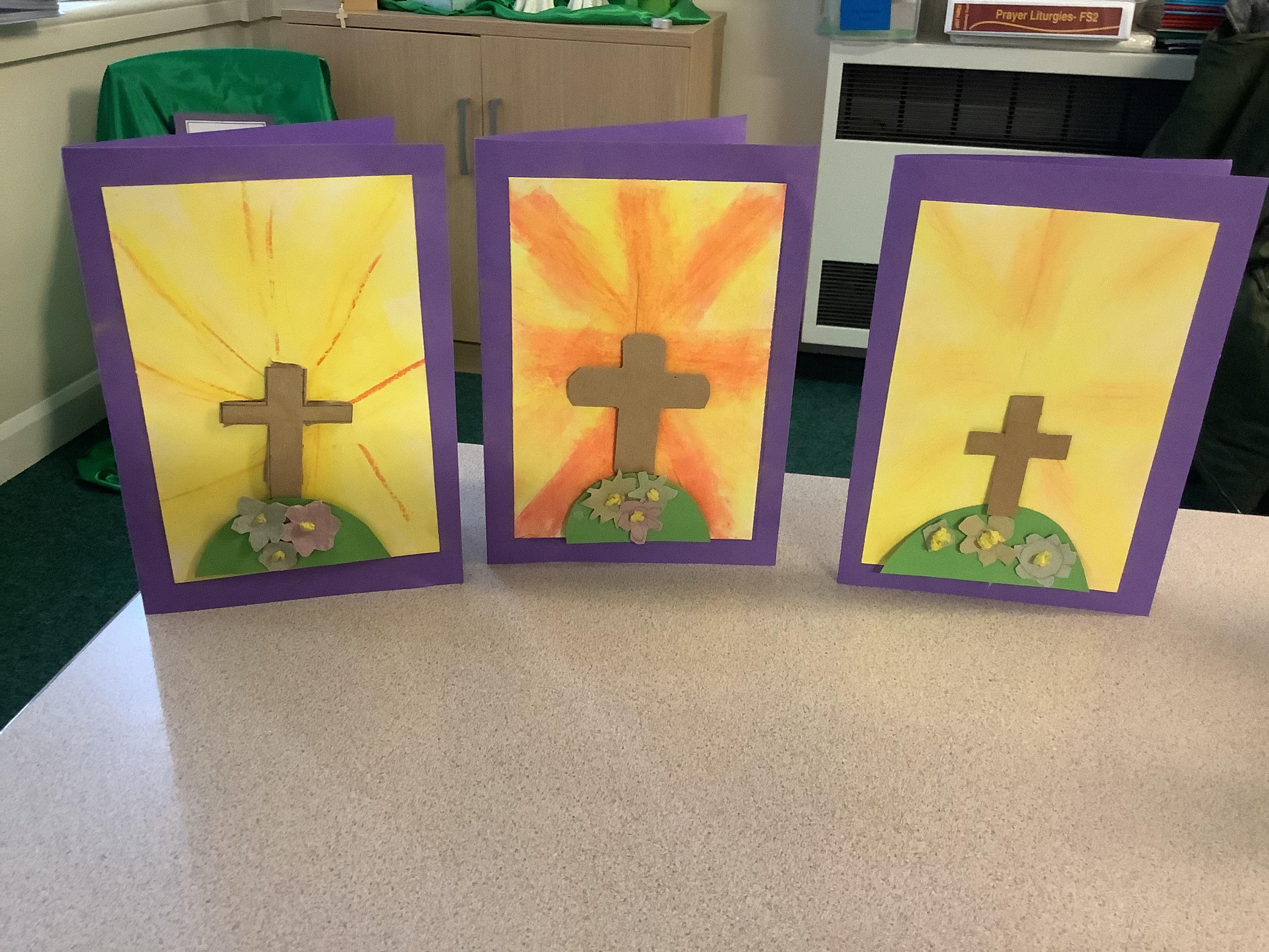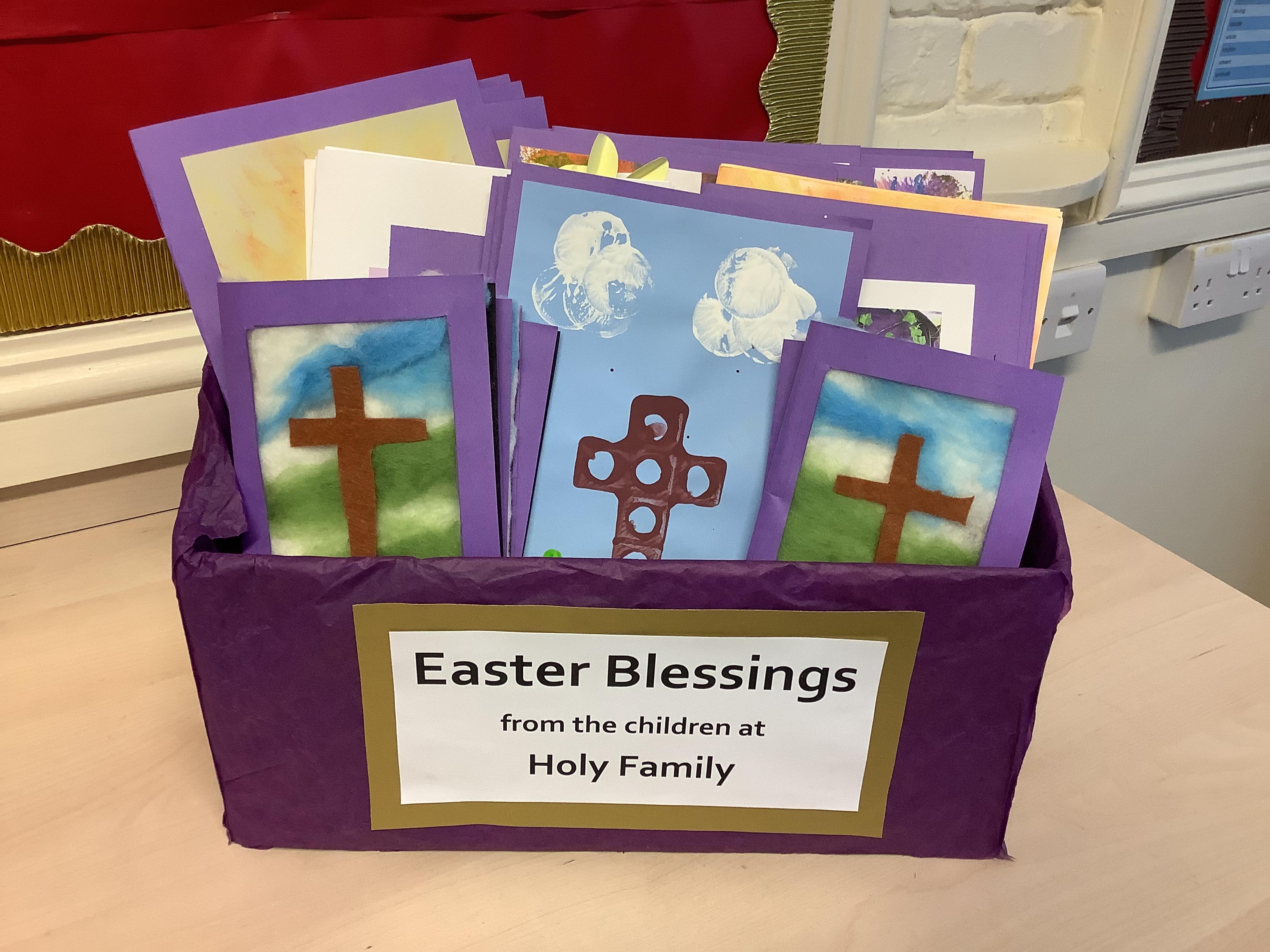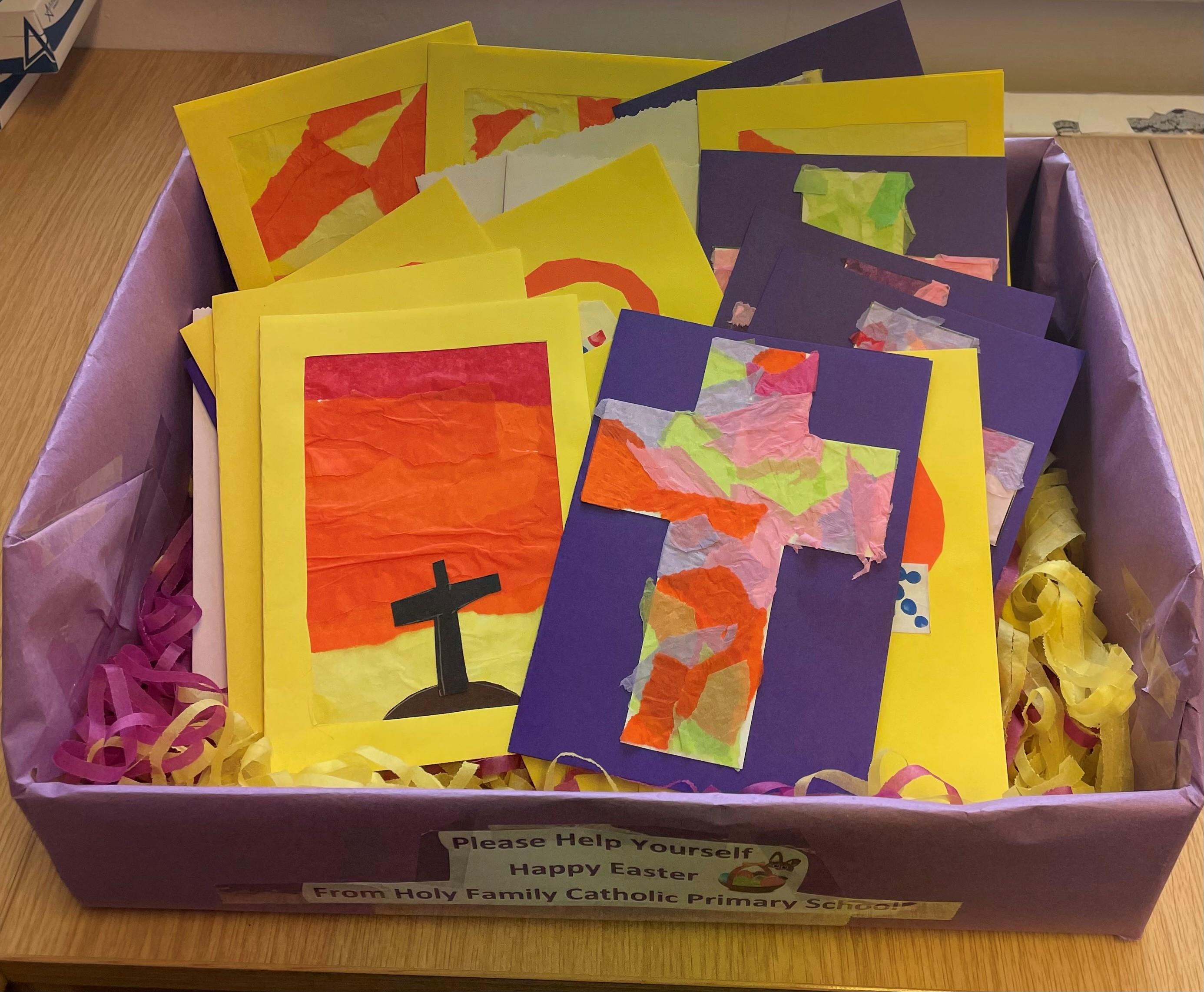 The children in Reception made Easter cards to celebrate the season and share joy with others, including special cards for the local parish as a way of connecting with and giving back to the community.