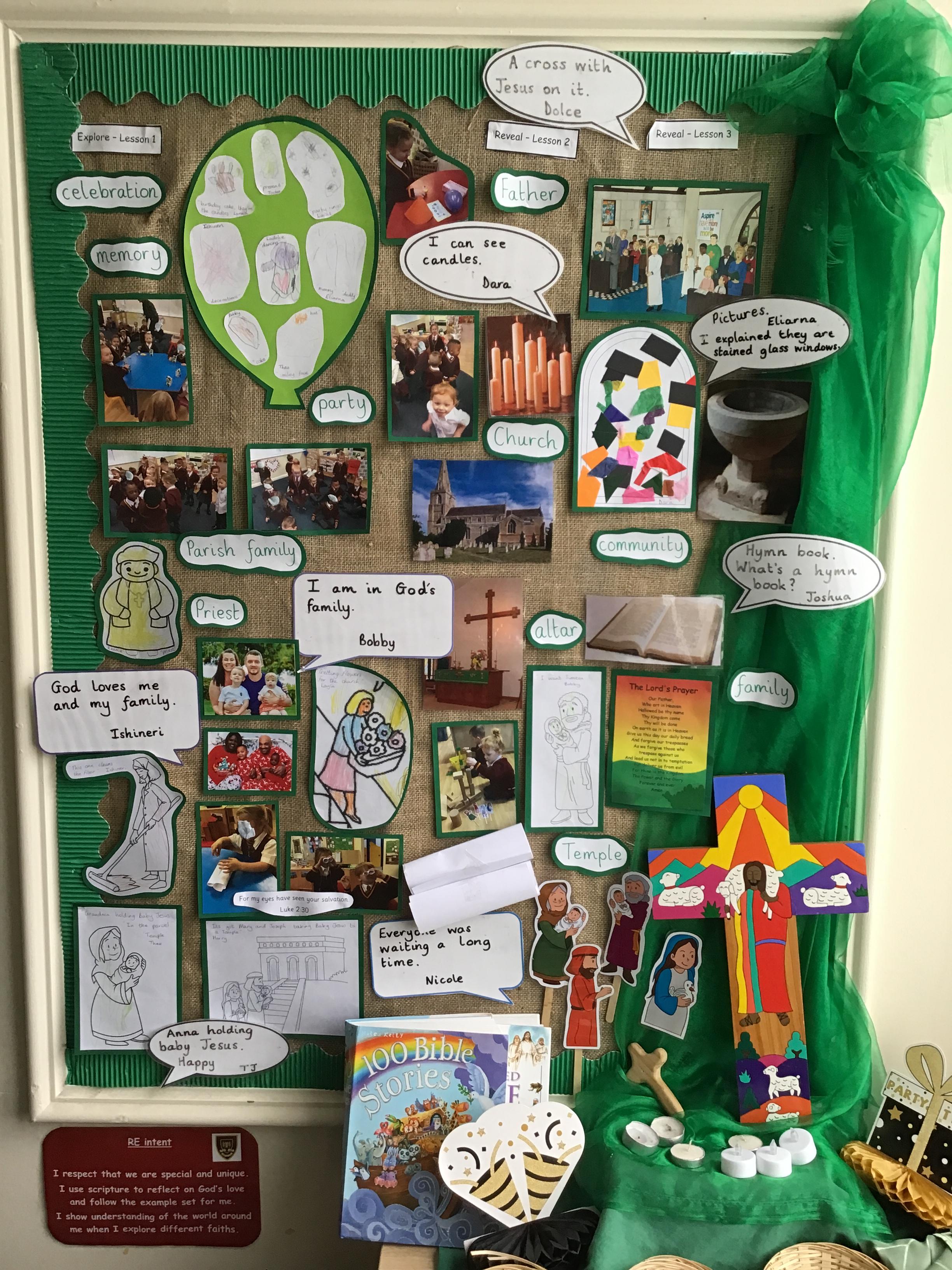 We learn about and explore Catholic and Christain traditions, alongside traditions from other faith backgrounds, so we can develop an understanding and respect for all and the world around us. Visits and hands on experiences allow opportunities for children to explore and understand religions and their traditions and experience them for themselves.