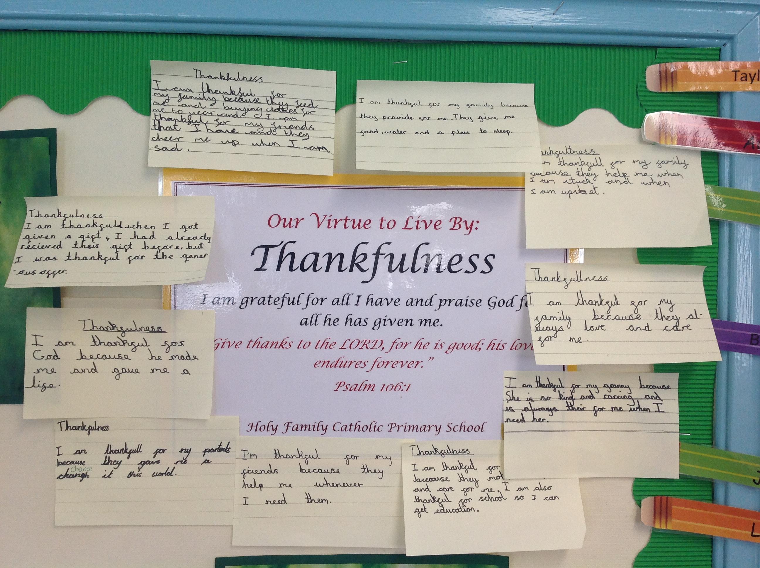 Year 4 have planned and arranged a Celebration of the Word for their peers. They have based their Celebration on the virtue love. They read Psalm 107: 1 from the bible and discussed a focus quote, 'give thanks to the Lord for he is good. His love endures forever'.