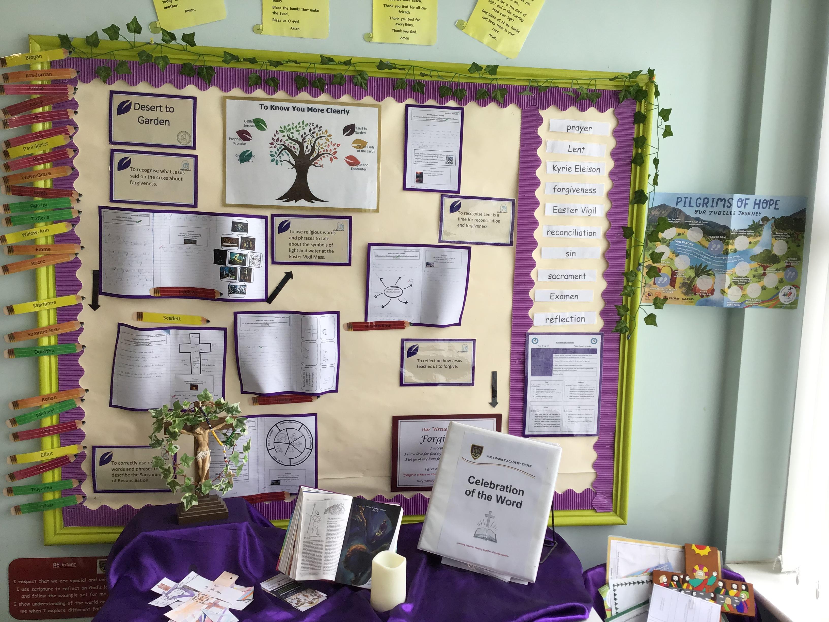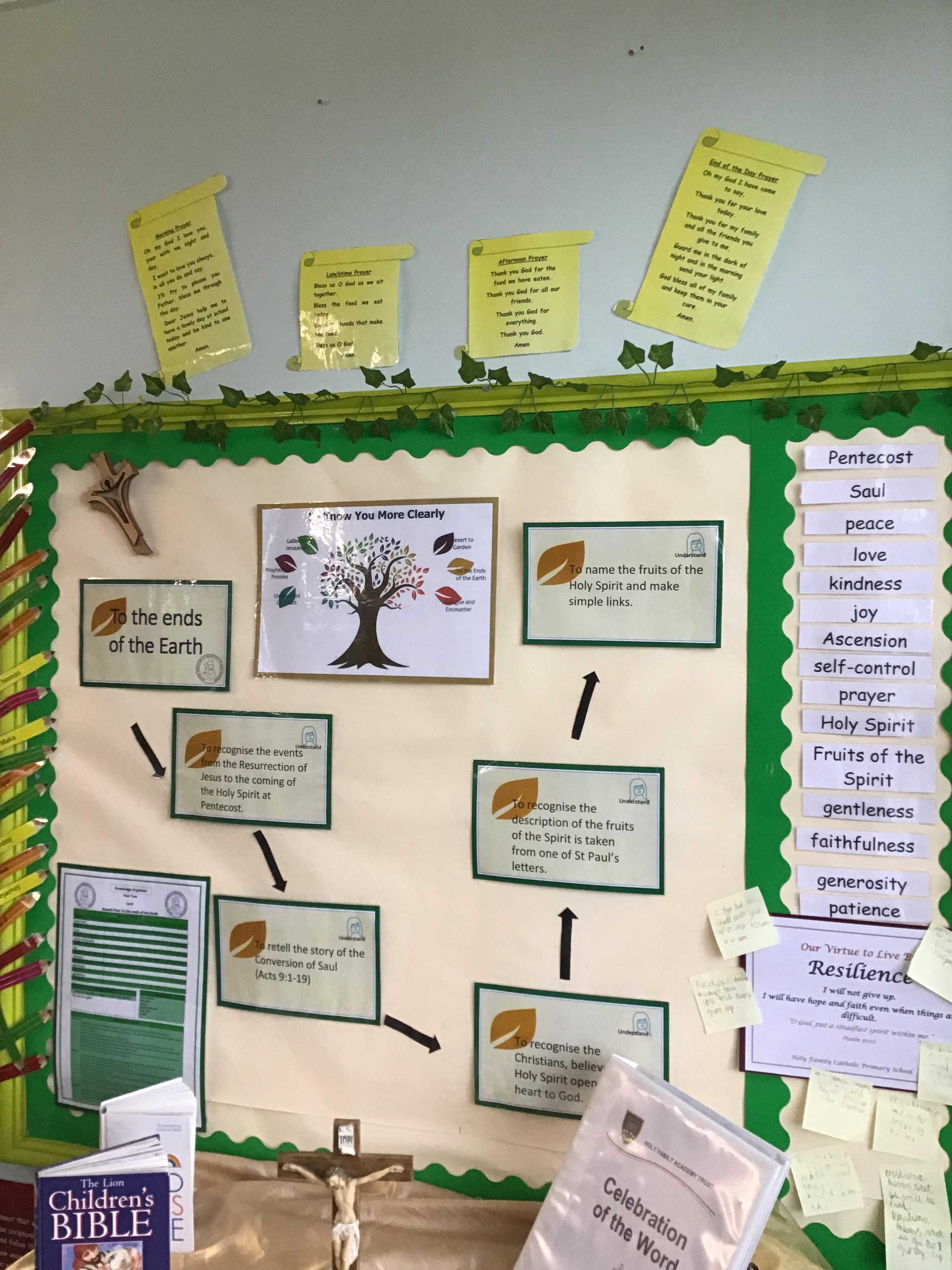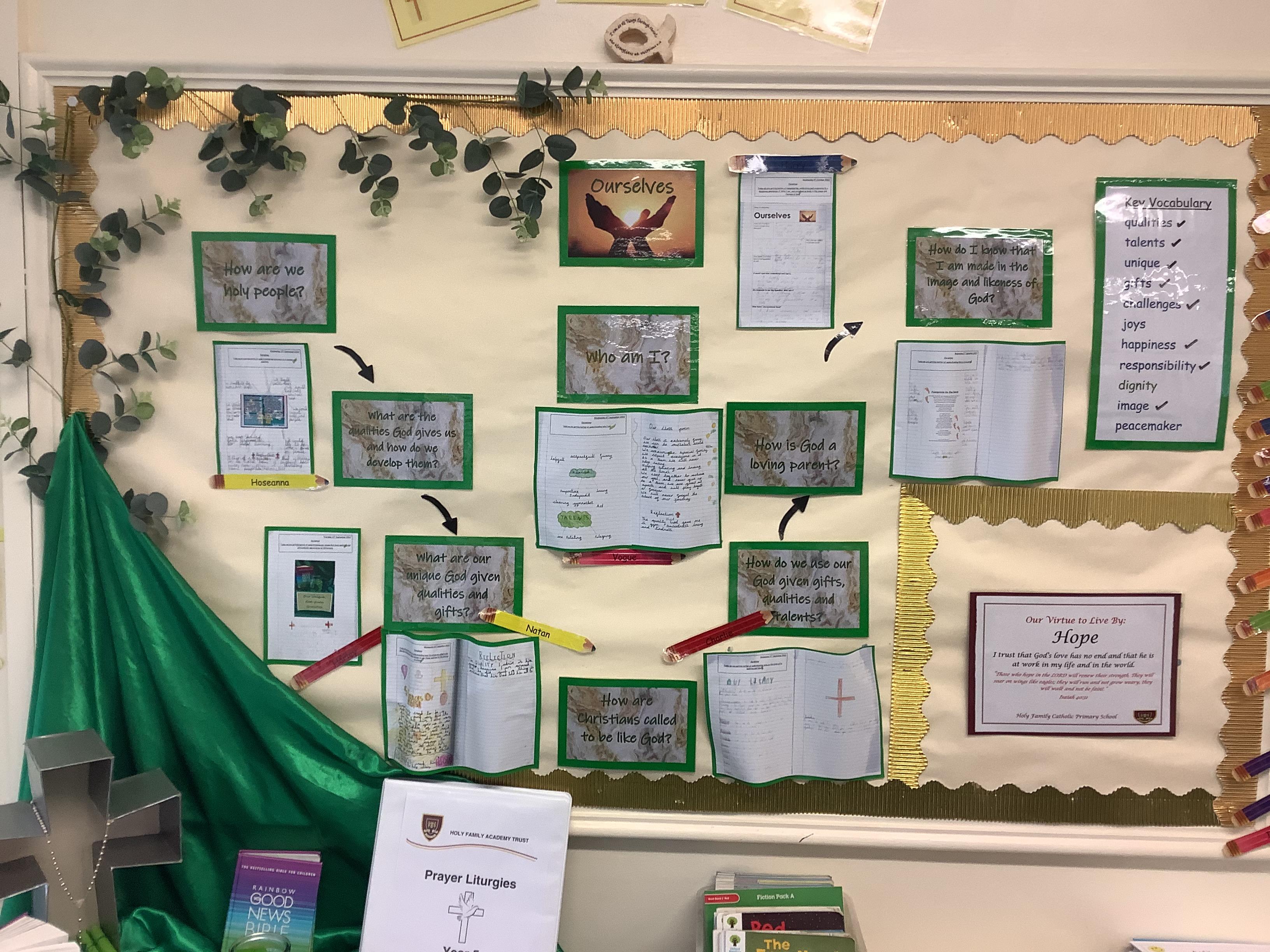 At Holy Family, we provide our children with a religious education that encourages understanding of others and the world around them, providing opportunities for children to ask questions and learn about Christainity. We aim for religious education lessons and experiences to be unlike any other in school to create the opportunity for not only learning about the Catholic Faith, but also awe, wonder, reverence and spirituality in a creative way.