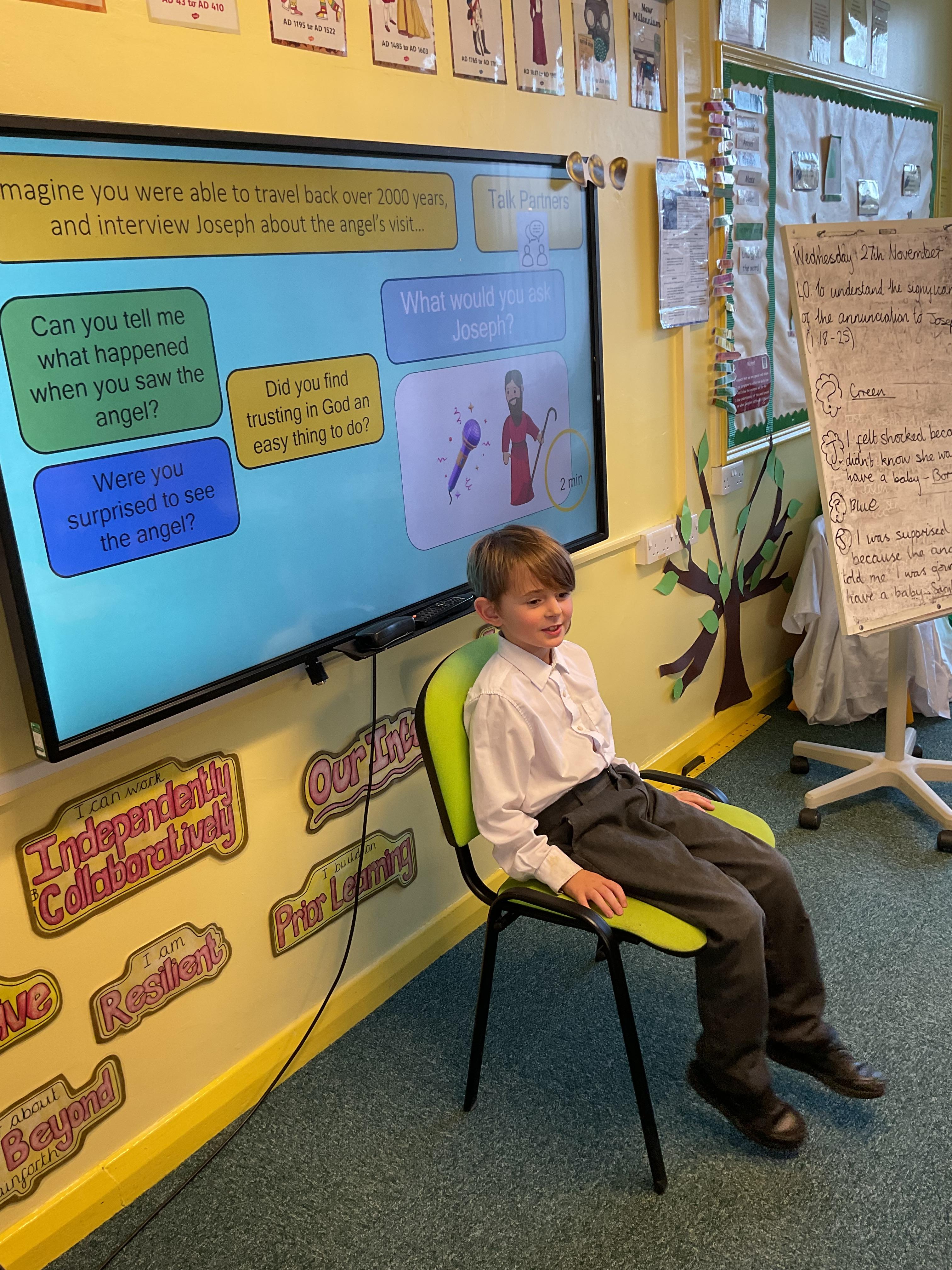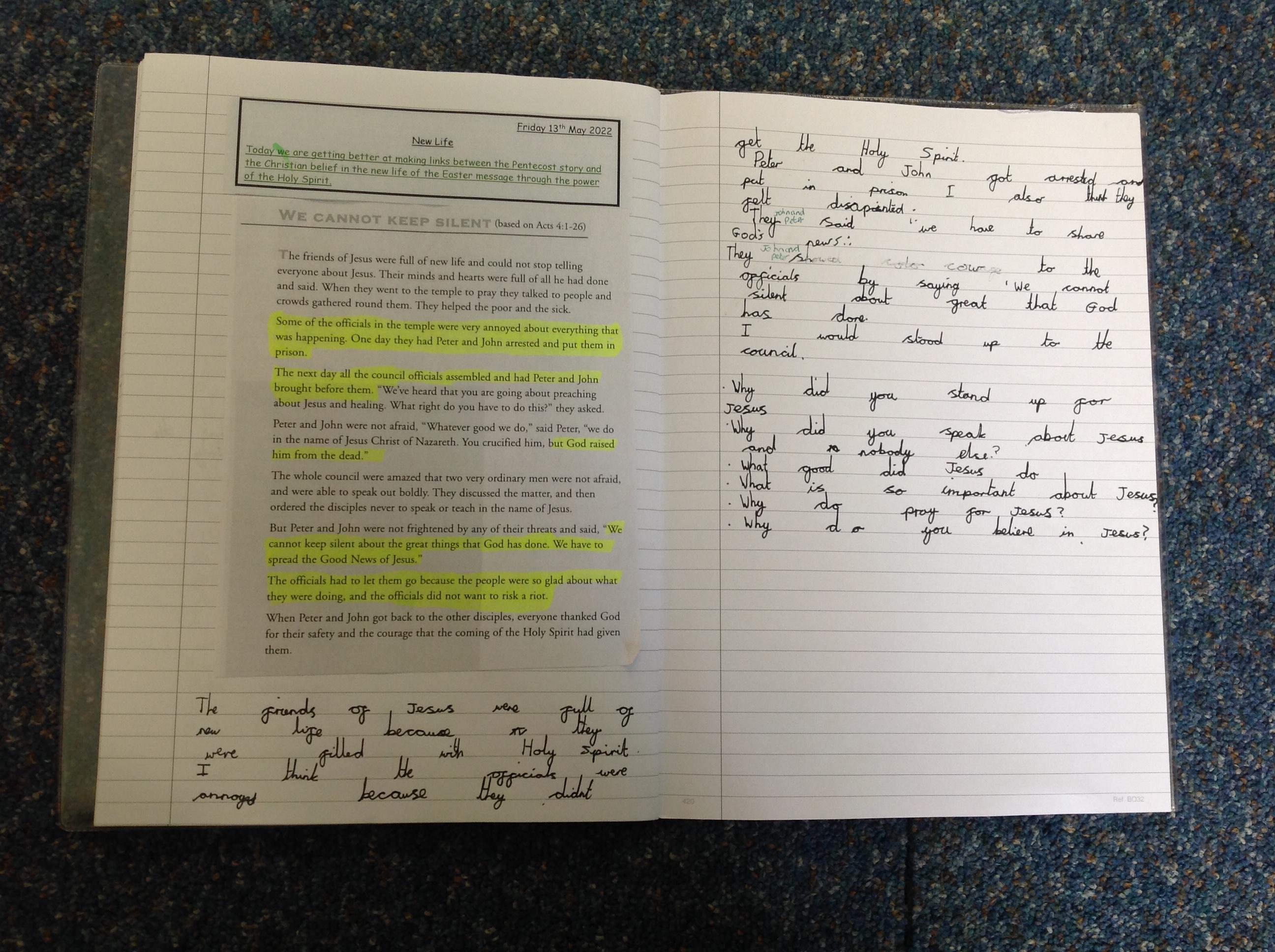 In Year 4, the children have been continuing to learn about their New Life topic in RE. Today, the children read and highlighted the scripture: God's Story, 4: 1-26. We cannot keep silent. The children learnt about how the Holy Spirit gave courage to Peter and John and allowed them to speak out about the Good News of Jesus even when they were threatened. The children then created some interview questions and participated in role play in which they asked Peter and John different questions.