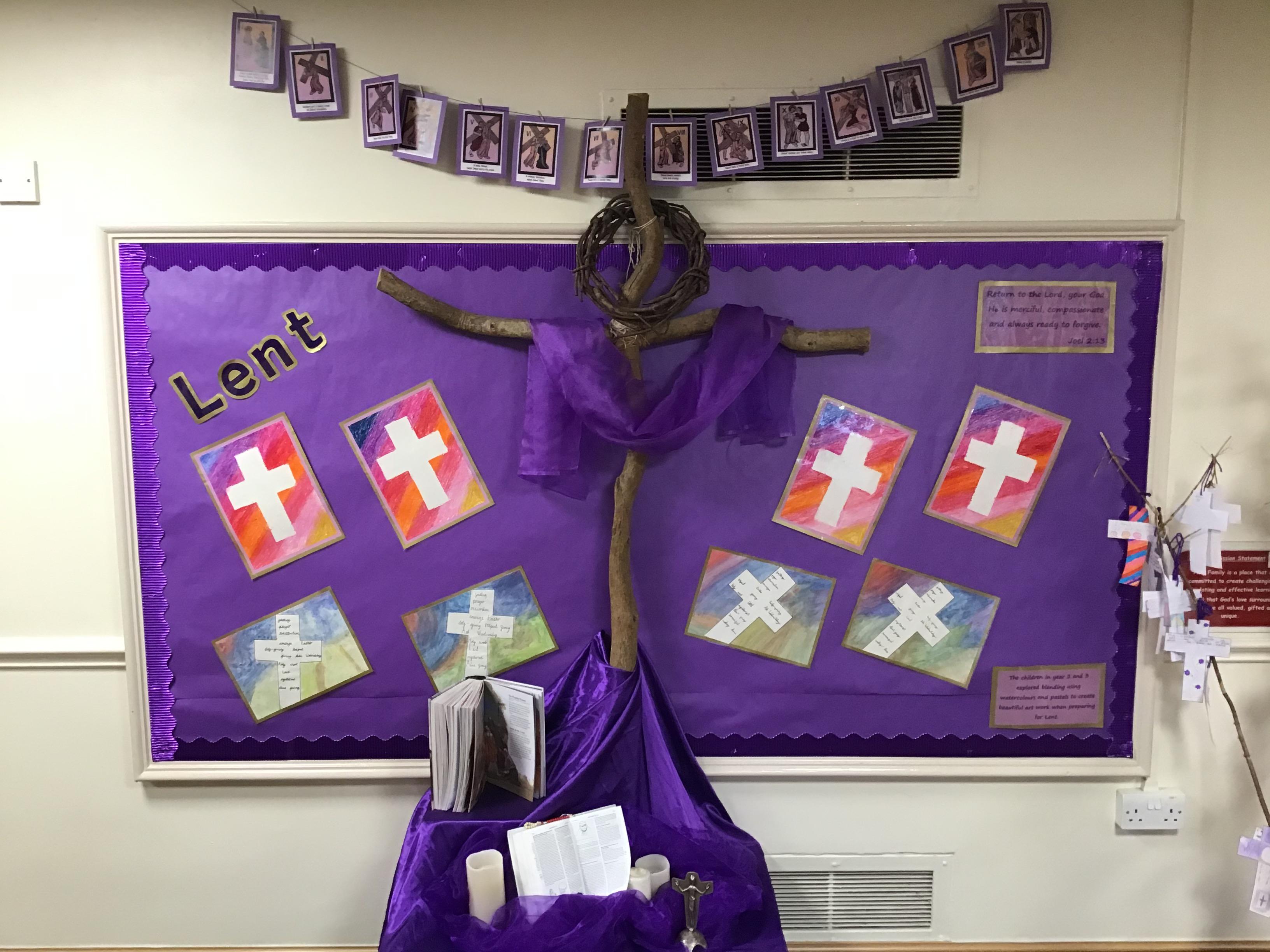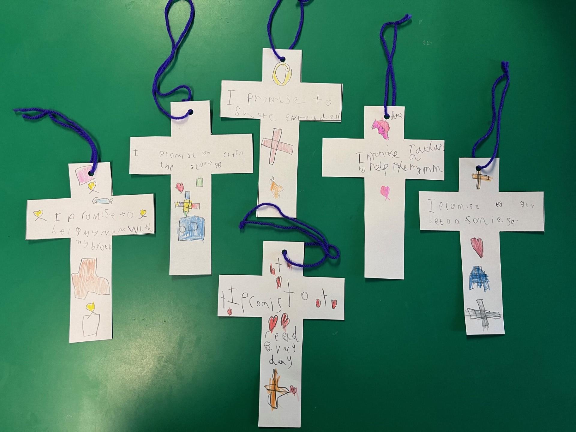 Children in Reception reflected on the word sacrifice and made Lenten promises to keep for 40 days.