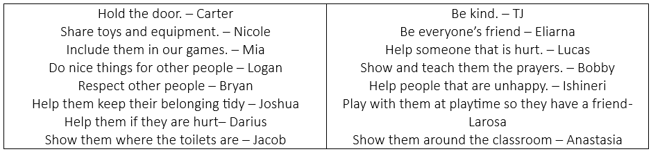 As a class, the children discussed how we can be welcoming in our classroom and school.