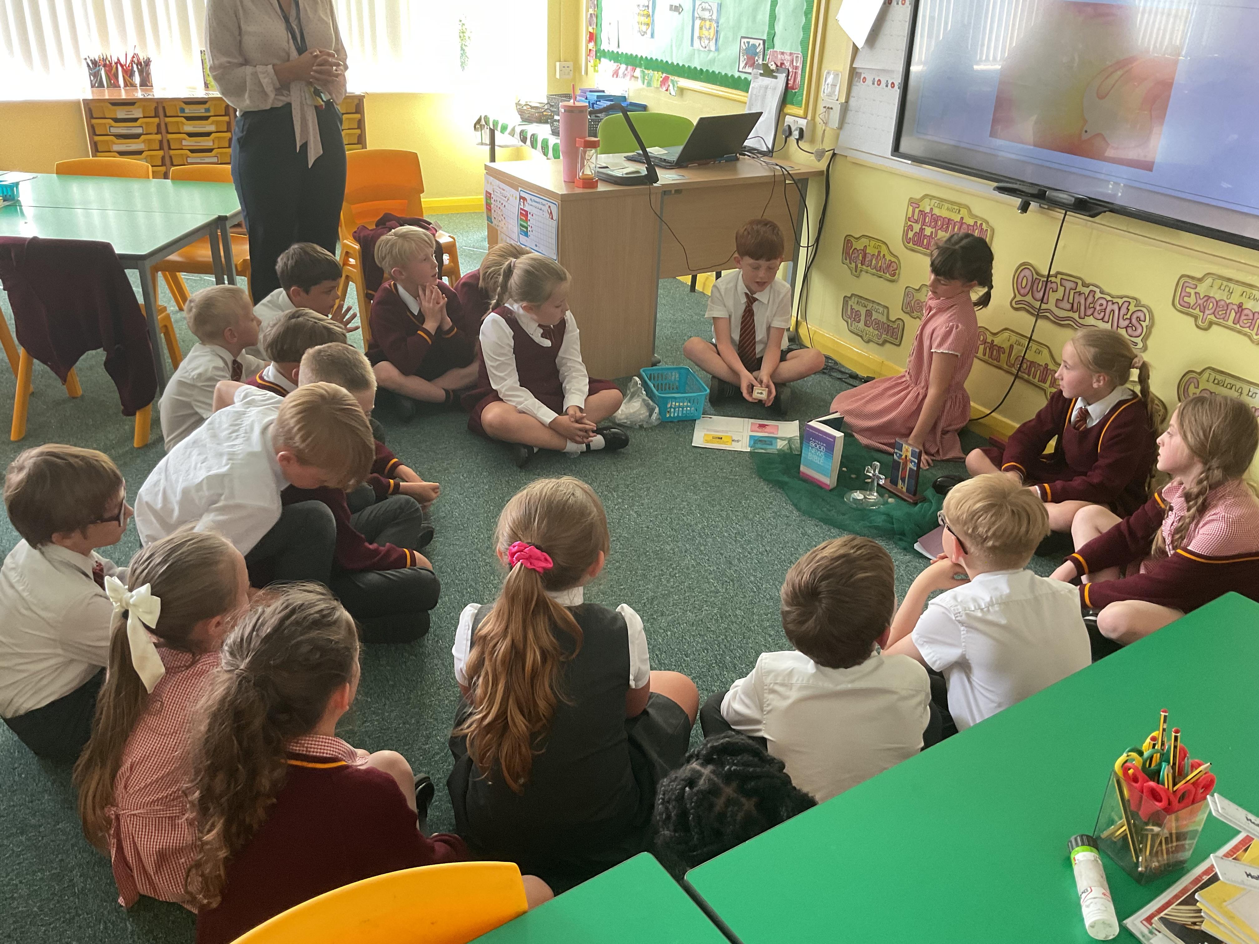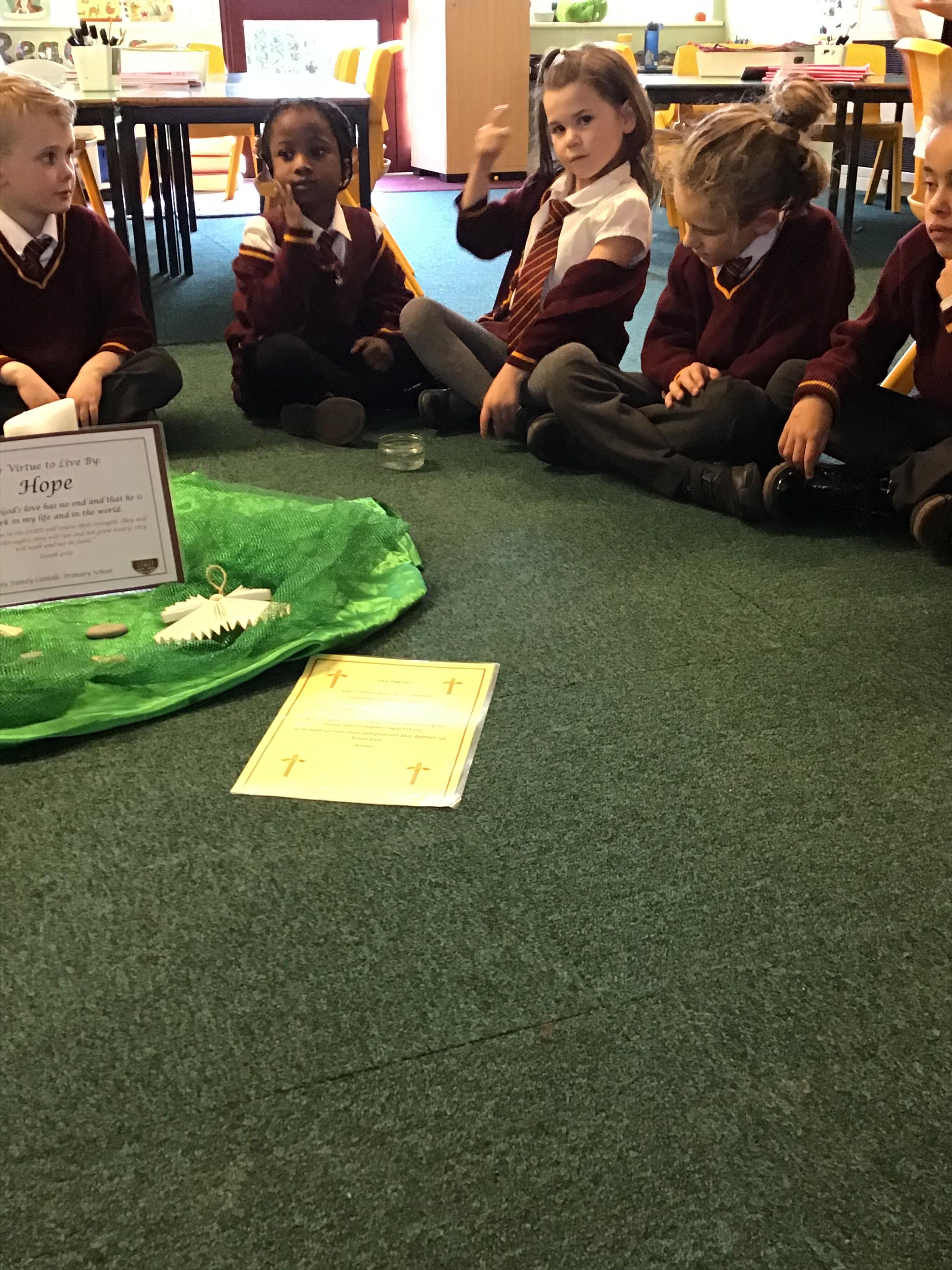 In Year 4 this week, we focused on kindness for one of our collective worships. The children chose the centrepiece which was a green cloth and a cross. They listened to reflective music whilst gathering in a circle and thought about how they had been kind today. The children had to make a fist of friendship, they thought of one friend they were proud to have, one person who they thought needed their friendship, one person who they find challenging and one person who they thought needed their prayers. They then placed their friendship fist next to their heart and listened to the word kindness. We read scripture from the bible (Ephesions, 4:32) and then the children thought about how they can be an example of Jesus today, showing kindness, helping someone in need, sharing with someone and looking after our world.