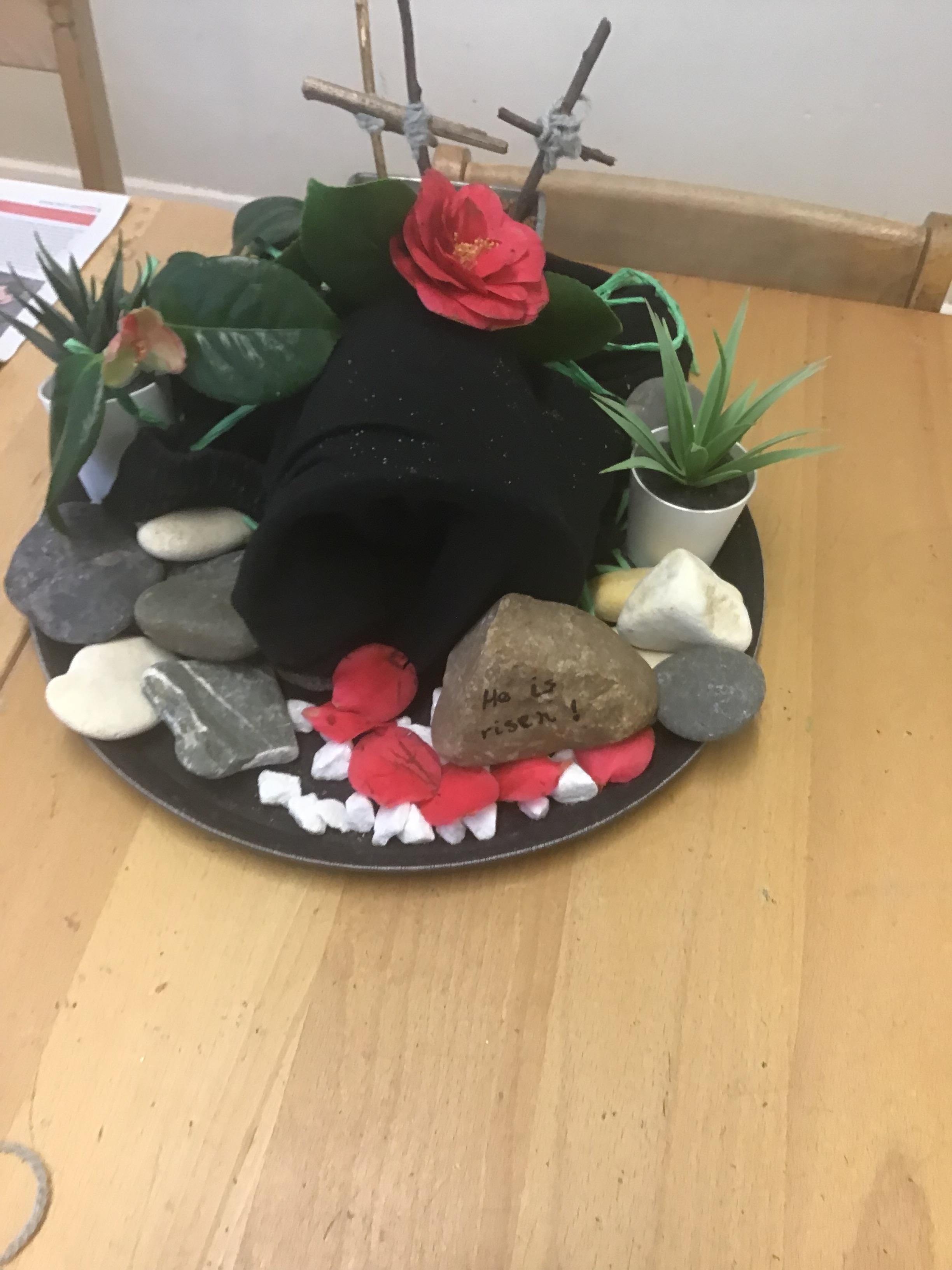 The nursery children have been learning about the events of Holy Week. We made our own palm leaves, which allowed us to practise our cutting skills, and acted out Jesus arriving in Jerusalem on Palm Sunday. We watched the Easter story and ordered the events. We talked about the Easter story being both sad and happy. The children used the provision to help them reflect on the events of Holy Week.
