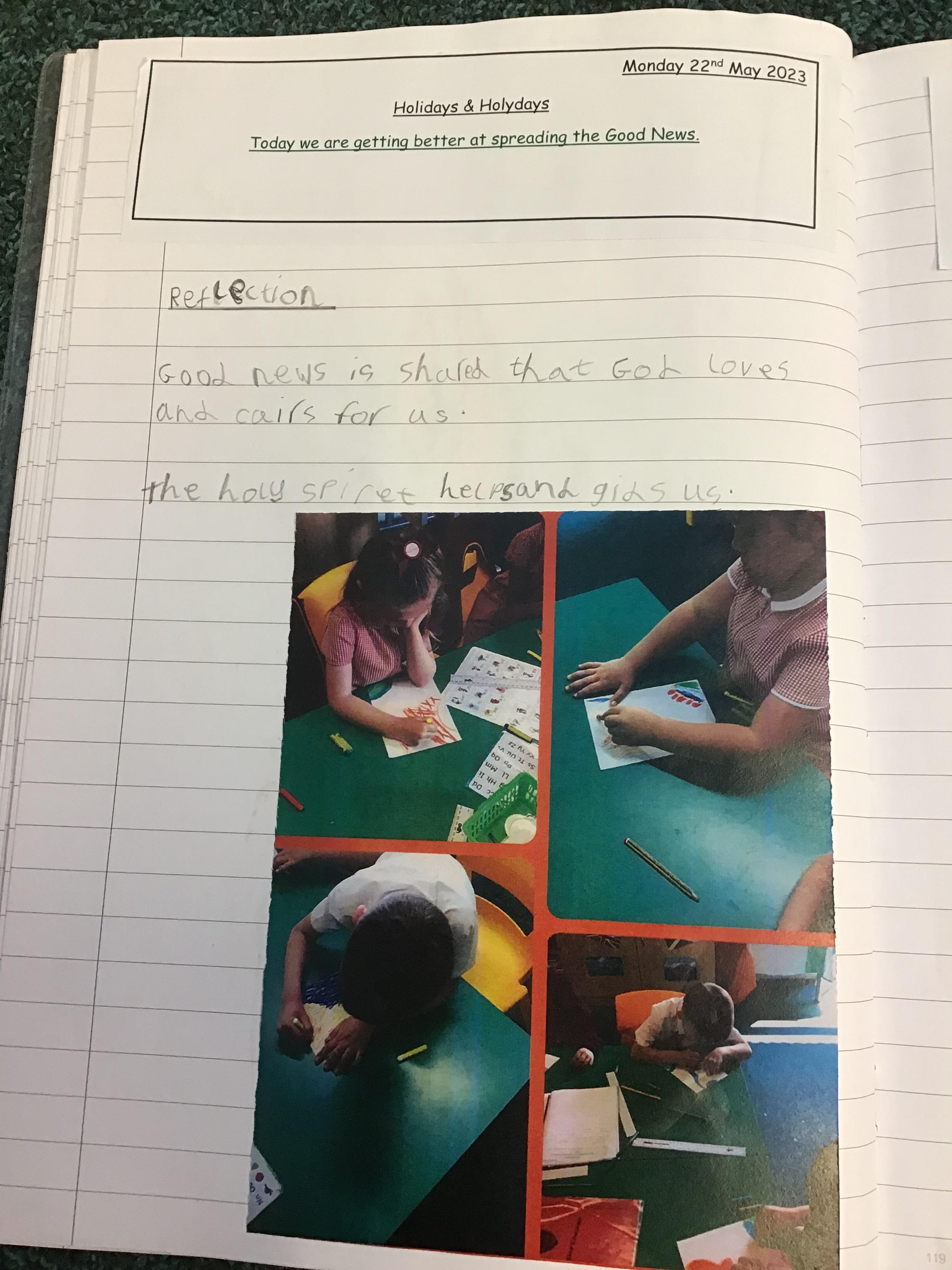 Year 1 created a beautiful reflection of their faith and discussed their learning about Pentecost.