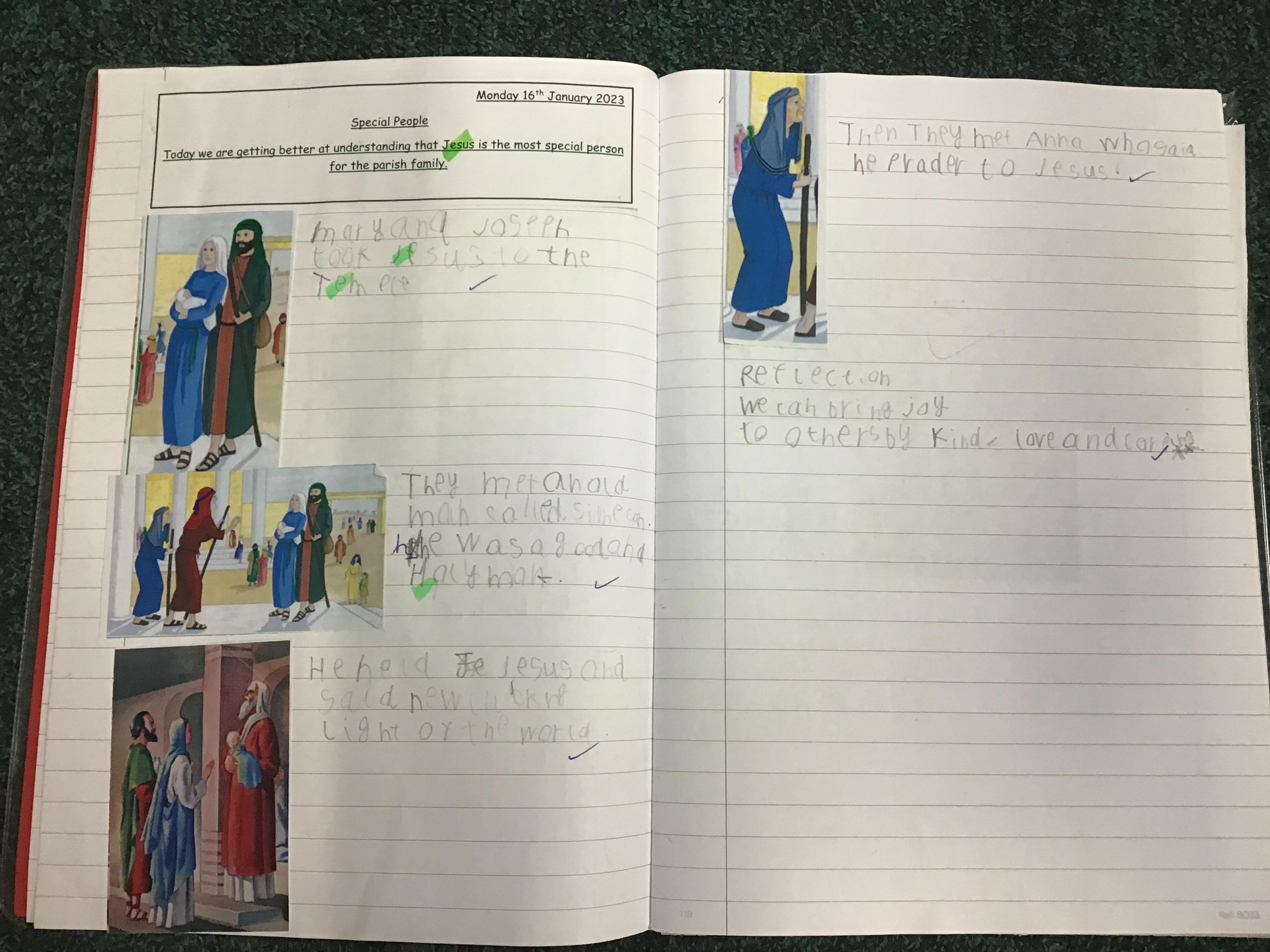 The children in Year 1 have explored the special people in their lives and within the parish family. We have discussed the special people who help put at Mass on Sundays, such as the priest, greeters and cleaners. We have shared our thoughts and feelings on what we think makes a person special.