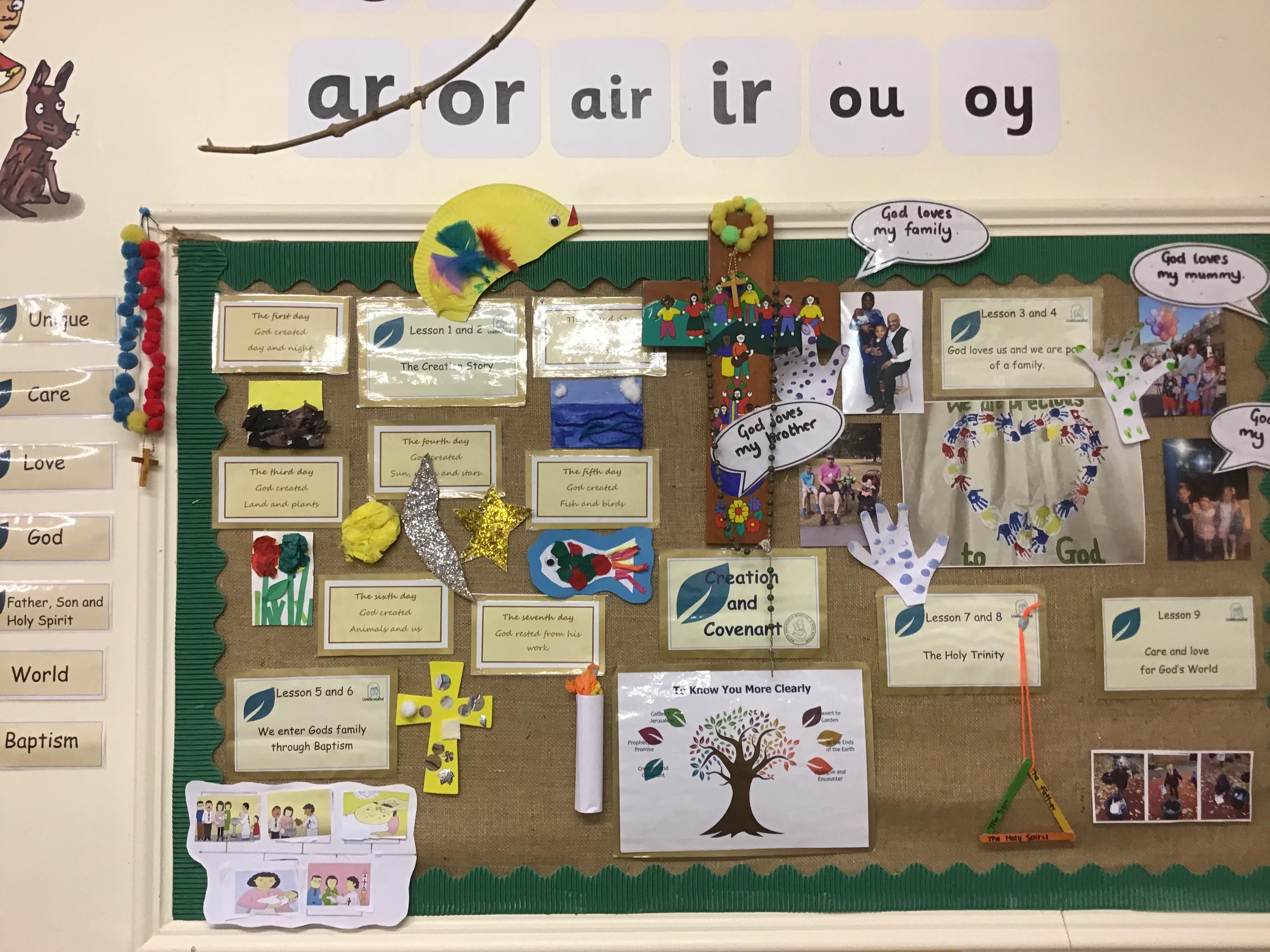 Children have been learning all about the way in which God made our beautiful world and everything in it and that He made us. They have also learnt the words and actions for the sign of the cross and learnt to say, 'In the name of the Father, and the Son and the Holy Spirit.