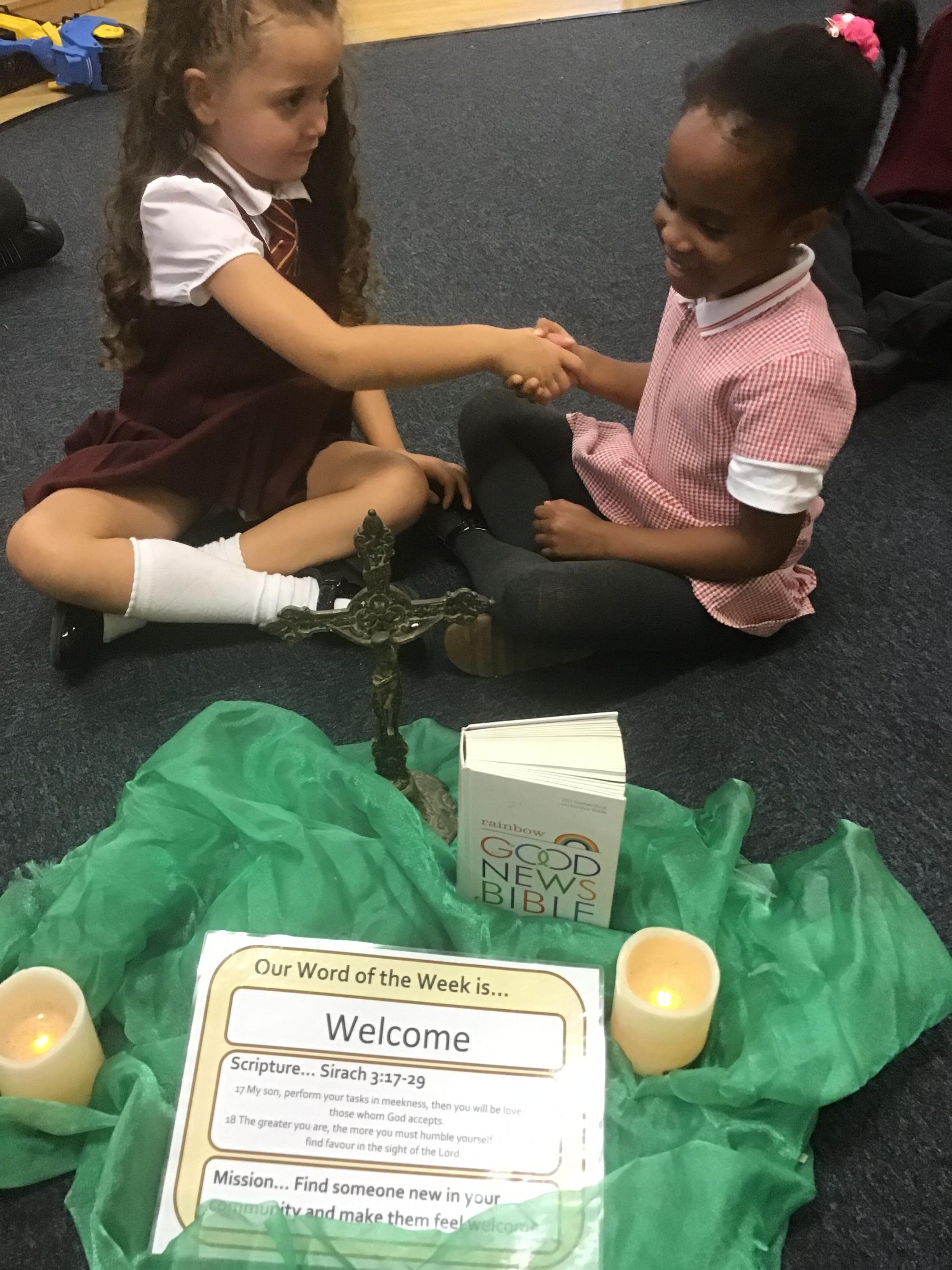 The children shared and showed the different ways they have welcomed their friends throughout the week.