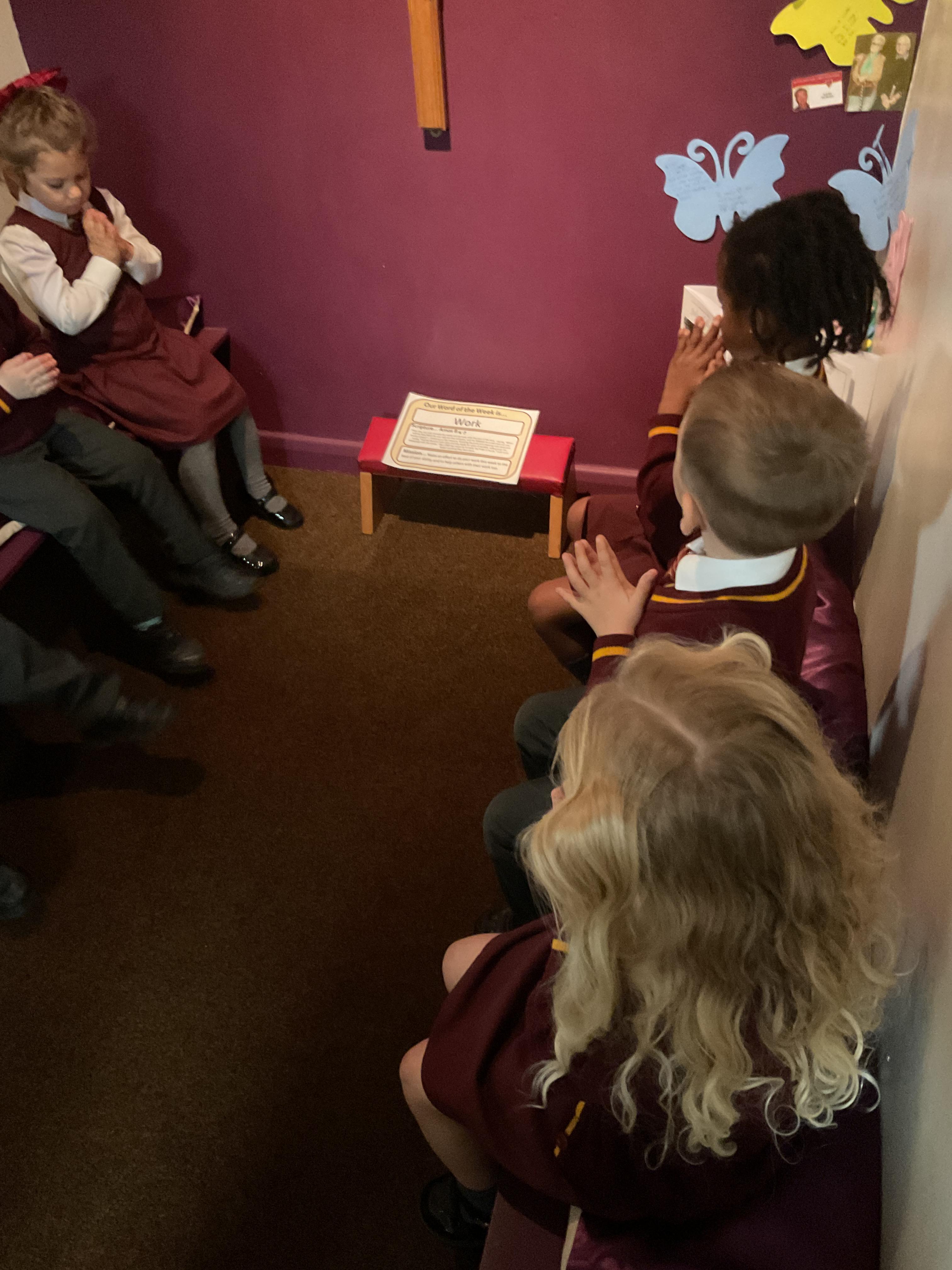 Our EYFS children visited the chapel this week to take some quiet time to reflect on their learning about virtues. The peaceful setting gave them a special space to think about how they can show kindness, respect and love in their everyday actions. It was a lovely opportunity for the children to connect their classroom learning to their faith and to begin to understand how living out the virtues helps them grow as caring and thoughtful individuals.