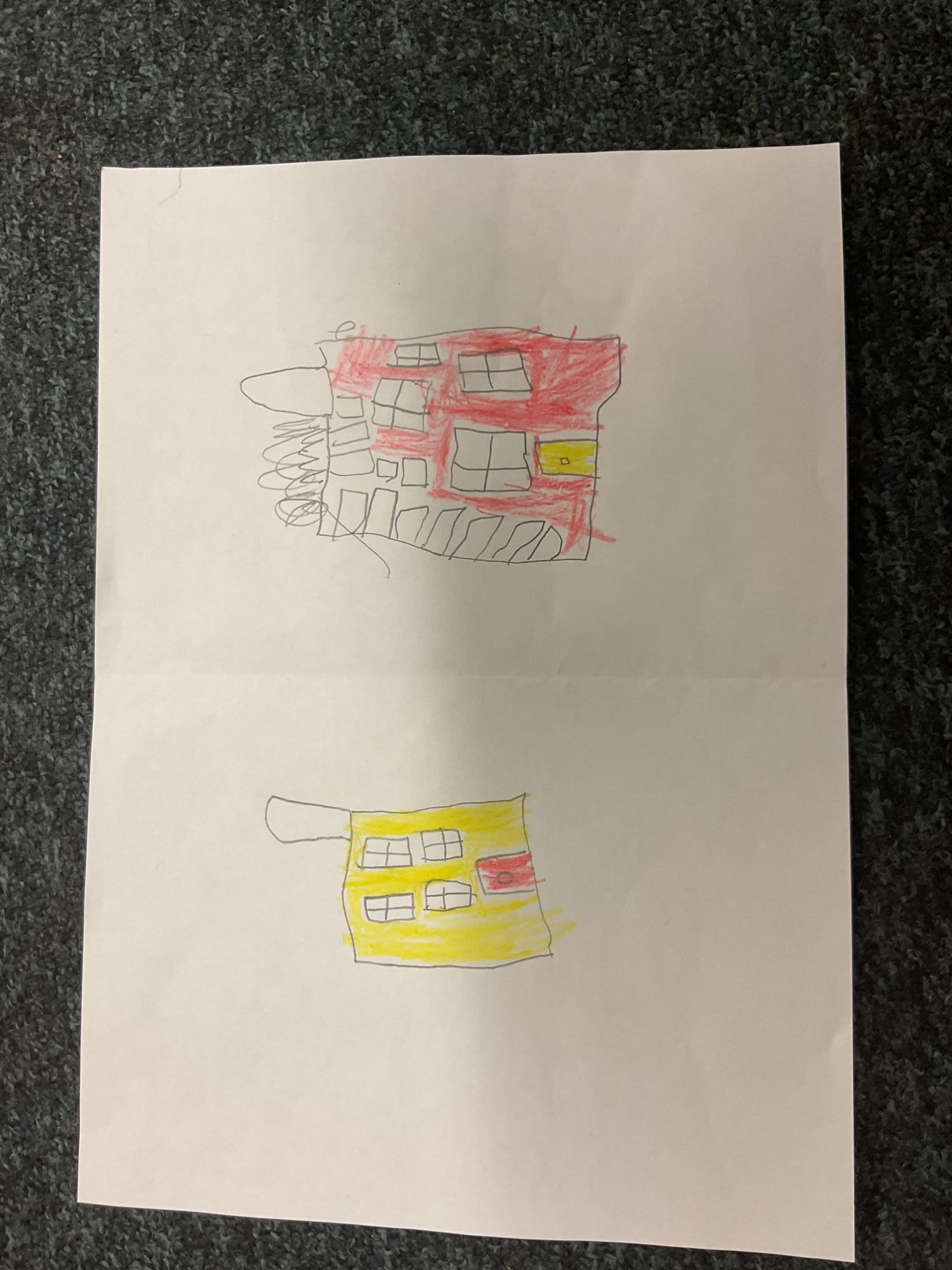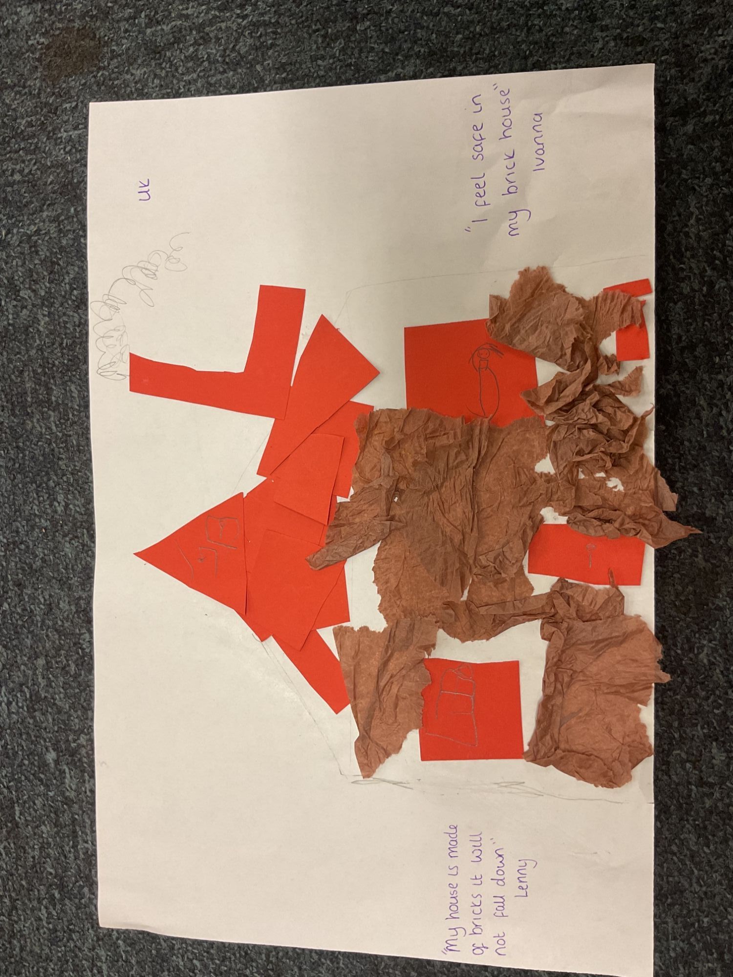Children looked at a globe, flags, non-fiction books to learn how children’s lives in other countries may be similar or different in terms of how they travel to school, what they eat, where they live. Children designed a house from another country and used different materials to replicate it.