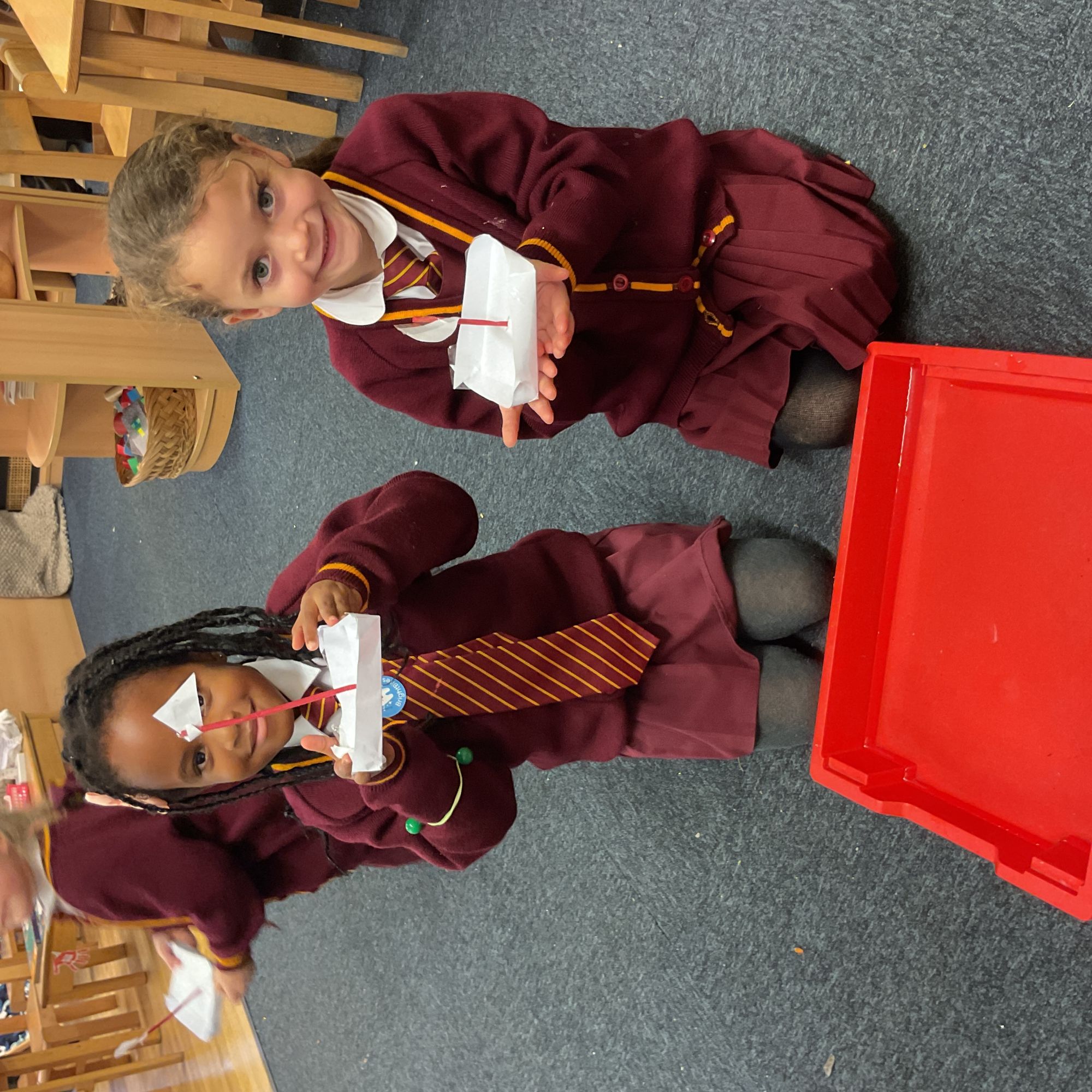 Children in FS2 explored and learnt about various types of permanent and temporary joins. They were encouraged to tinker using a combination of materials and joining techniques in the junk modelling area. Working collaboratively, they used lots of joining materials and skills to make a rocket!