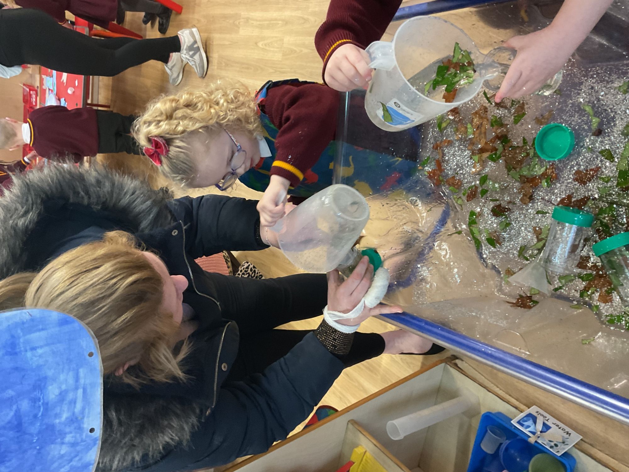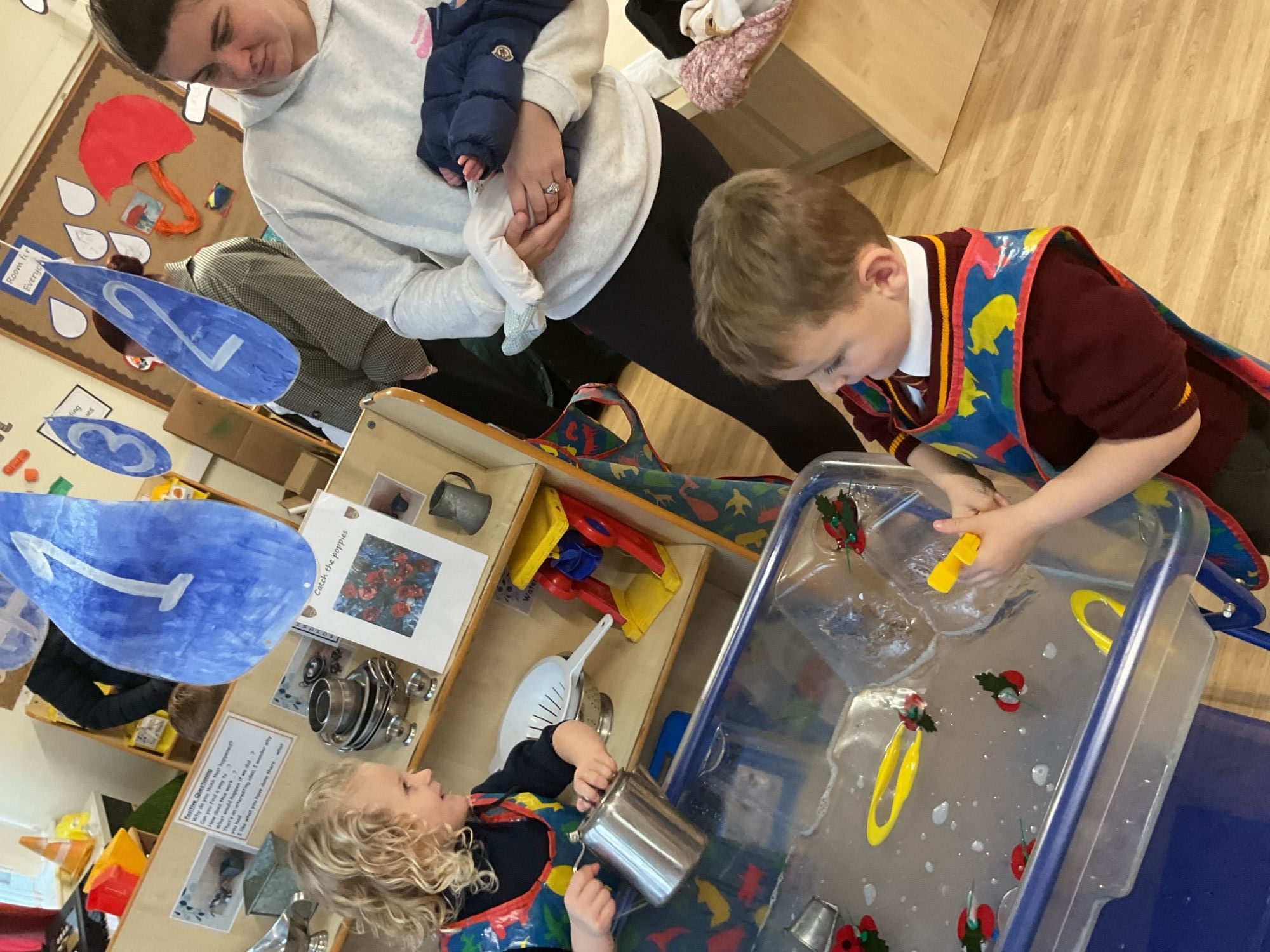 Parents were invited to another stay and play session with their child. The focus was 'Messy Play.' Parents were informed that sensory play helps develop children's brains by building strong connections through touch, movement, and exploration, while also strengthening the fine motor skills and control needed for early mark-making and pre-writing. Both parents, children and staff had so much fun!