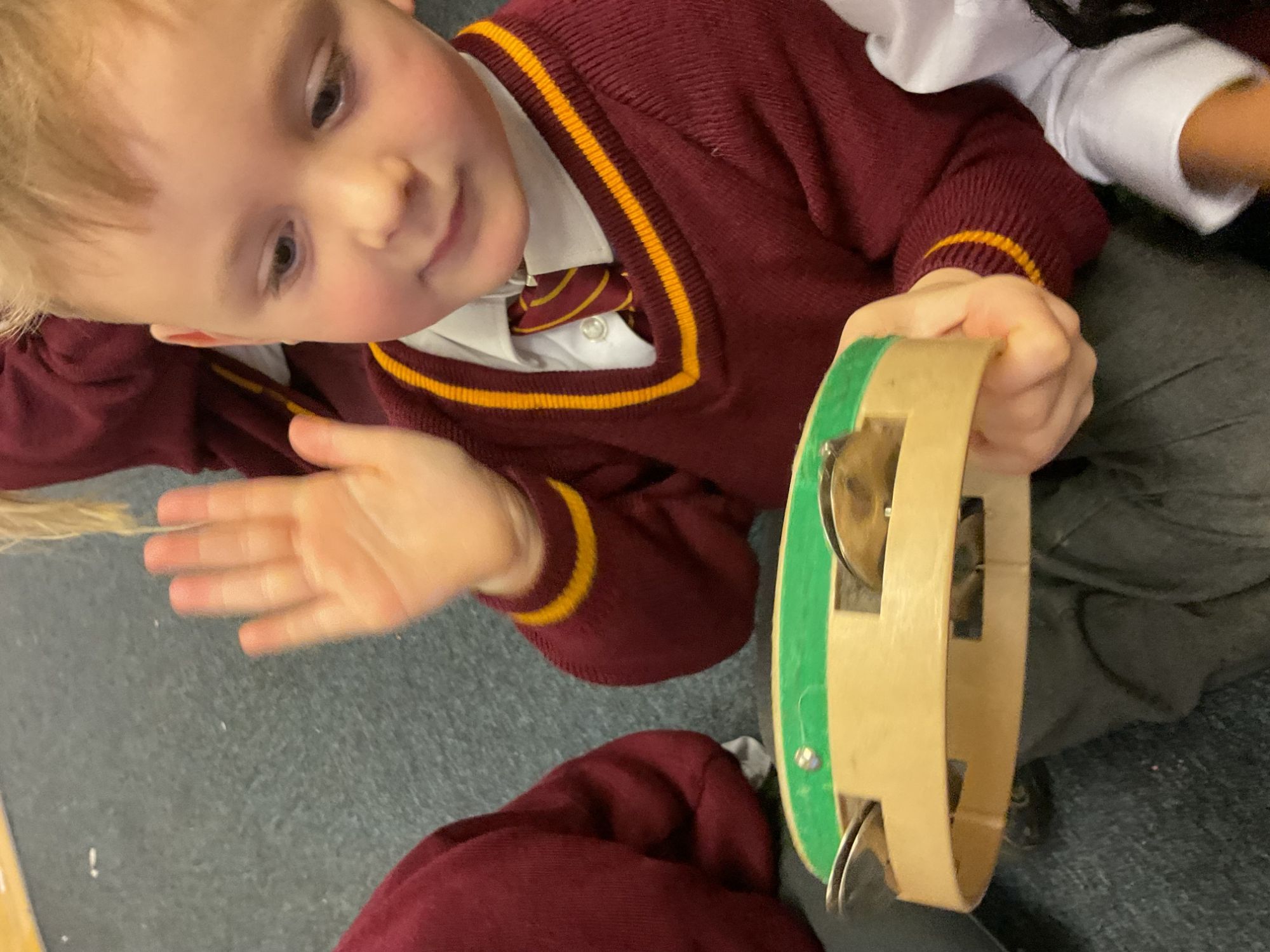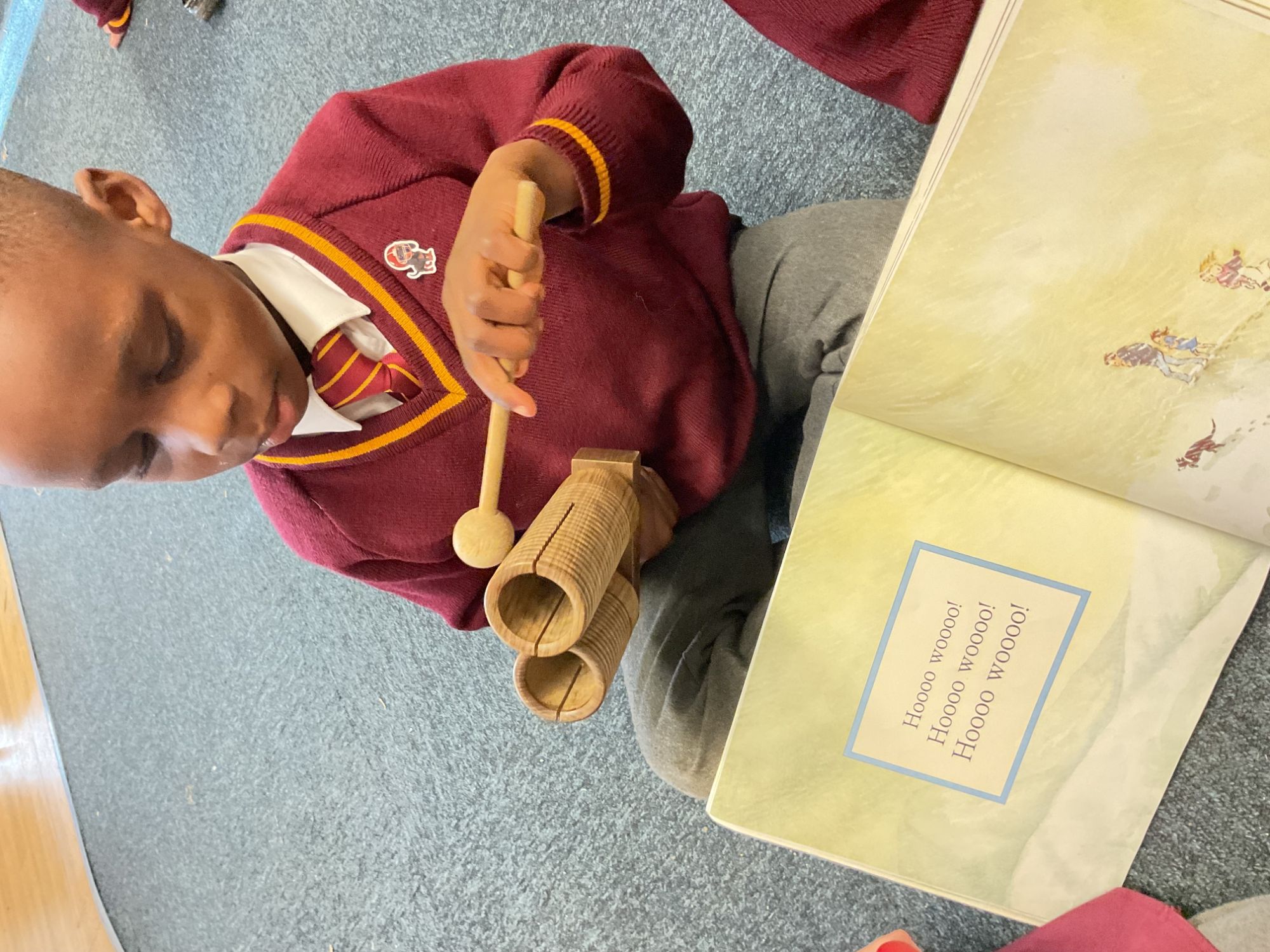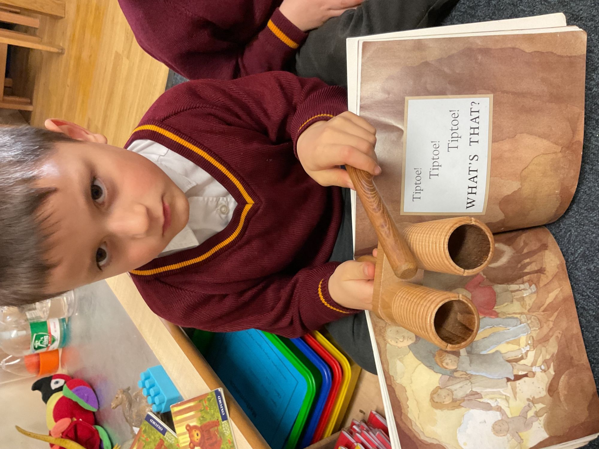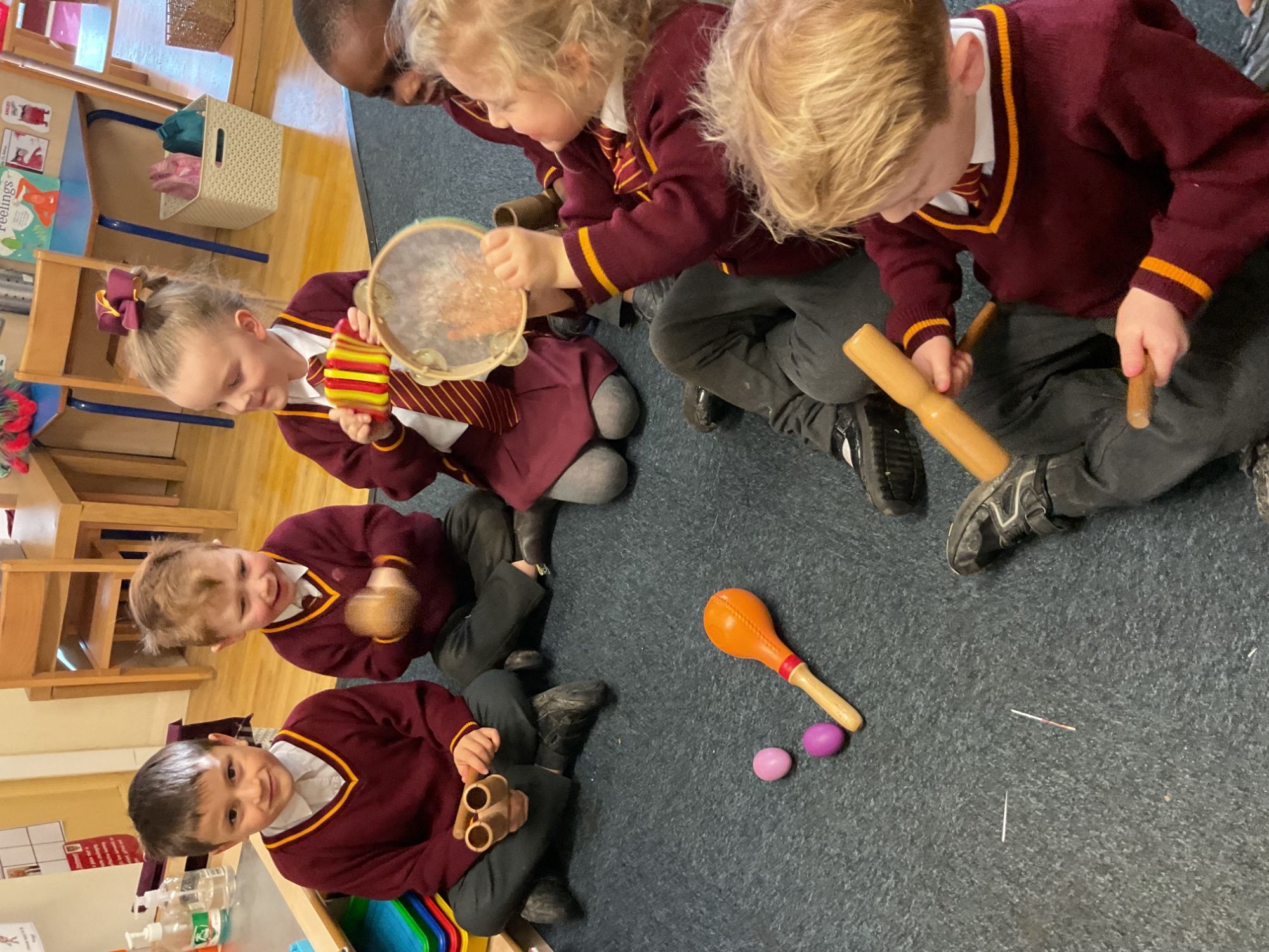 The children have really enjoyed exploring sound. They used their voice to make sounds in a rhythmic pattern, stamped out syllables and also worked together in teams using body parts to make a variety of sounds. They really enjoyed exploring a range of musical instruments too!