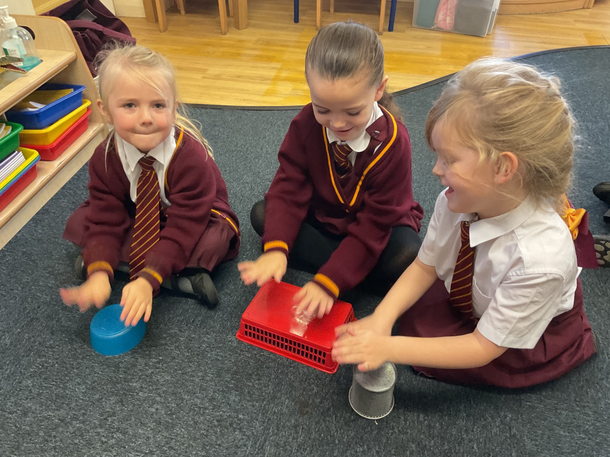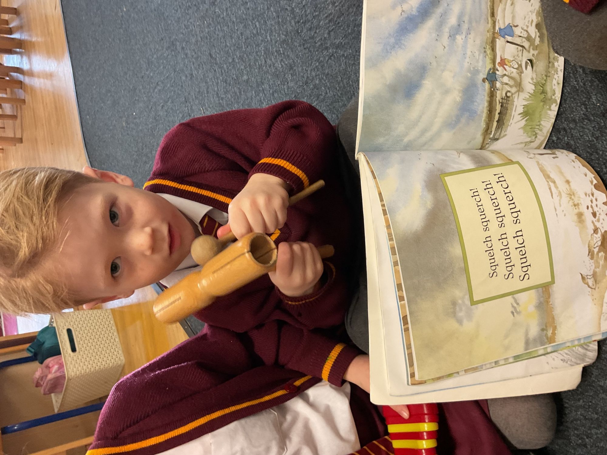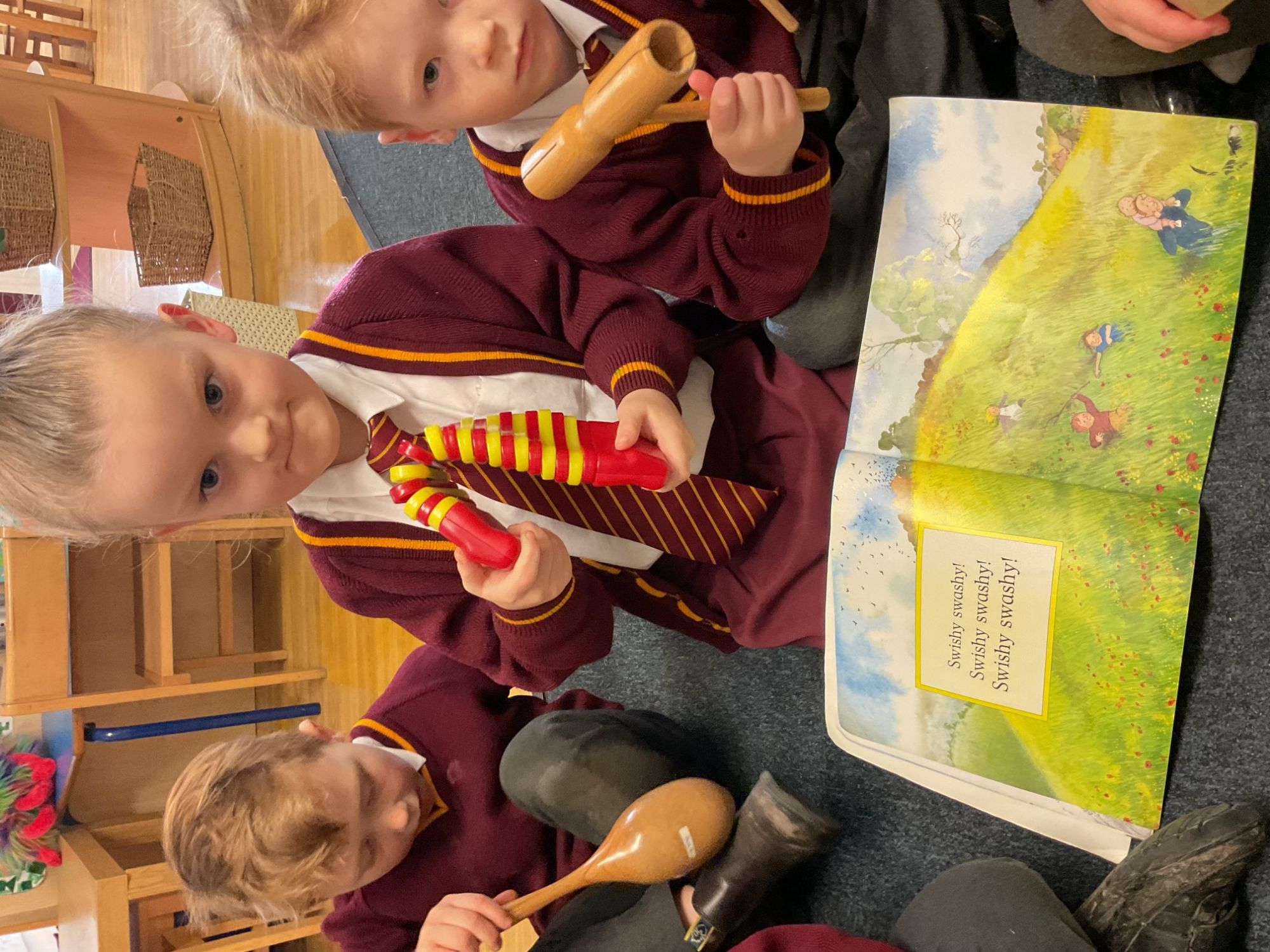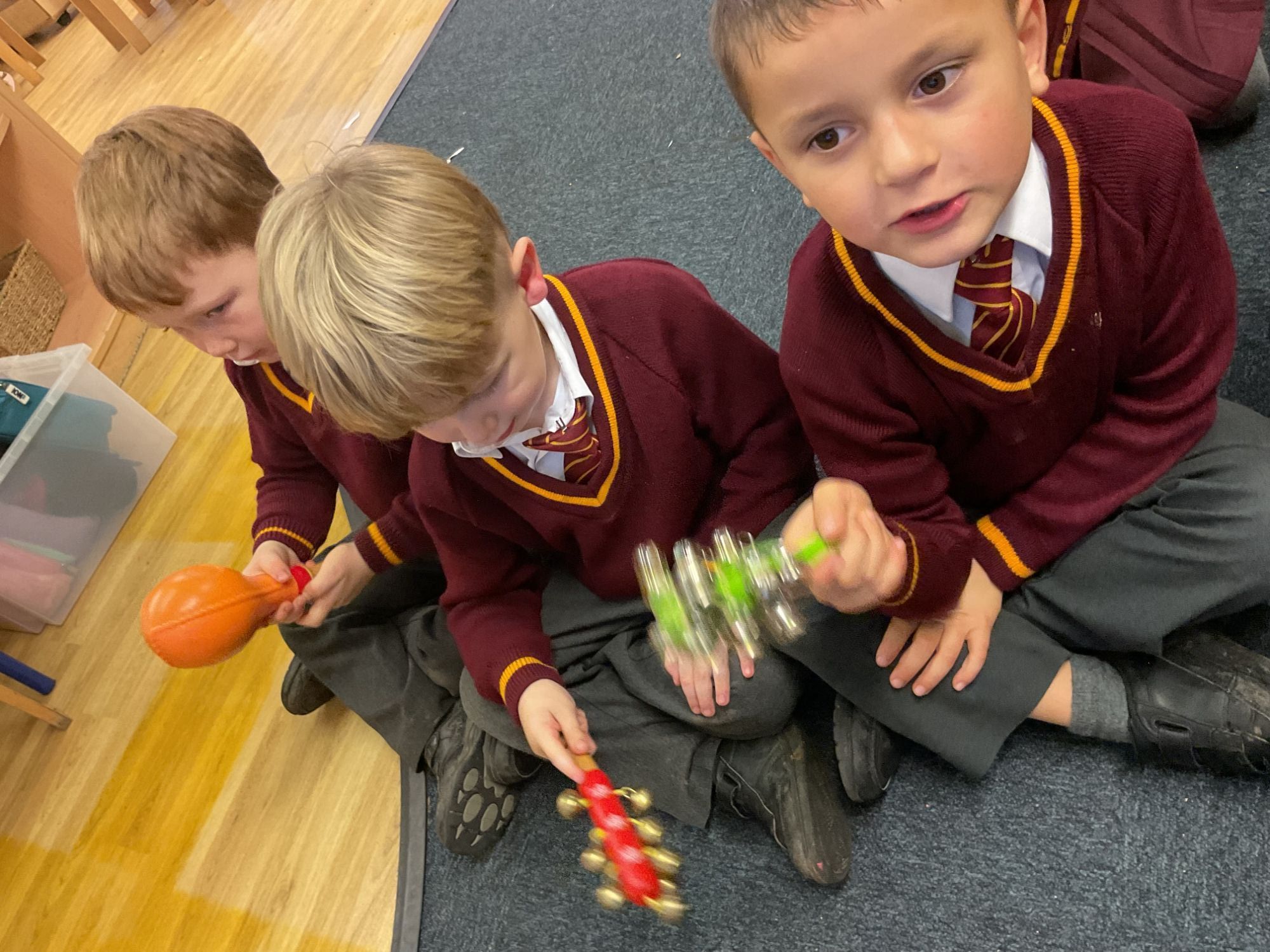 The children have really enjoyed exploring sound. They used their voice to make sounds in a rhythmic pattern, stamped out syllables and also worked together in teams using body parts to make a variety of sounds. They really enjoyed exploring a range of musical instruments too!