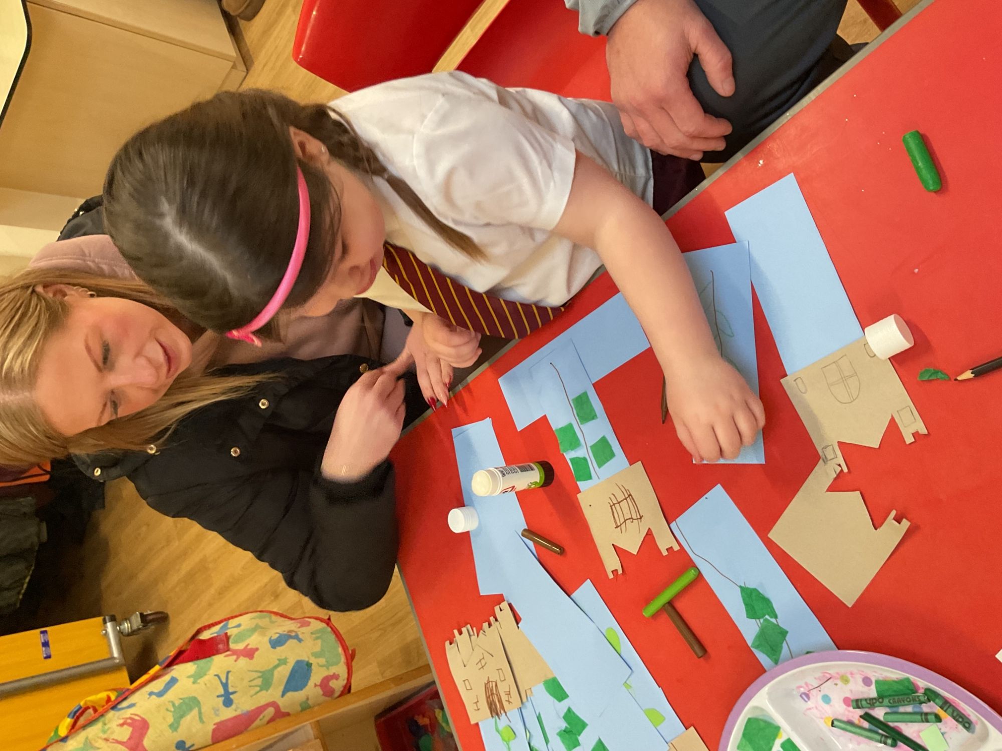 Children in Reception used the display to talk about where they live and what their environment looks like. Some children named the road and the City they live, the number they live at and they knew the name of our school.