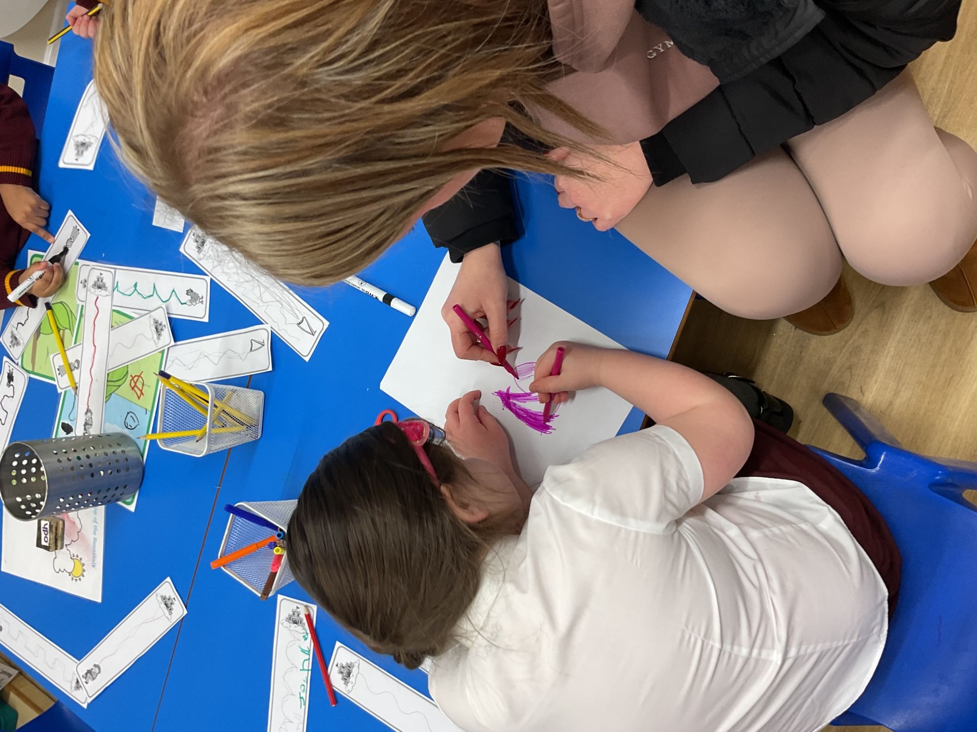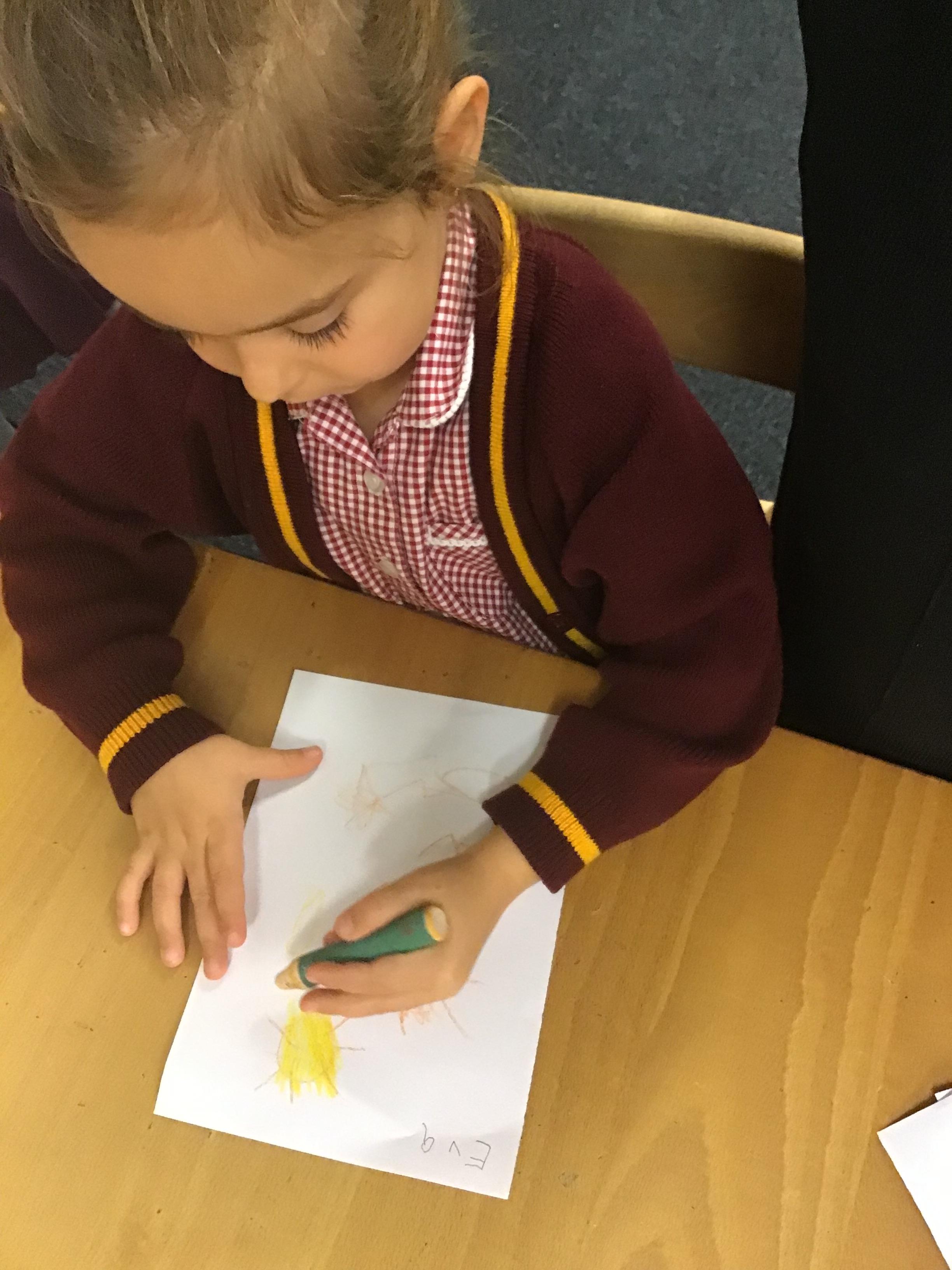 Reception children have been busy exploring mark-making using a variety of drawing materials. They enjoyed experimenting with crayons, felt tips and chalk to create their own patterns and pictures.