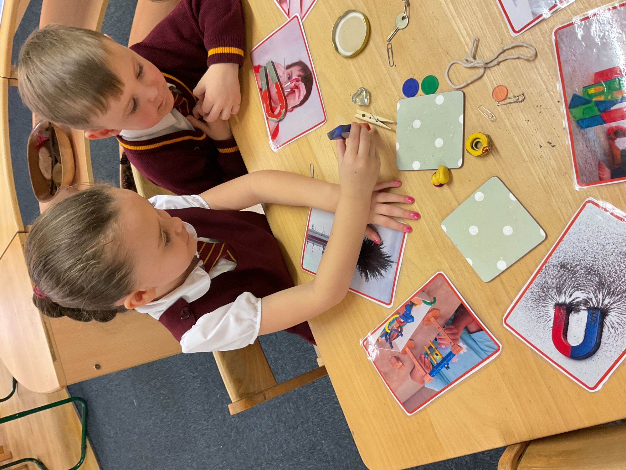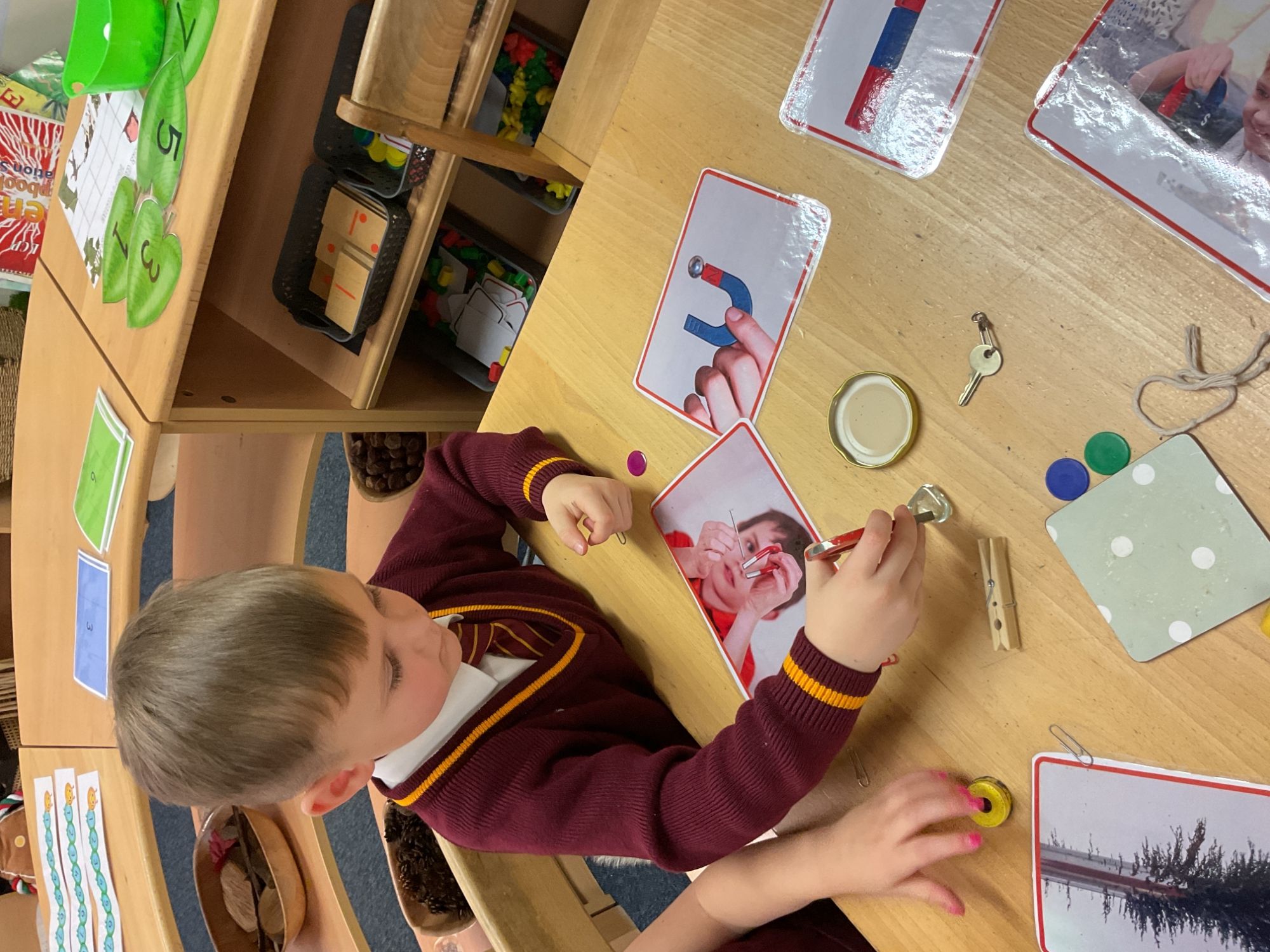 Children were in awe when introduced to the magnets. They were all thoroughly fascinated. They observed and interacted and discovered magnets attracting to some objects.
