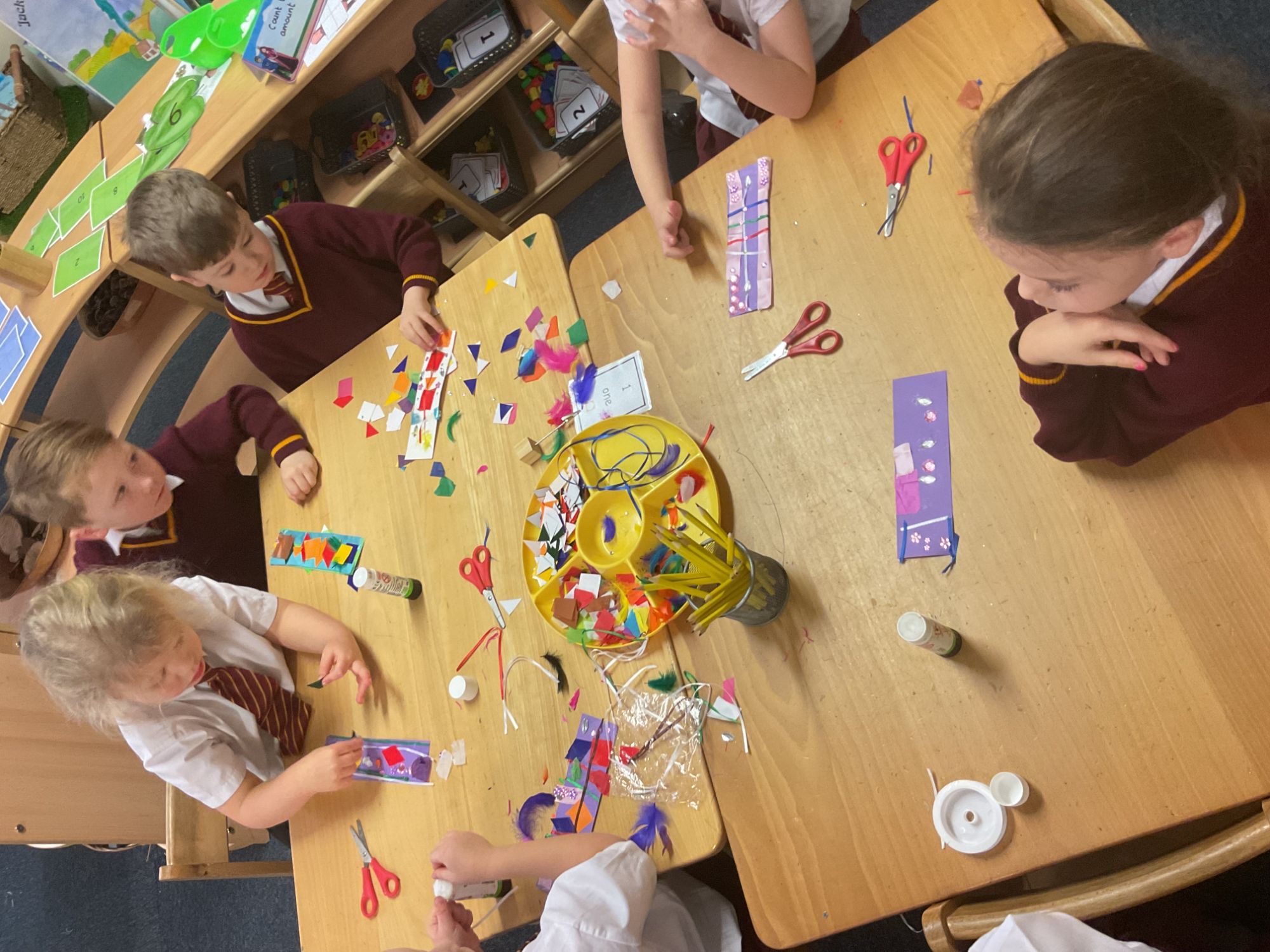 Children in FS2 explored and learnt about various types of permanent and temporary joins.  They were encouraged to tinker using a combination of materials and joining techniques in the junk modelling area. Working collaboratively, they used lots of joining materials and skills to make a rocket!